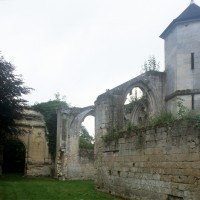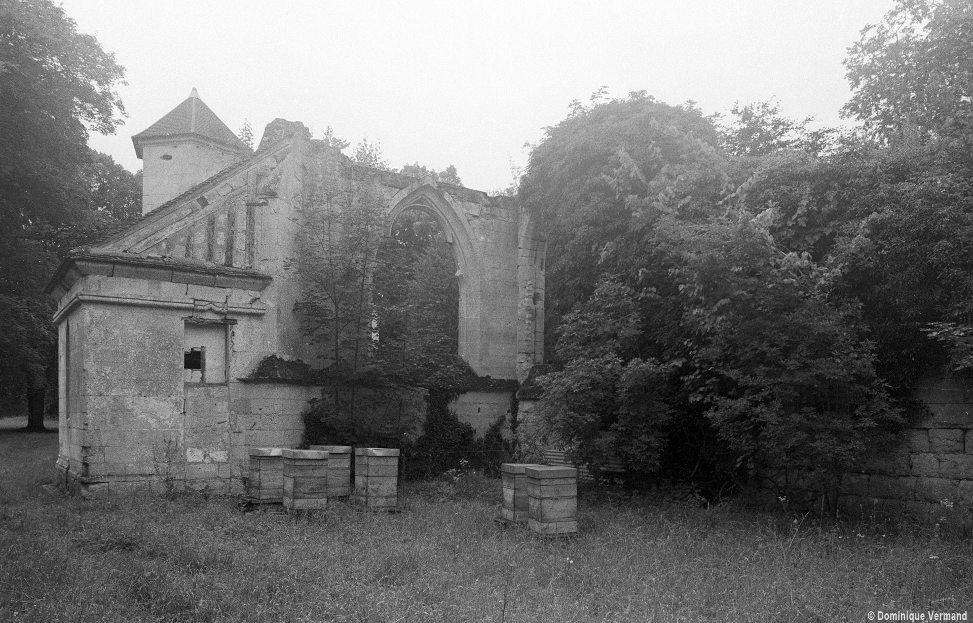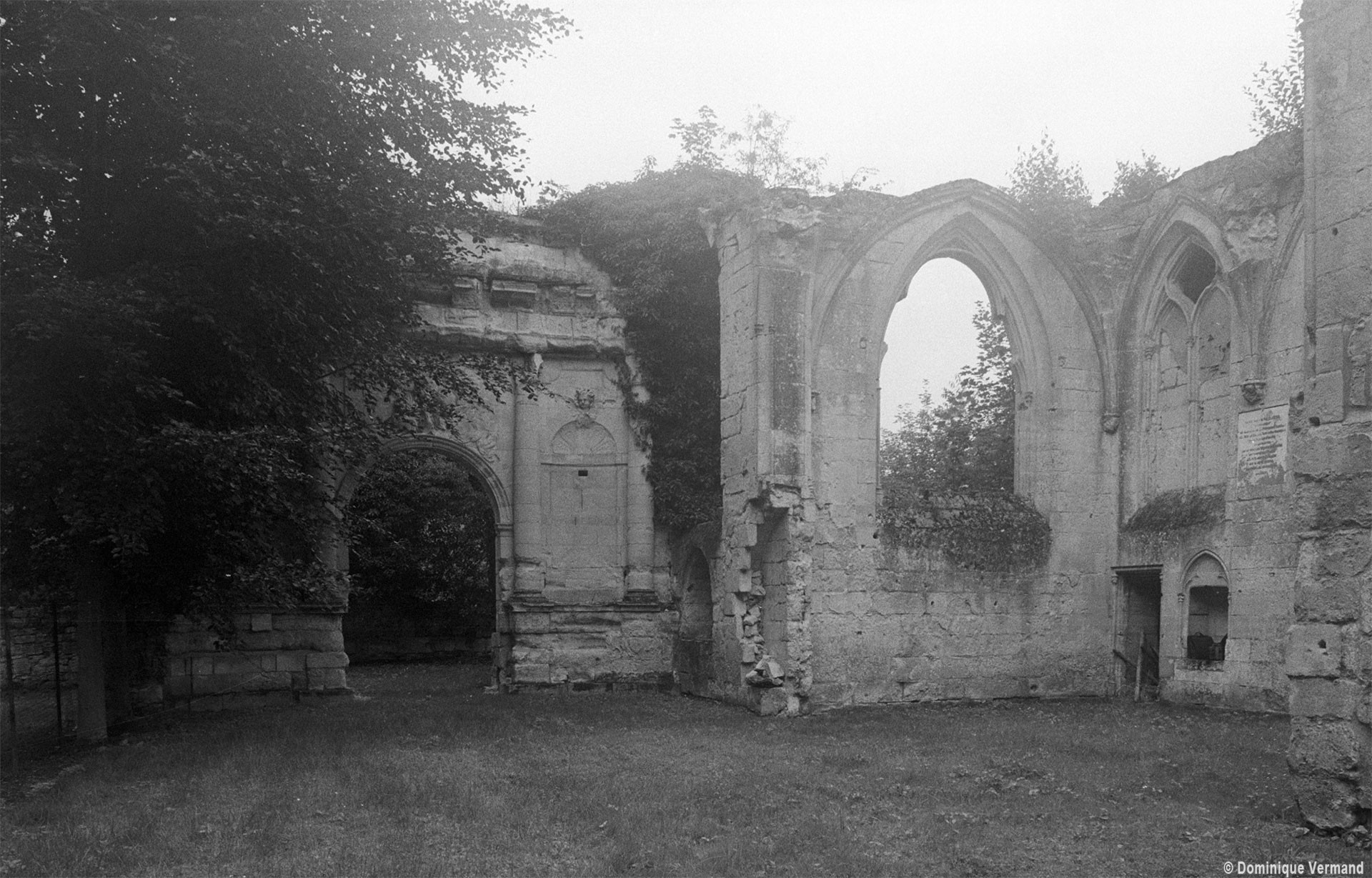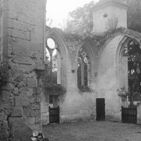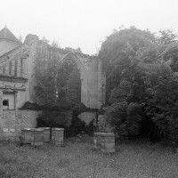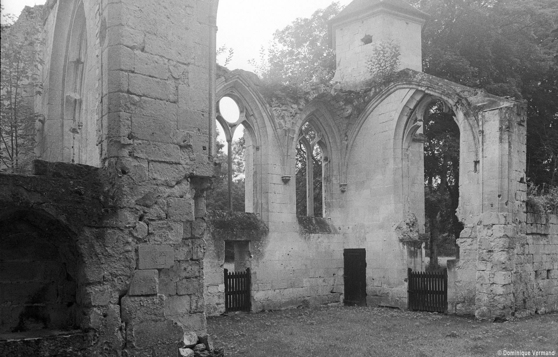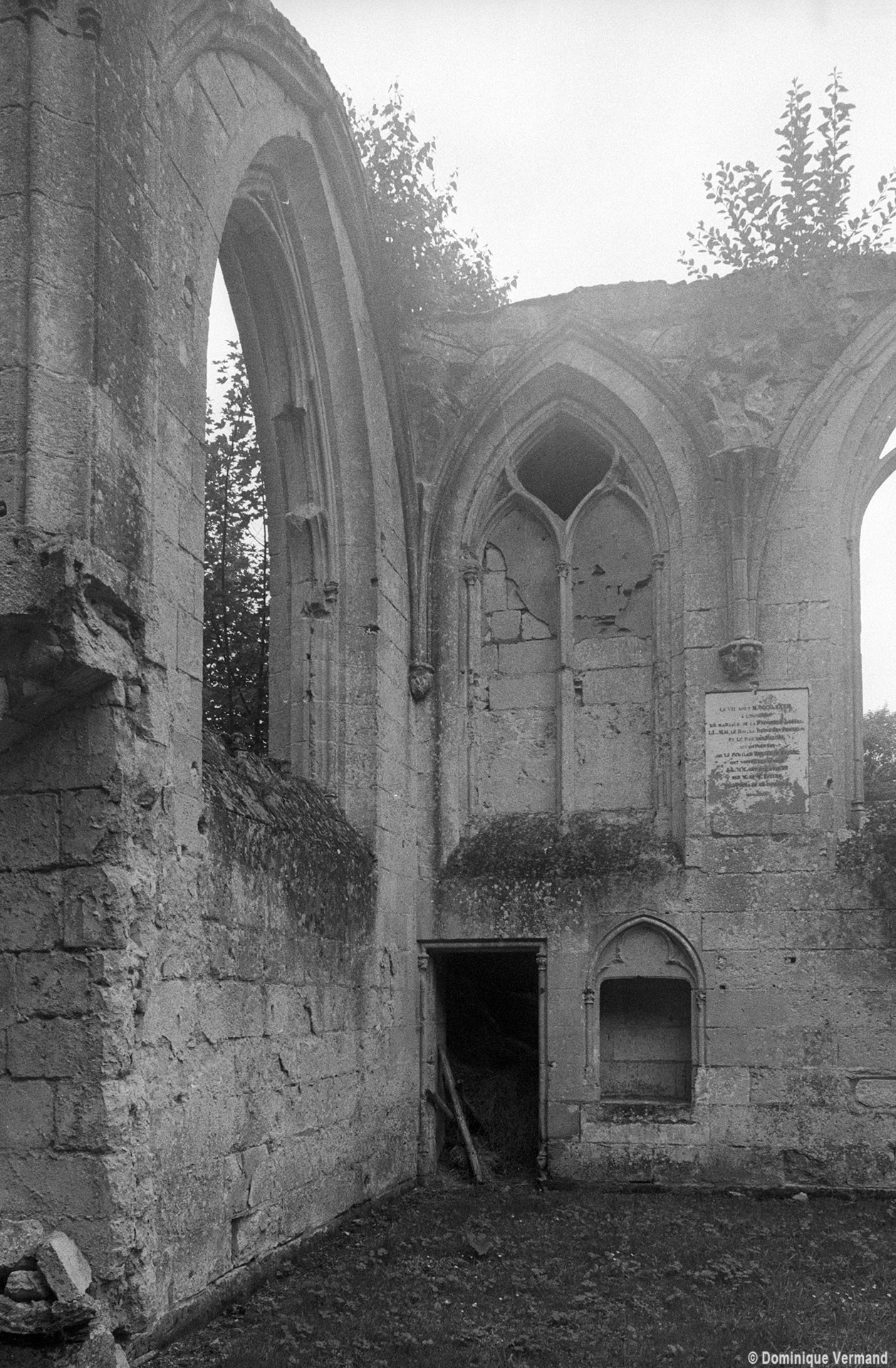 Les vestiges de l’église se dressent à proximité d’un imposant pavillon du milieu du 17ème siècle. L’ensemble appartient à l’Office National des Forêts. Le plan initial ne peut être restitué car tout le côté nord a été détruit. Avec son portail à fines colonnettes, la partie occidentale de la longue nef unique doit remonter à l’époque de la fondation.