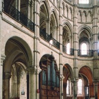 L'élévation du mur gouttereau nord de la nef vu vers le nord-ouest depuis le triforium du bras sud du transept