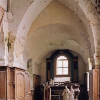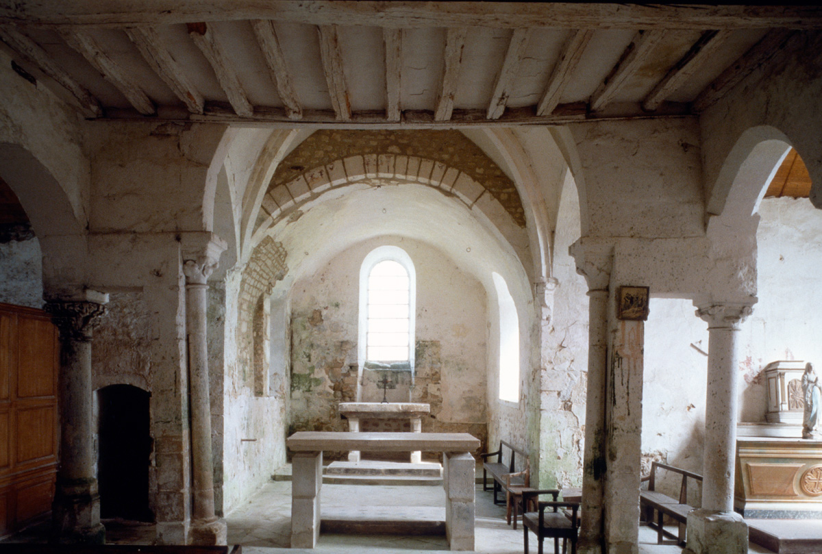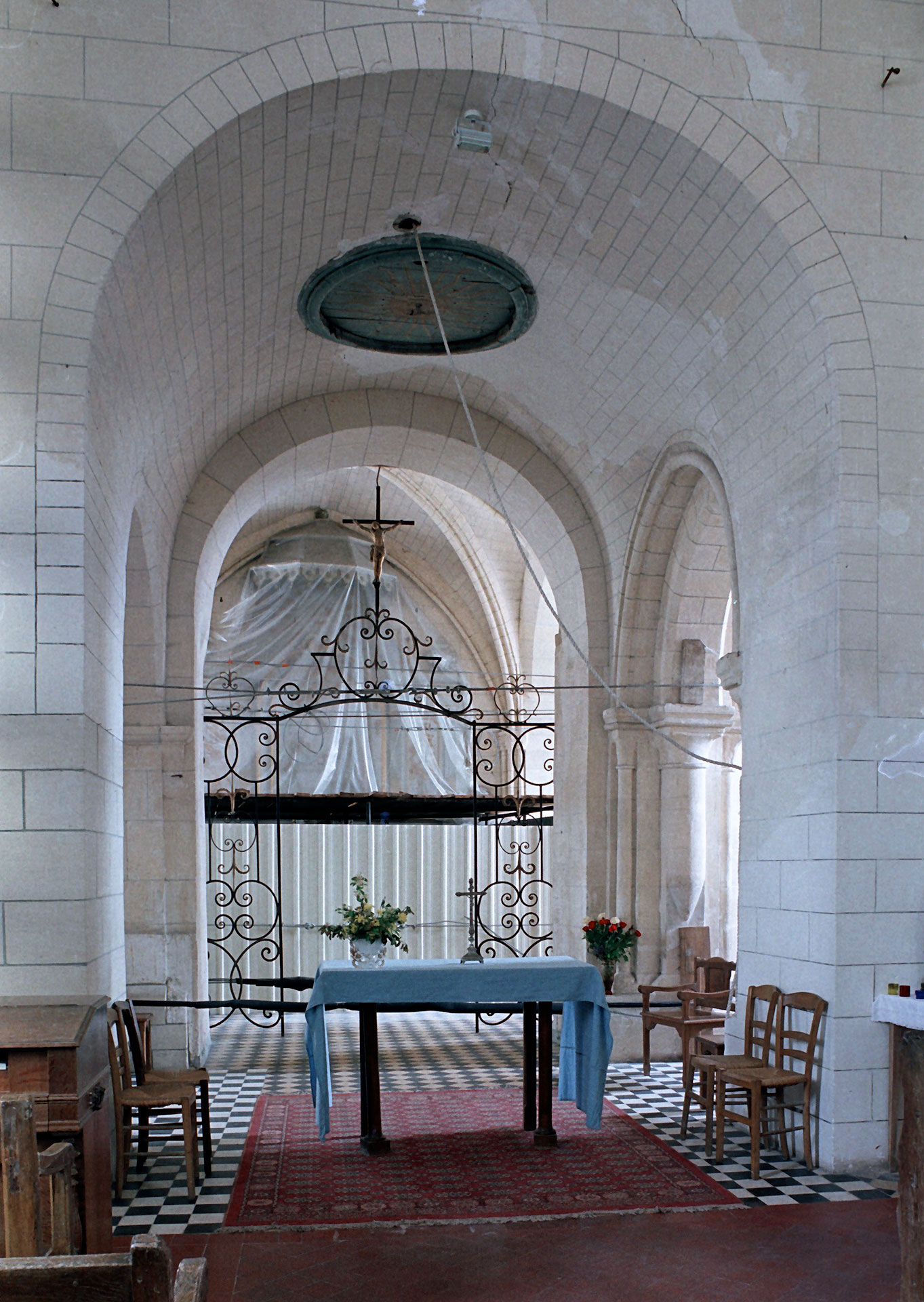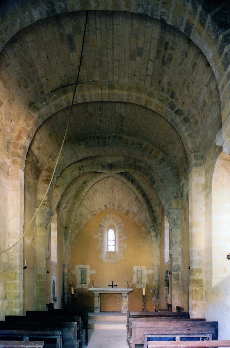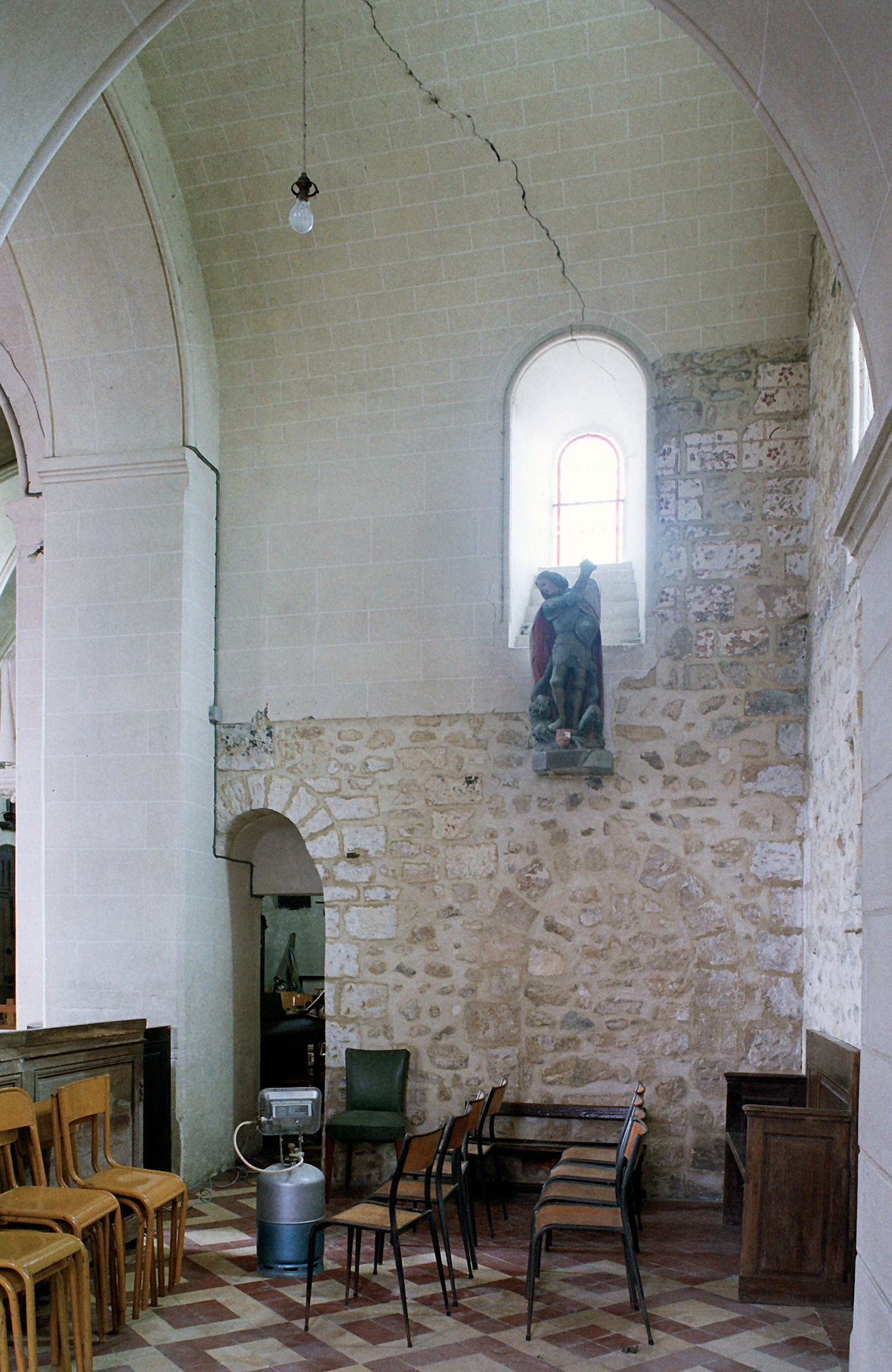 La voûte en berceau de la base du clocher vue vers le sud-ouest (1979)