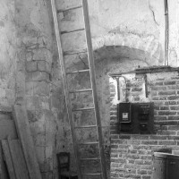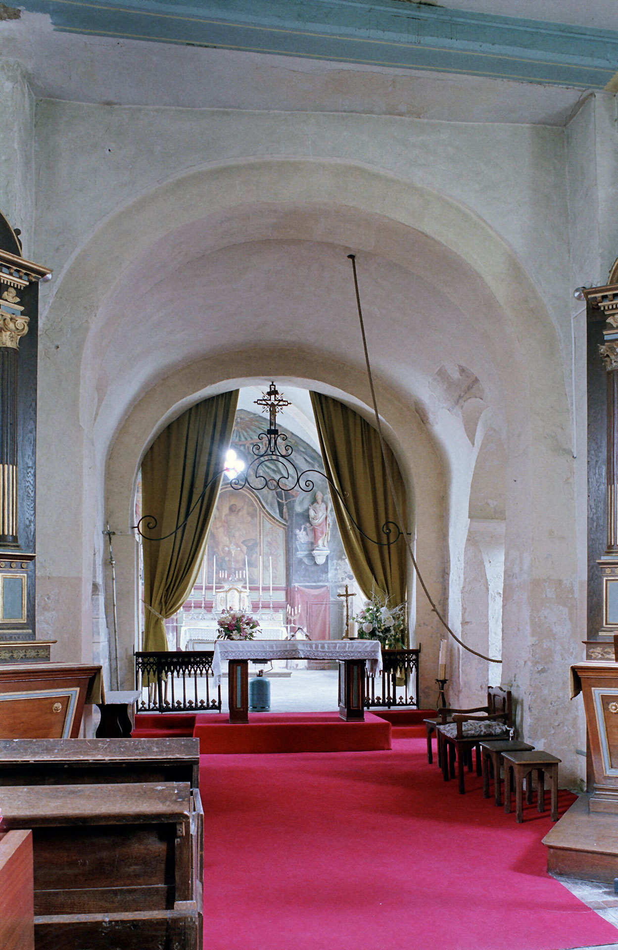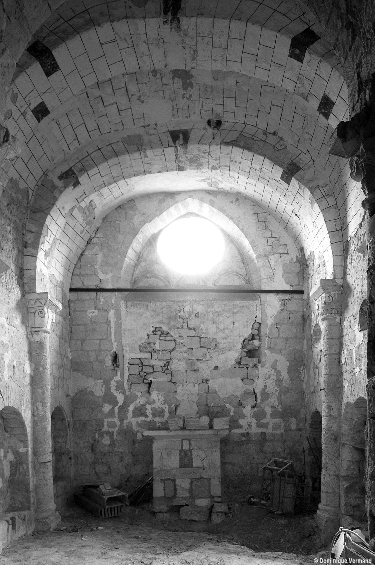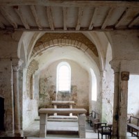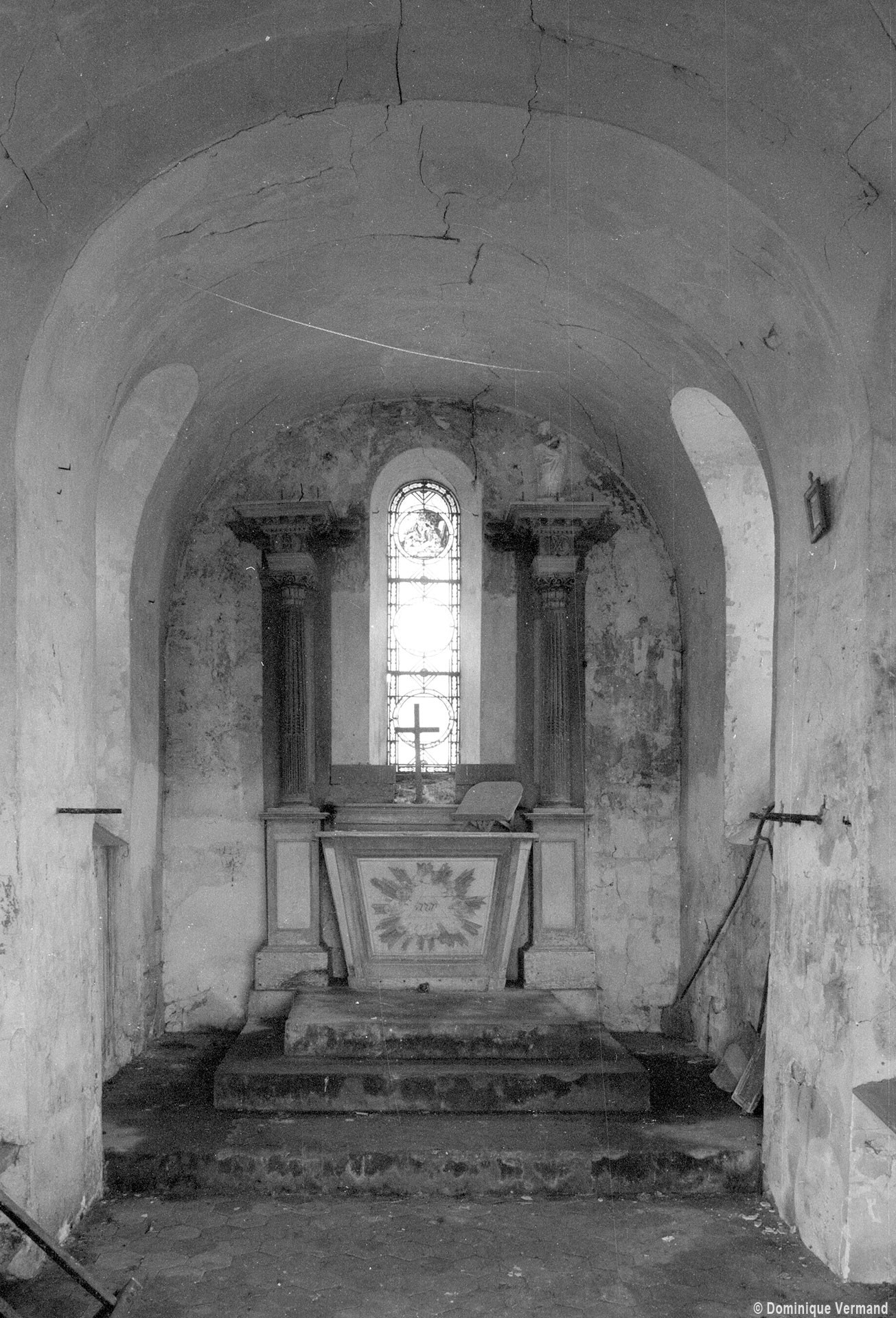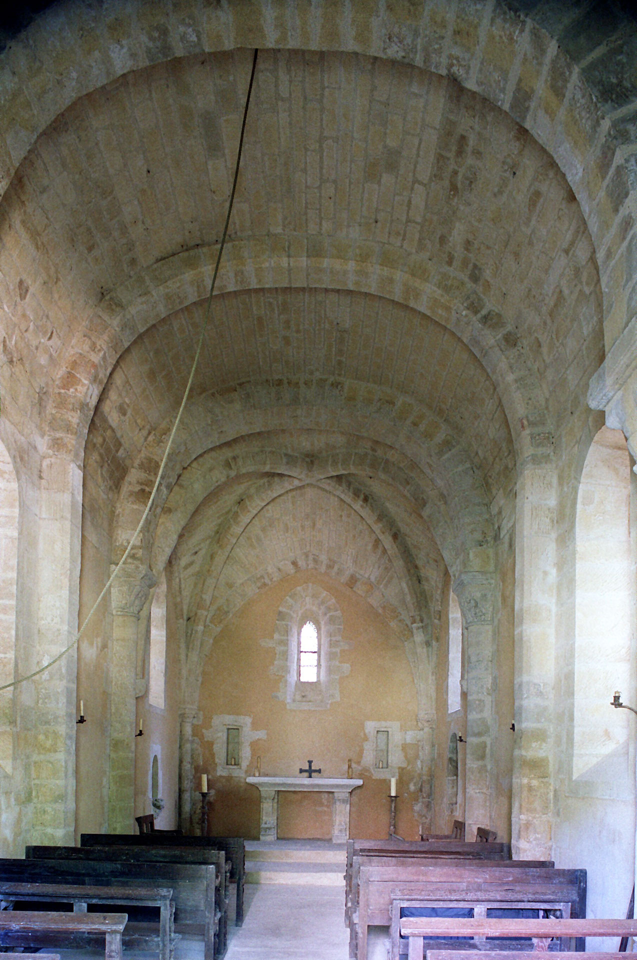 La voûte en berceau de la base du clocher vue vers le sud-ouest (1979)