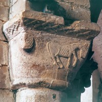 Chapiteau de la fin du 11ème siècle de l'ancienne nef romane au mur est du narthex