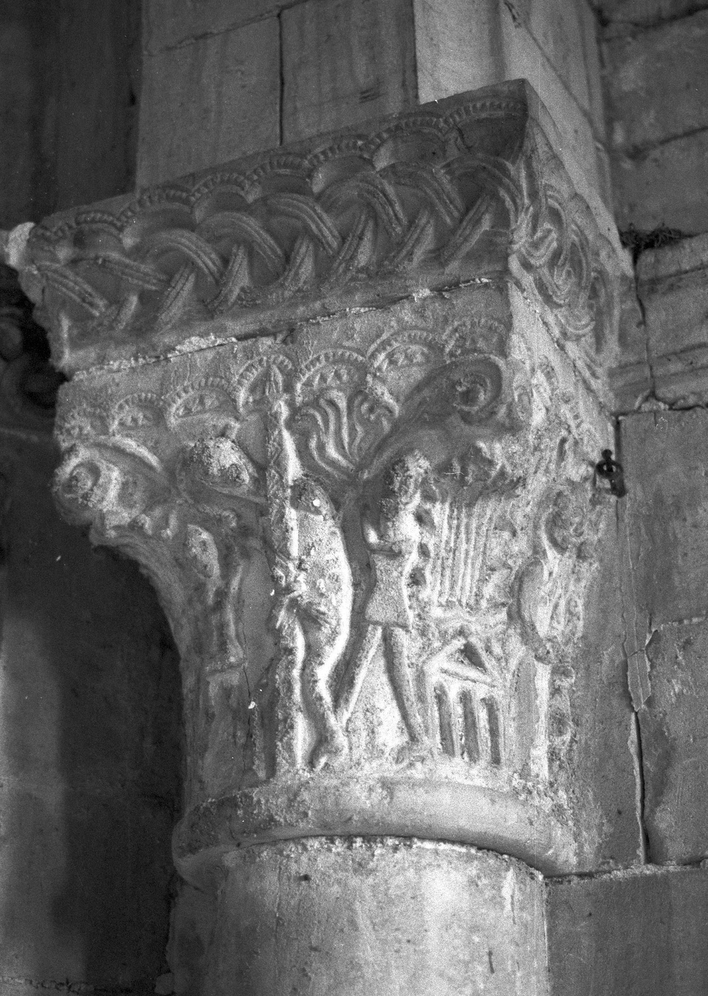 Chapiteau historié à l'extrémité nord-est du choeur roman (1974)
