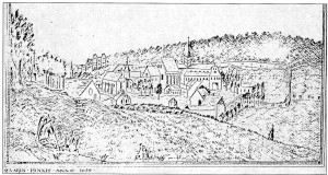 L’abbaye Notre-Dame de Beaupré avait été fondée en 1135 dans la vallée du Thérinet par Manassès de Milly. Affiliée à l’ordre cistercien, elle était fille de l’abbaye d’Ourscamp, également située dans l’Oise. Son église avait été dédiée par l’évêque Philippe de Dreux en 1170. Très vulnérable face aux nombreux conflits qui ravagèrent la région durant plusieurs siècles, l’abbaye sera victime, comme tant d’autres, de la Révolution. Si Graves signale encore, au début des années 1830, l’existence de quelques vestiges des bâtiments claustraux – l’église avait déjà disparue – il ne subsiste plus aujourd’hui que le portail d’entrée et deux corps de bâtiments attenants, du 18ème siècle. Quelques gros chapiteaux utilisés comme pied de croix dans plusieurs communes proches – certains sont bien conservés et de belle facture – peuvent tout aussi bien provenir de Beaupré que de l’autre abbaye cistercienne voisine, et également détruite, de Lannoy (2007).