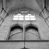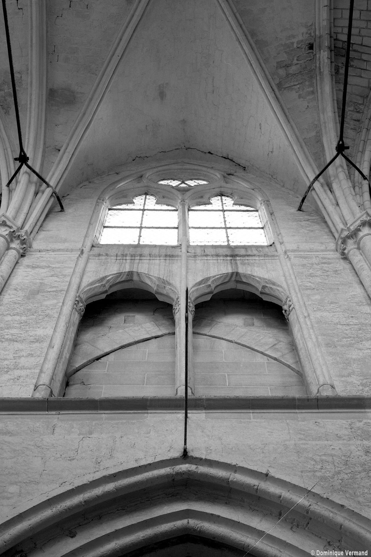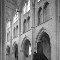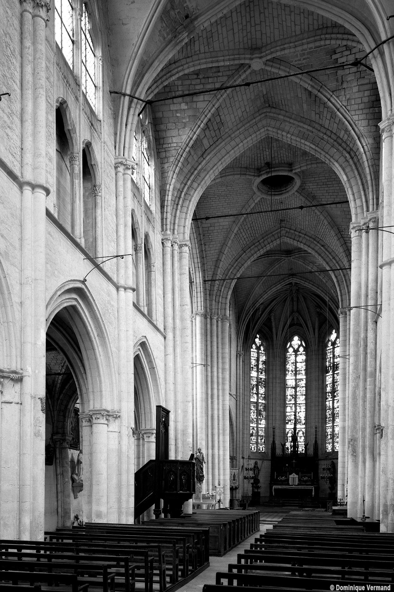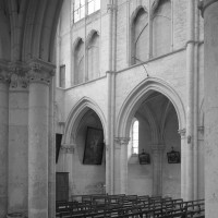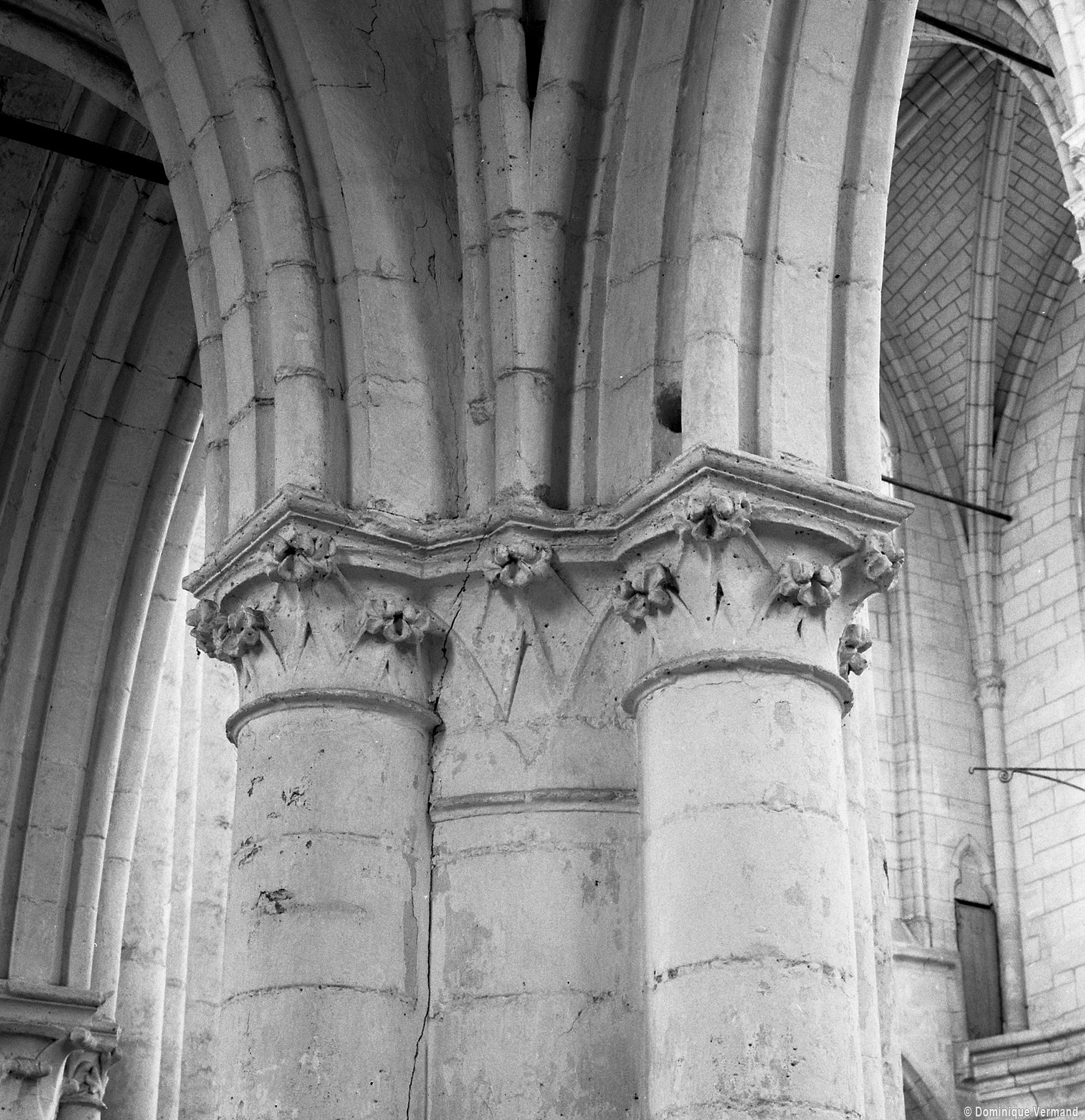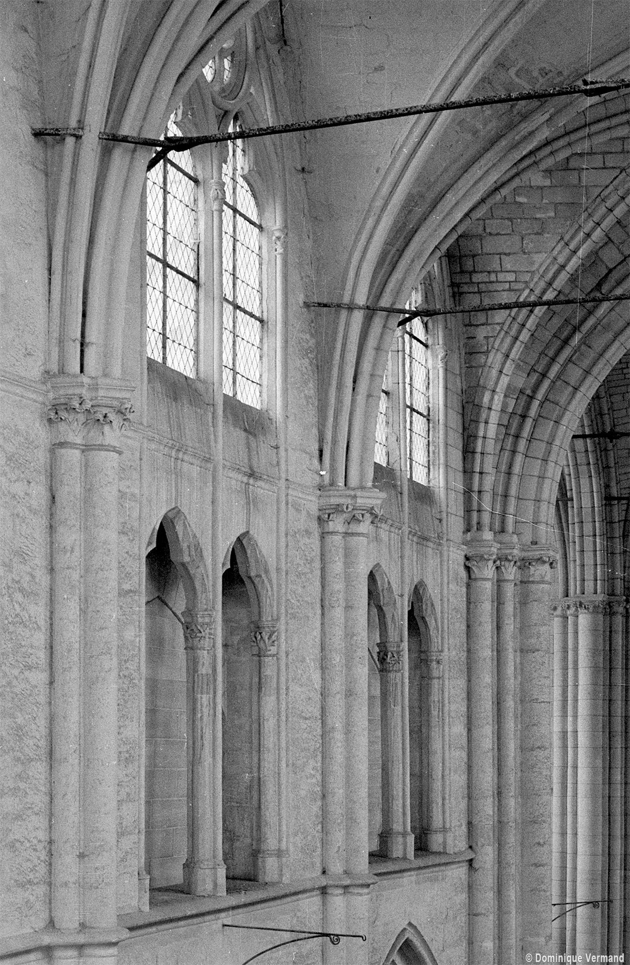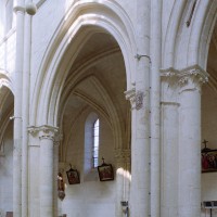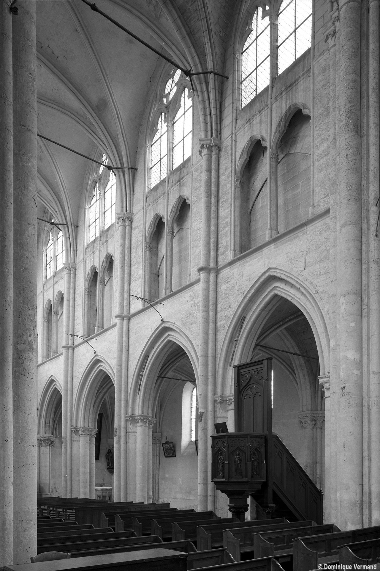 Bâtie en plusieurs campagnes au cours du 13ème siècle, c’est une église dont la nef compte parmi les réalisations majeures de cette époque dans la région. Longue de quatre travées flanquées de bas-côtés, celle-ci se caractérise par le traitement particulier de son élévation à trois niveaux. Au-dessus des grandes arcades, reçues par des piles circulaires cantonnées de demi-colonnes ou, vers le vaisseau central, de colonnettes, le niveau des fausses tribunes – il ne s’agit en effet ni d’une véritable tribune, qui serait voûtée, ni d’un triforium, qui est un étroit passage fermé vers l’extérieur par un mur – et celui des fenêtres hautes sont circonscrits par une même colonnette prenant naissance sur la corniche surmontant les grandes arcades. Ces deux niveaux sont donc intégrés visuellement dans un même espace, suivant une démarche appelée à se populariser durant la période dite « rayonnante » de l’architecture gothique. Les fenêtres latérales du choeur de Cambronne-les-Clermont en proposent une interprétation particulièrement originale à peu de distance d’Agnetz. Cette évolution aboutira finalement à la suppression de l’étage intermédiaire des fausses tribunes ou du triforium au profit des grandes arcades et des fenêtres hautes, dont les dimensions seront ainsi accrues d’autant.