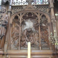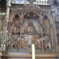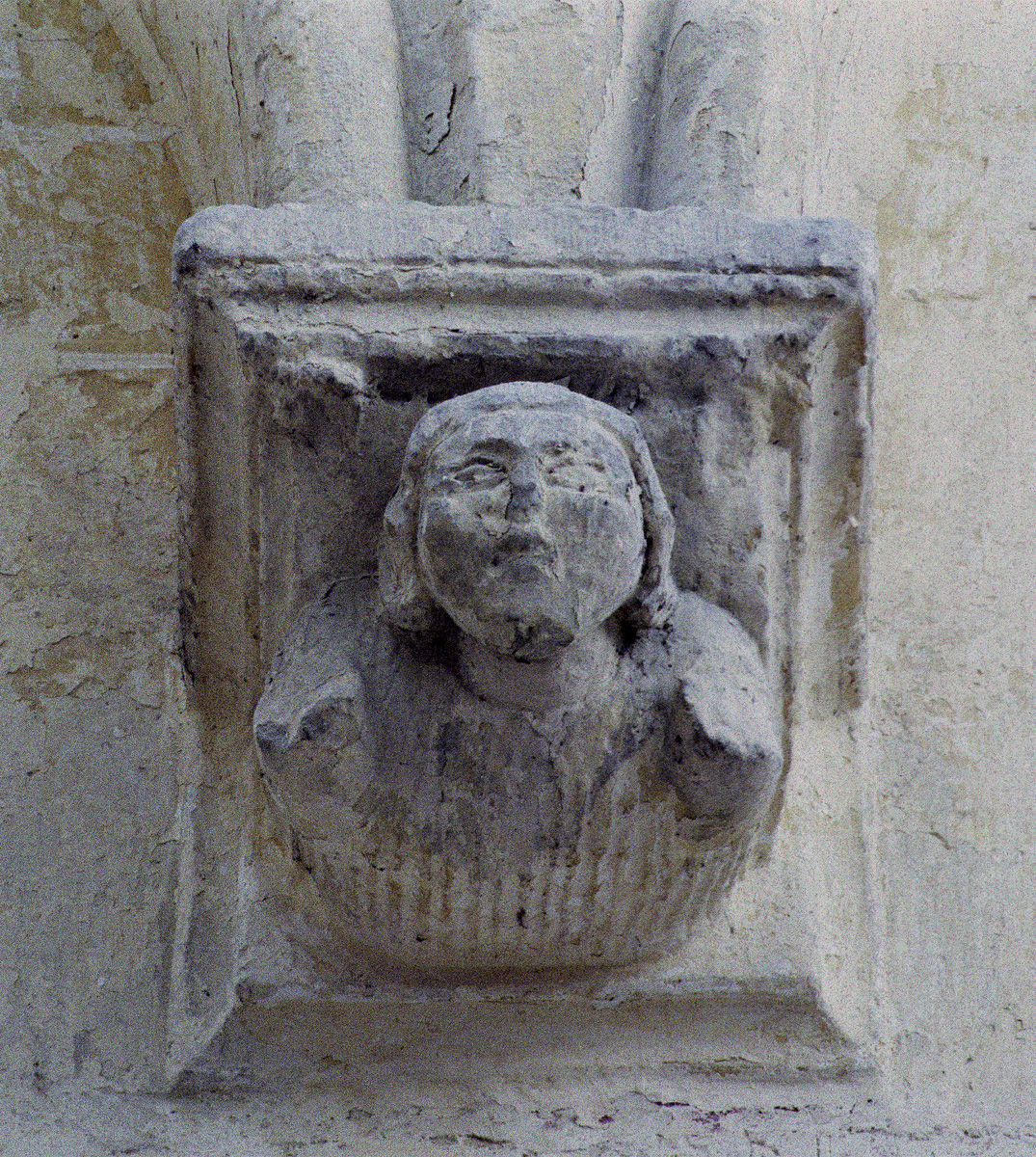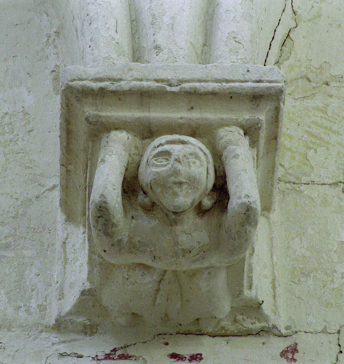 La belle poutre de gloire a été déposée dans le bas-côté sud et l’église a conservé une cuve baptismale du 13ème siècle (1978, révisé 2019).