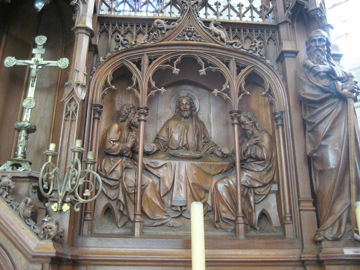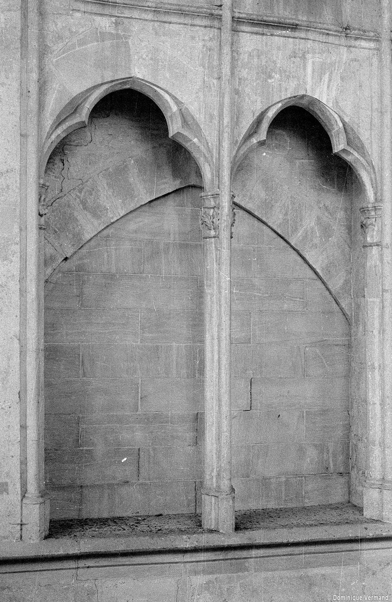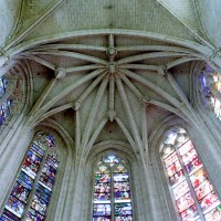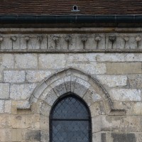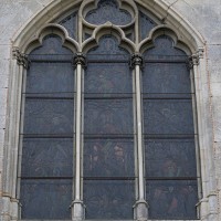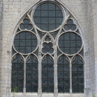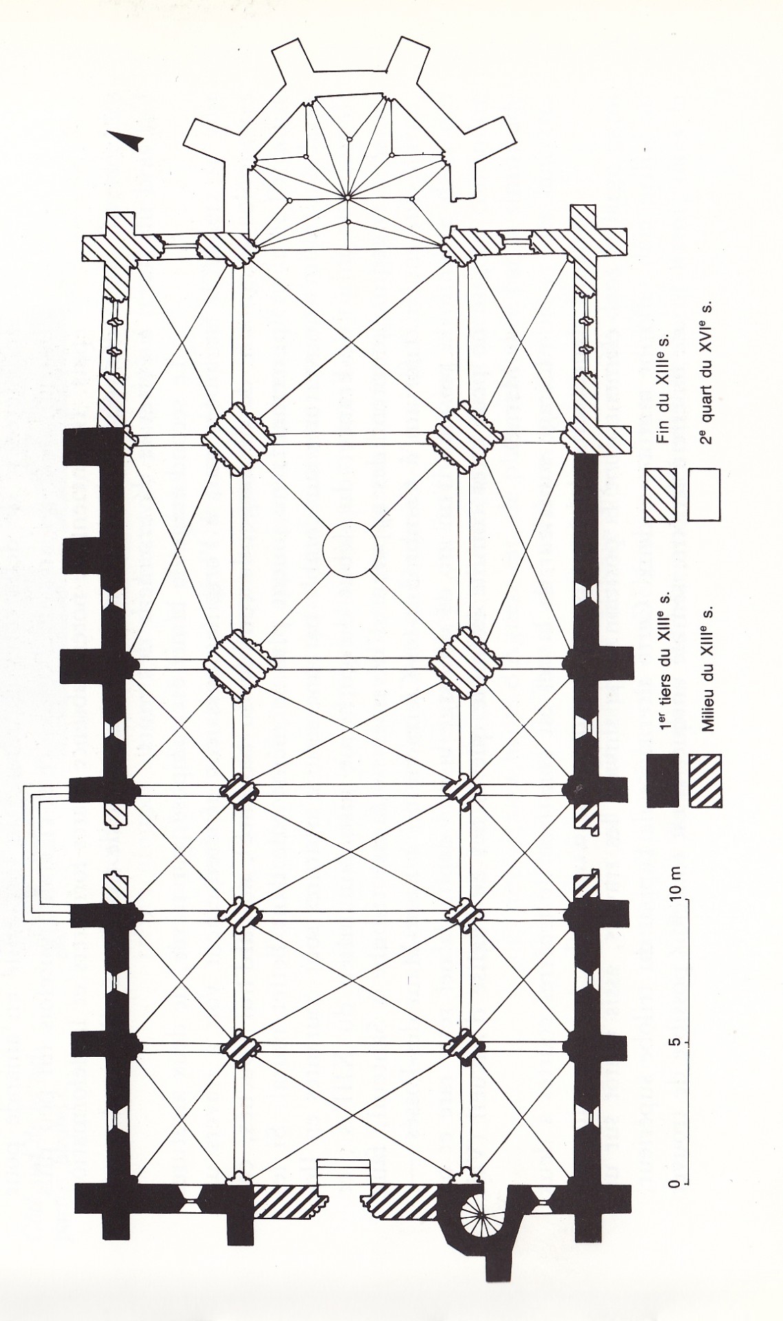 L’élégante abside pentagonale, dont les hautes et étroites fenêtres gardent encore quelques vitraux anciens, a été reconstruite dans les années 1530. La voûte, qui comporte des liernes et des tiercerons, est d’un dessin remarquable. C’est durant le troisième quart du 16ème siècle que l’on a bâti la sacristie, surmontant une sorte de caveau destiné à racheter la déclivité du terrain et renfermant une Mise au Tombeau traitée dans un style réaliste et emphatique.
