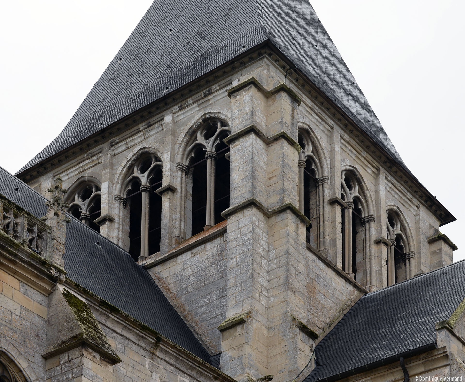 Reposant sur la croisée du transept, l’important clocher est ajouré sur chaque face de trois baies géminées.