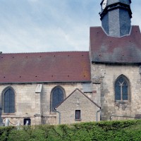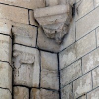 A l’extérieur, les deux travées du chœur, trop remaniées, ne gardent plus d’éléments attribuables au 12ème siècle. On peut par ailleurs s’interroger sur la raison d’être des deux puissants contreforts qui épaulent la première travée : y a-t-il eu un clocher en pierre ?