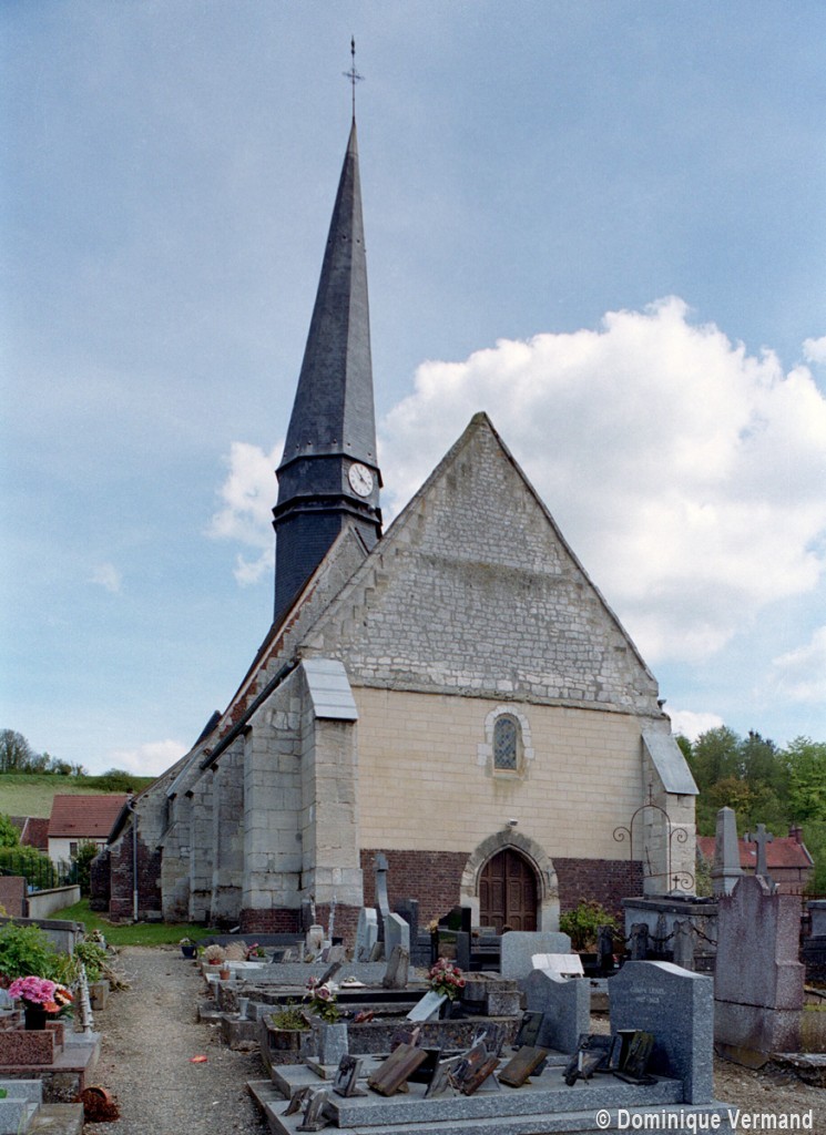 L’église Notre-Dame et Sainte-Anne occupe, comme celle toute proche d’Avrechy, la pente du versant oriental de la vallée de l’Arré, affluente de la Brêche. Elle attire l’attention par la haute flèche effilée et curieusement penchée de son clocher.