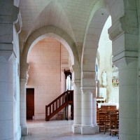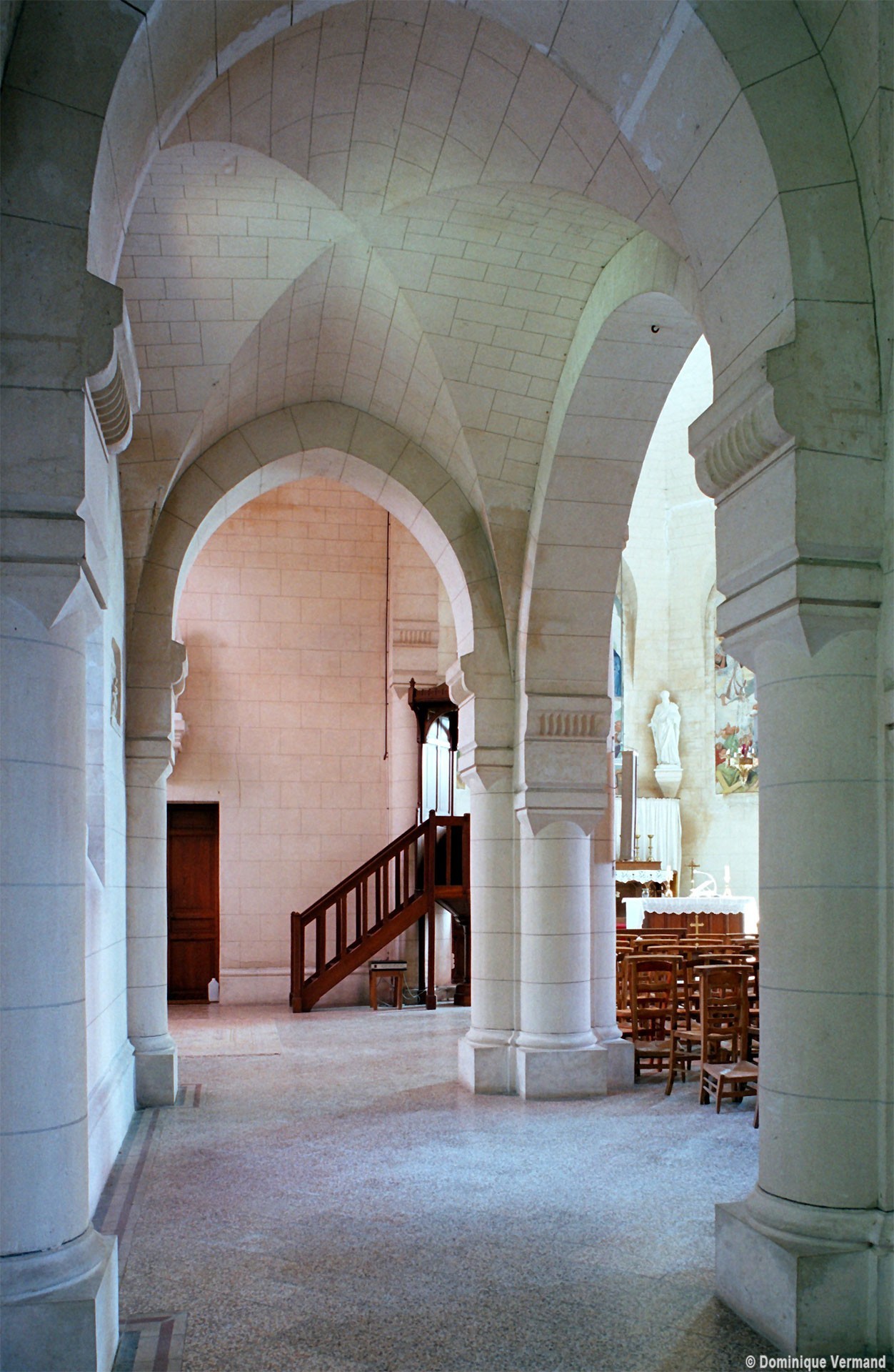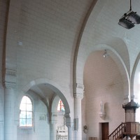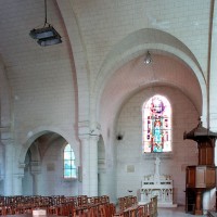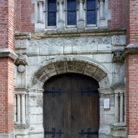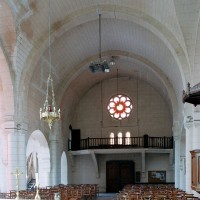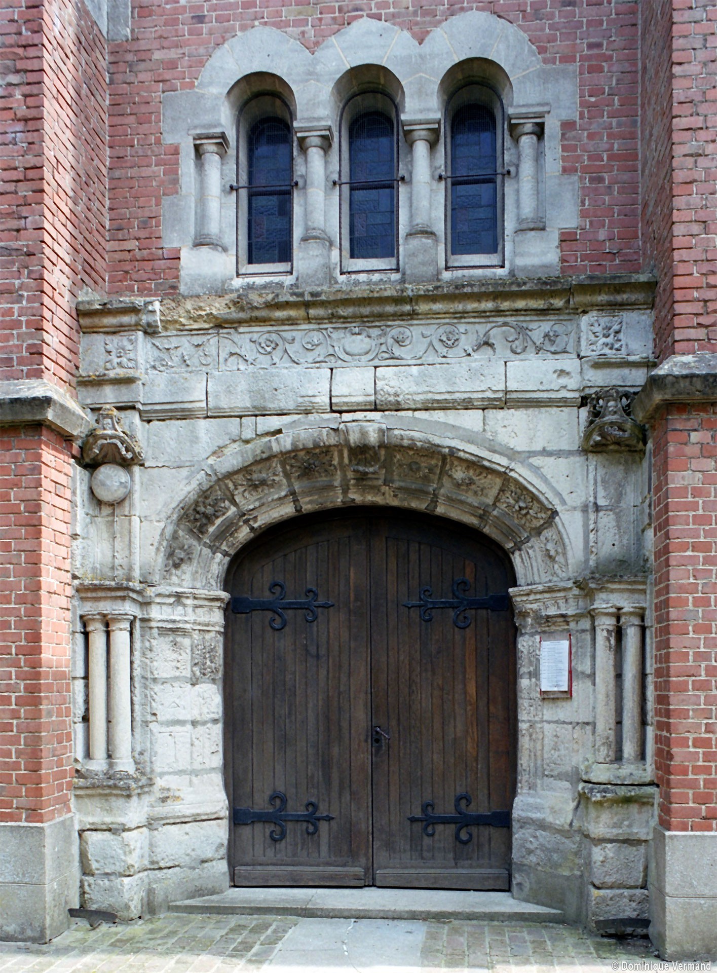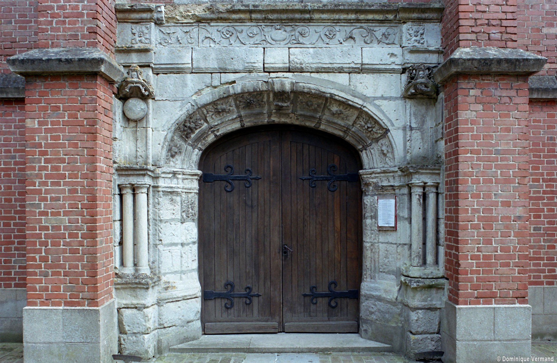 La partie la plus intéressante est sans conteste le portail du 16ème siècle, seul vestige de l’ancienne église qui, à l’époque, avait bénéficié des largesses de la famille de Belloy, seigneur du lieu. Bel exemple de l’art de la Renaissance, son archivolte en cintre surbaissé est finement sculptée et s’inscrit entre deux piédroits composés de deux colonnettes en délit que surmonte une niche avec dais qui abritait autrefois une statue. Au-dessus, un bandeau horizontal décoré de rinceaux termine cette composition particulièrement équilibrée (2008).