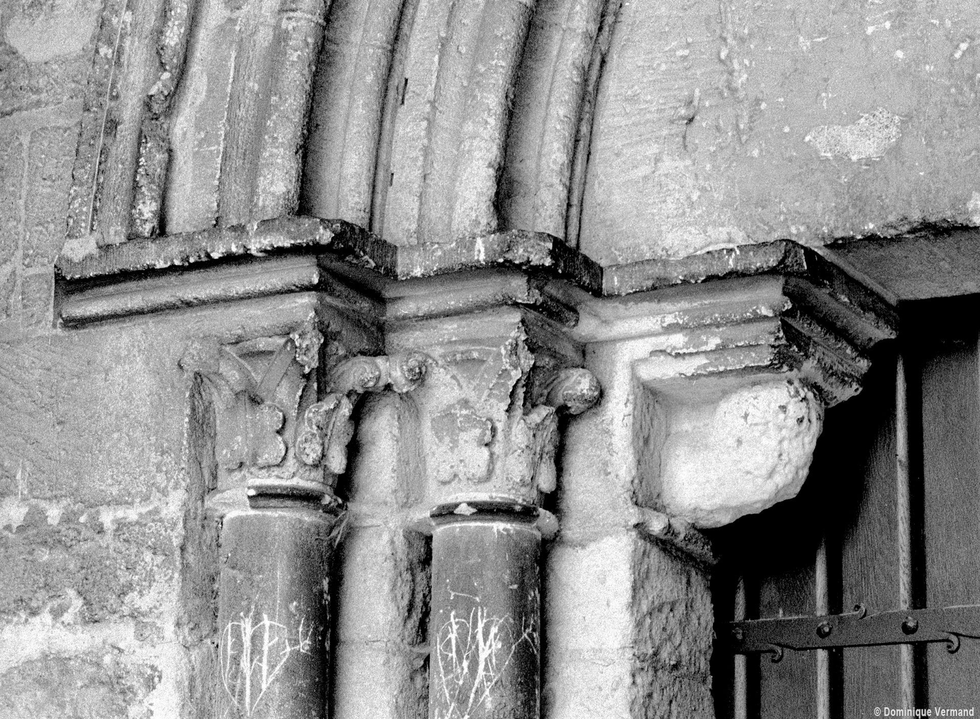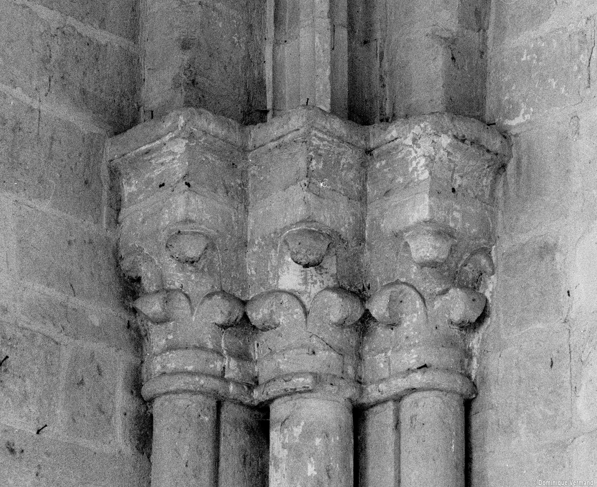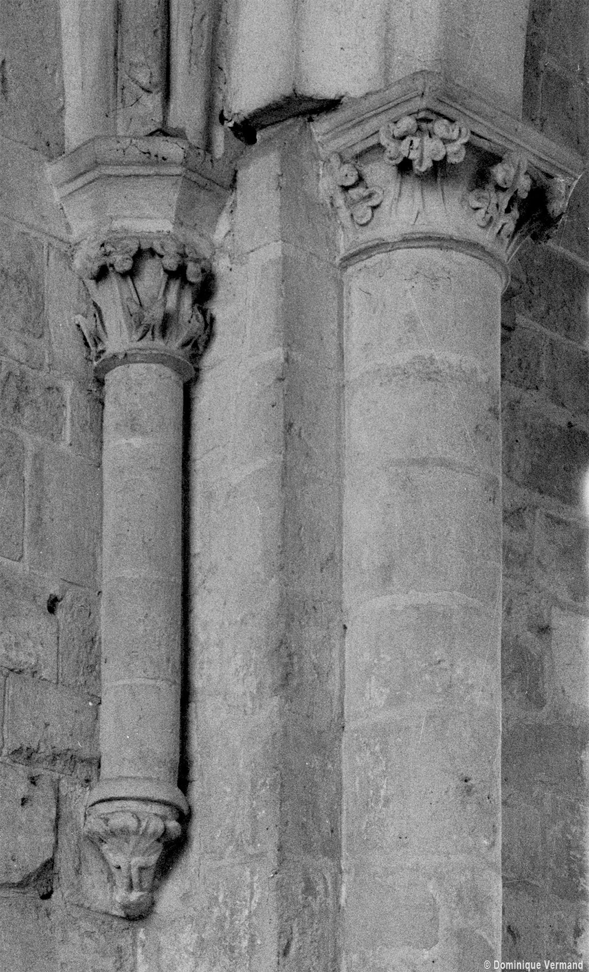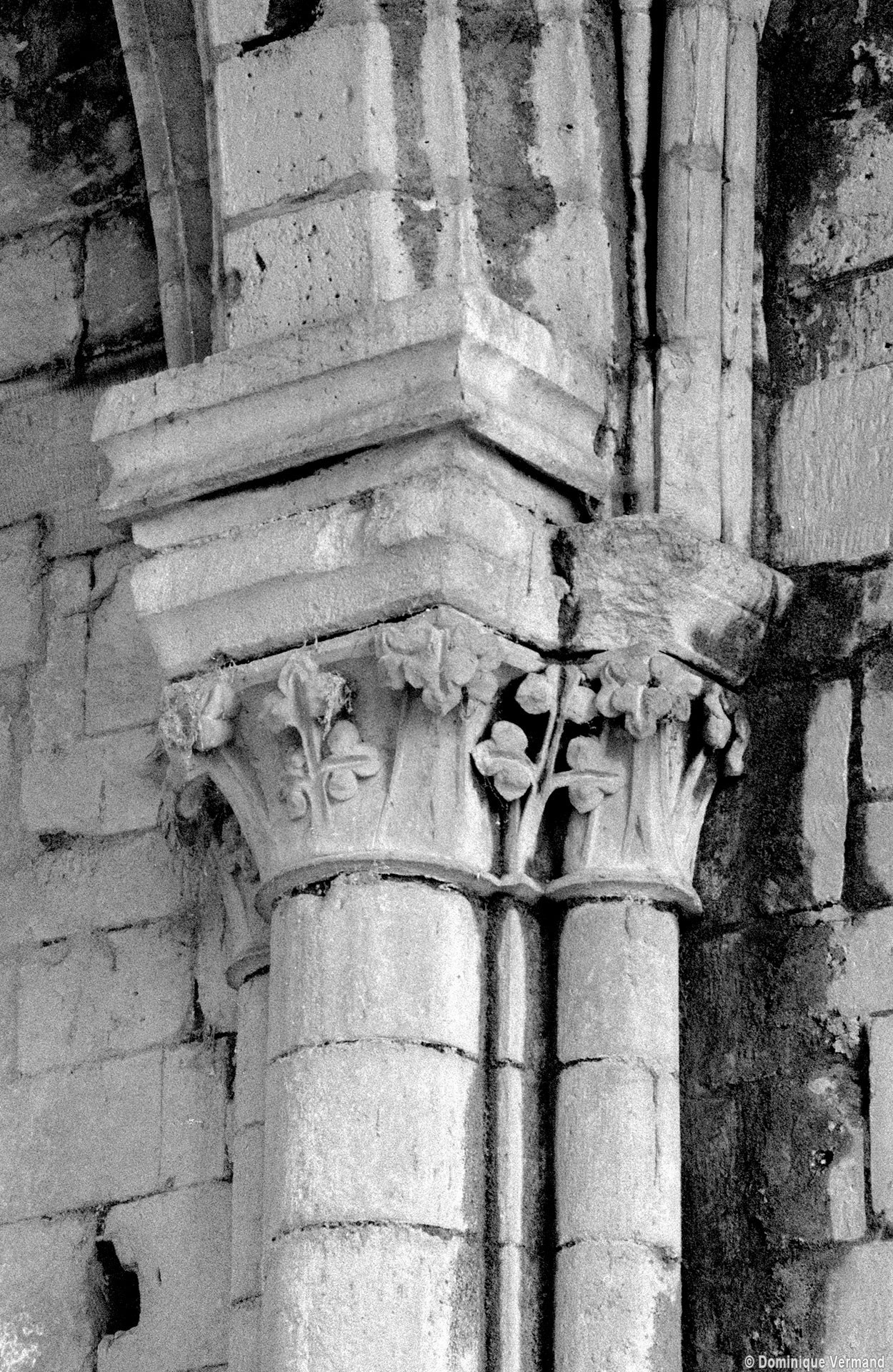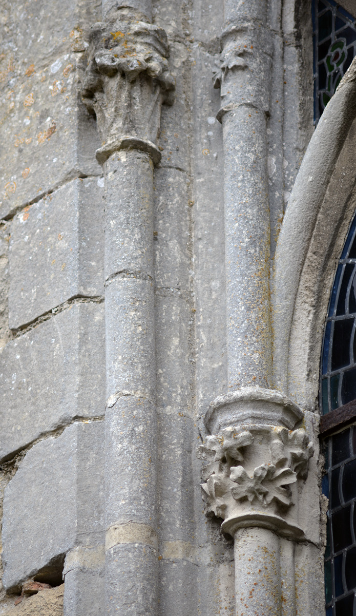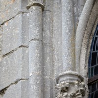 Durant le dernier quart du 12ème siècle, une seconde campagne voit l’édification de la nef, couverte par deux voûtes sexpartites qui retombent alternativement sur de courtes piles cruciformes flanquées de colonnettes – piles fortes – ou bien circulaires – piles faibles. La sculpture des gros chapiteaux à crochets qui surmontent les piles circulaires est remarquable de vigueur. L’élévation ne comporte que deux niveaux : grandes arcades et fenêtres hautes. L’alternance des supports, bien que d’un bel effet, ainsi que la présence d’arcs-boutants, ne se justifient cependant guère dans cet édifice aux dimensions modestes et traduisent davantage un désir d’imitation qu’un choix technique raisonné.