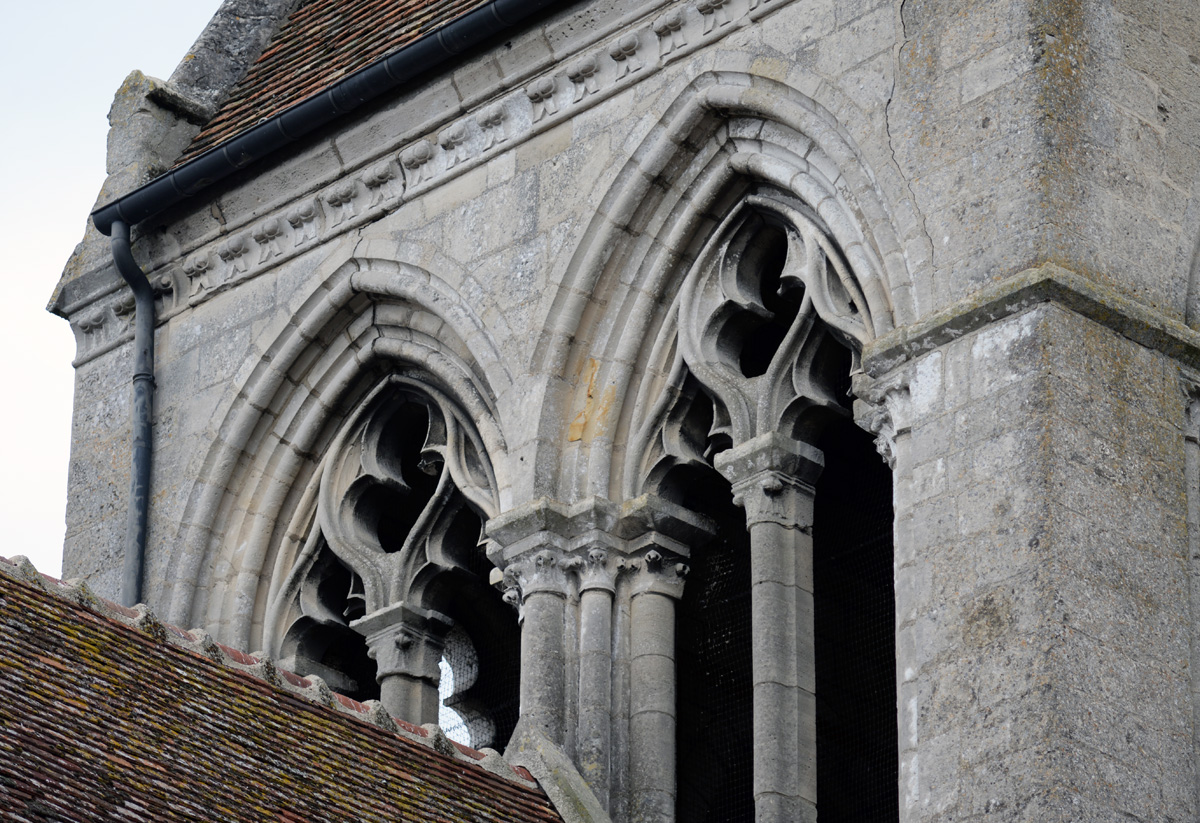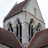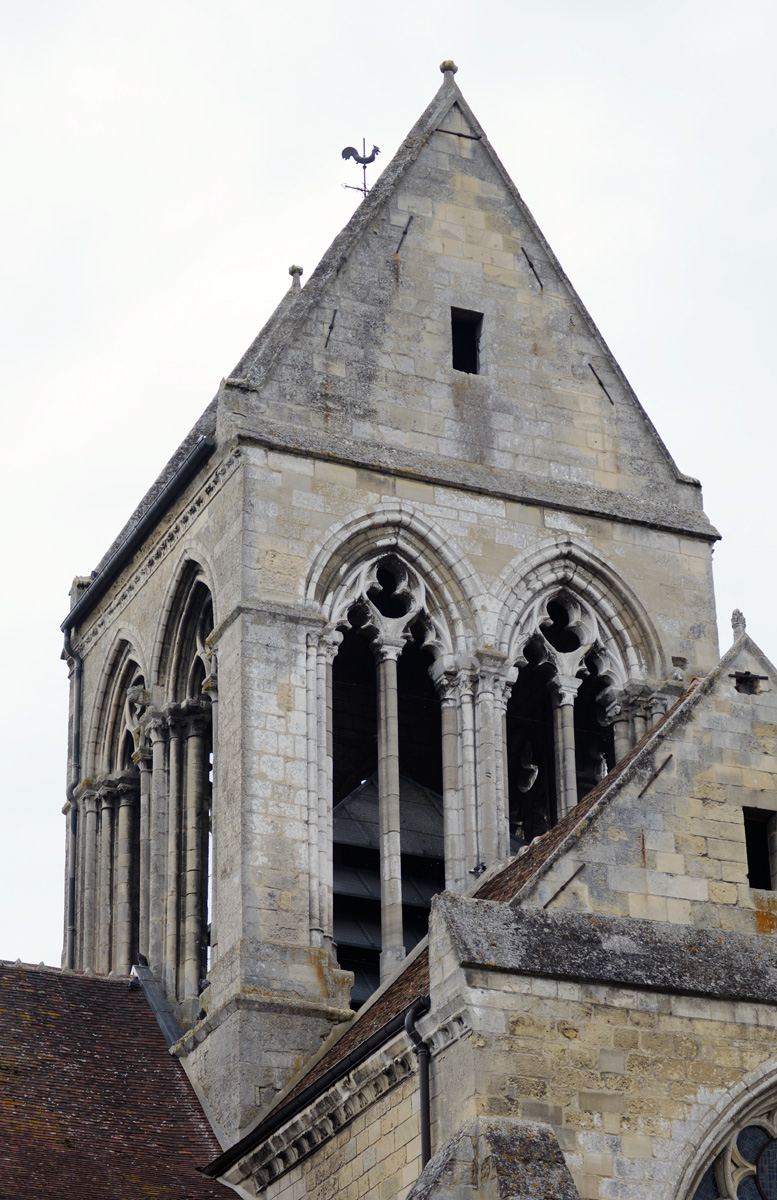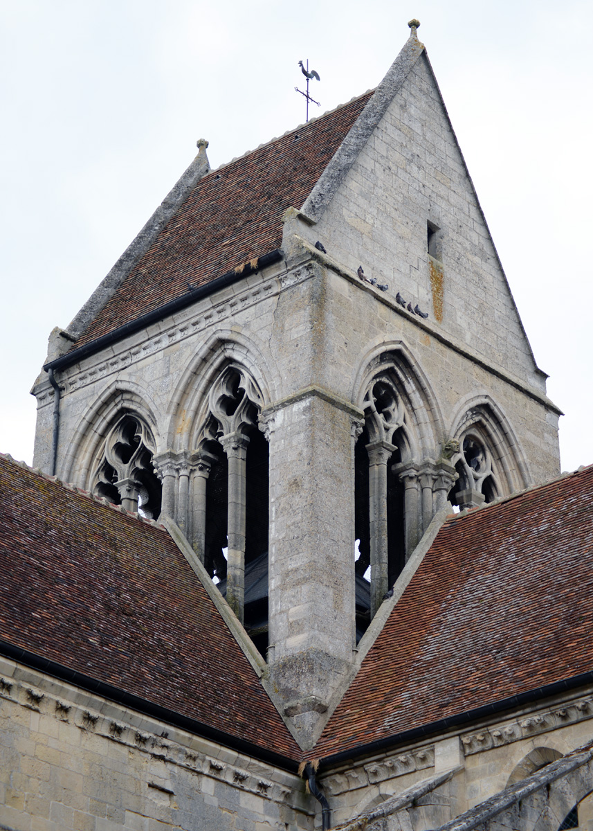 S’élevant à la croisée du transept, le clocher à été également bâti dans les années 1240. Ses huit baies géminées se signalent par l’élégance de leur fenestrage, refait toutefois au 16ème siècle pour certaines d’entre elles.