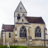 Entre la vallée de la Brèche et celle de l’Oise, dans le paysage vallonné et riant caractéristique de cette partie du Clermontois, l’église Saint-Vaast, très restaurée à la fin du siècle dernier, se ressent manifestement de l’influence des premières cathédrales gothiques, particulièrement celles de Paris et de Senlis. Les travaux commencent vers 1160/70 par la construction du choeur à chevet plat, long d’une travée et primitivement encadré par deux chapelles rectangulaires dont seule subsiste celle du sud, et du transept.