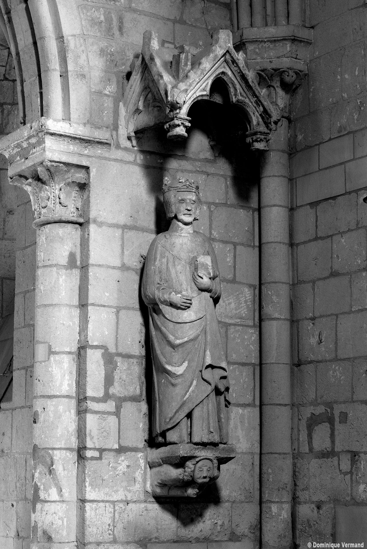 Une belle cuve baptismale du 12ème siècle et une grande statue en pierre représentant un roi (faut-il y voir, comme certains, saint Louis ?) se remarquent parmi le mobilier conservé (1978, révisé 2015).