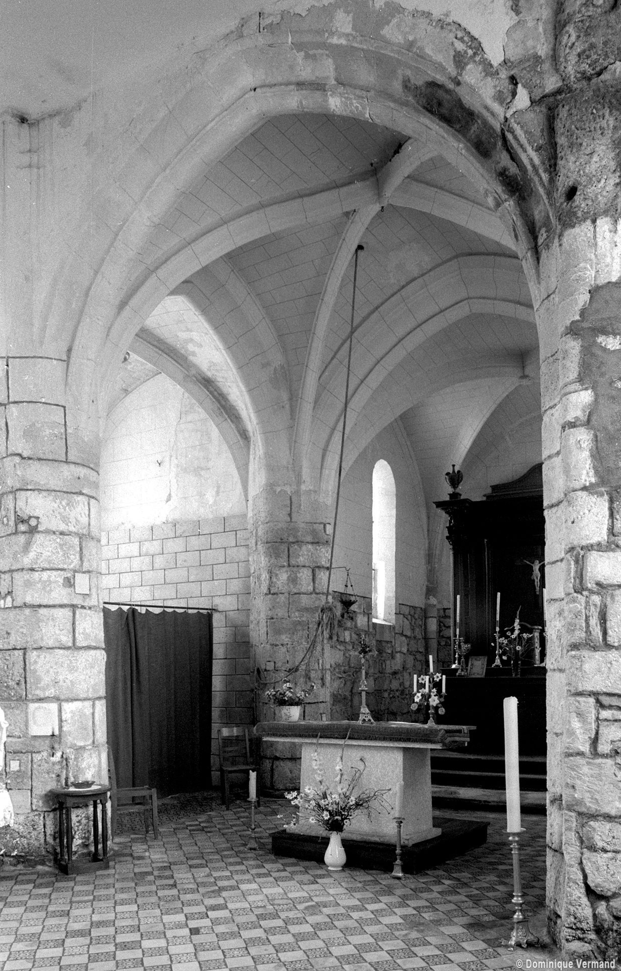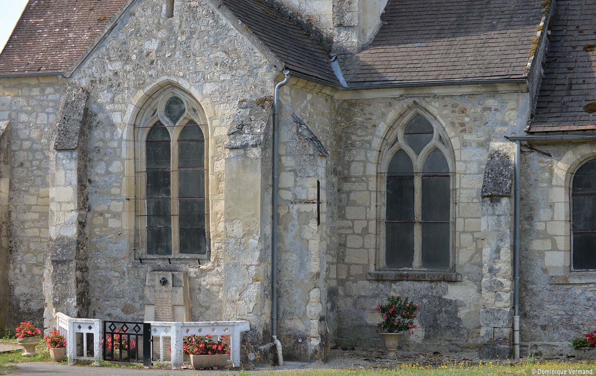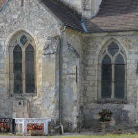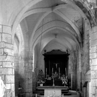 C’est au 16ème siècle qu’intervinrent l’allongement de la nef vers l’est et la construction du chœur de deux travées à chevet plat, flanqué d’une chapelle au nord de la première travée. La retombée directe, par pénétration dans les piles, des voûtes d’ogives et des arcades ainsi que le réseau flamboyant – très simplifié – de deux fenêtres portent bien la marque de ce temps.