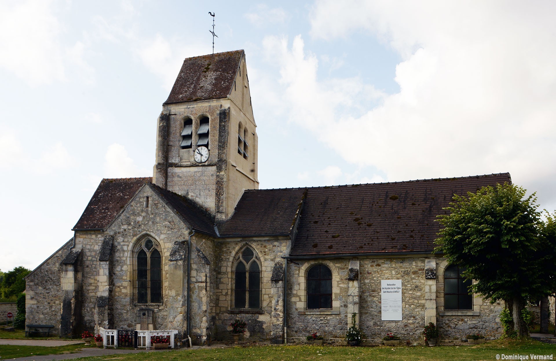 Homogène avec ces parties orientales, la chapelle nord n’a jamais eu son pendant au sud. Sa fonction, dès l’origine, de chapelle seigneuriale est attestée par la clef armoriée de sa voûte et par la présence de deux belles pierres tombales des 17ème et 18ème siècles évoquant le souvenir de la famille de Billy, qui possédait la seigneurie d’Antilly depuis 1428.