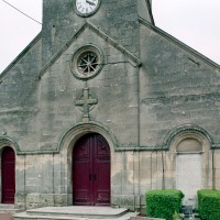 Bâtie de 1839 à 1842 par l’architecte Maintenay, de Compiègne, la façade sacrifie au style néo-classique à l’honneur durant le règne de Louis-Philippe. L’accent est mis sur la partie centrale – correspondant au clocher – qui superpose un portail en plein cintre surmonté d’une croix associée à une auréole, une petite rose inscrite dans un faux pignon matérialisé par une moulure et, au-dessus d’un court soubassement, un étage de beffroi ajouré d’une seule baie en plein cintre sur chaque face. La base de la partie centrale forme porche et, de chaque côté, deux petits portails semblables à celui du centre donnent accès aux bas-côtés, refaits à cette occasion.