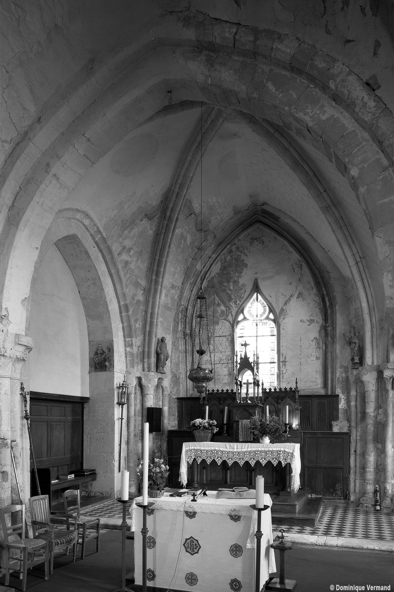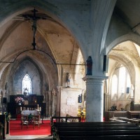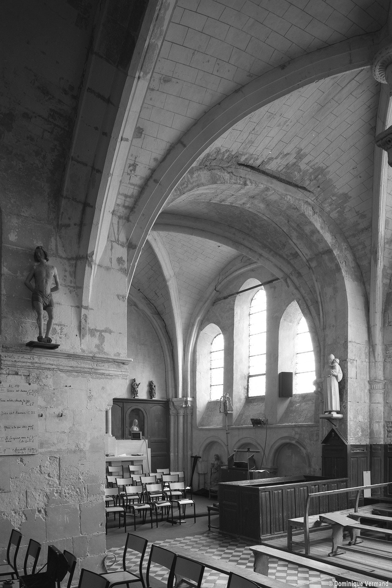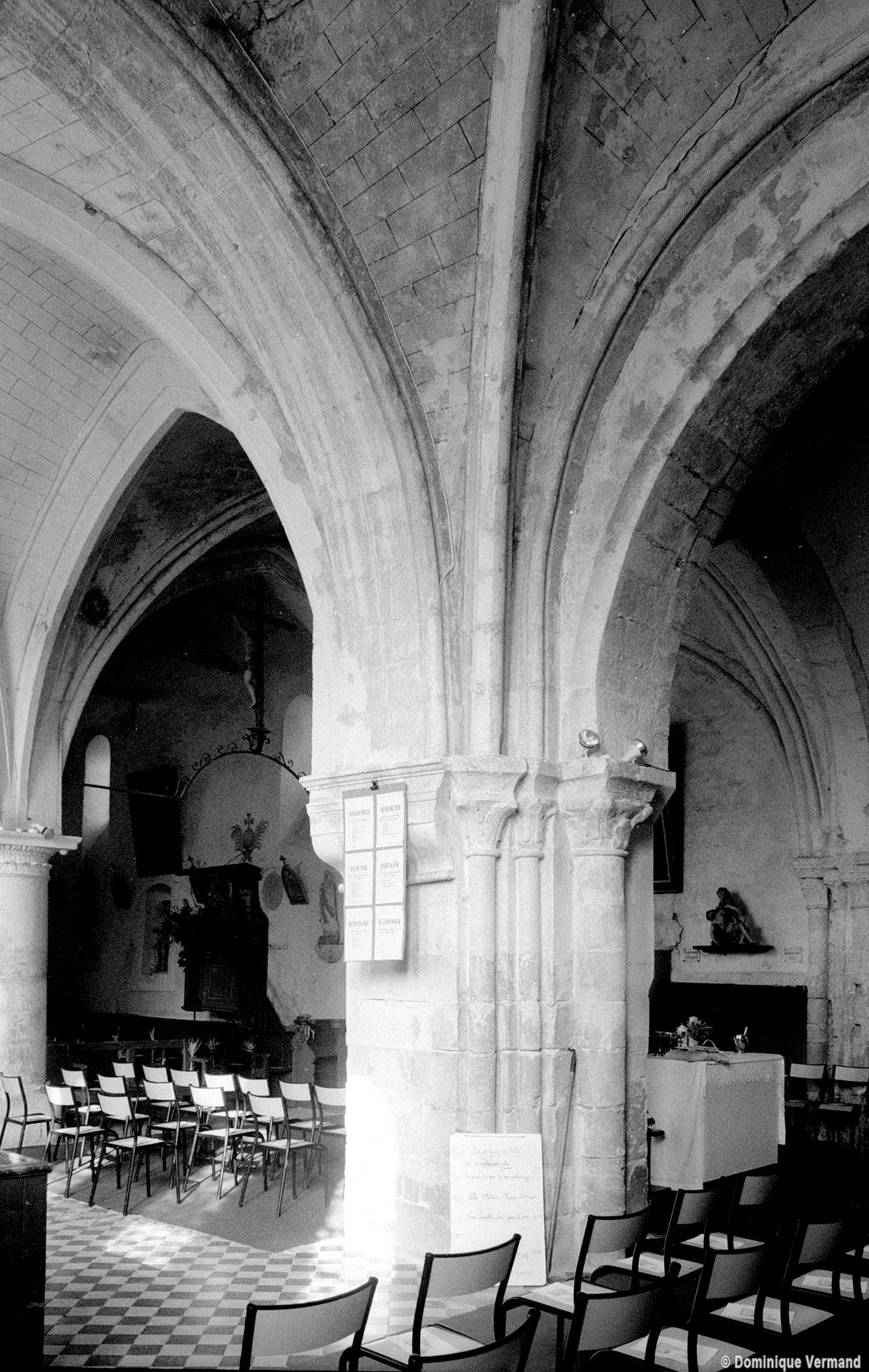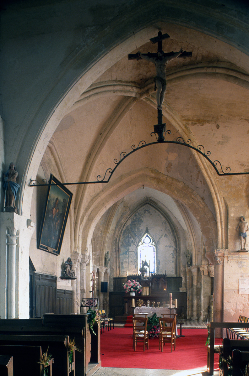 Les années 1150/60 voient la reconstruction de la voûte de la première travée du choeur et l’édification d’une seconde travée à chevet plat. Fortement bombées, ces voûtes comportent des ogives profilées de trois tores – le central en amande et en forte saillie – et retombent sur des chapiteaux décorés principalement de feuilles d’eau ou d’acanthes.