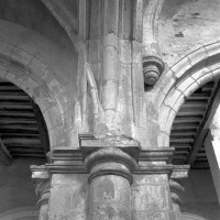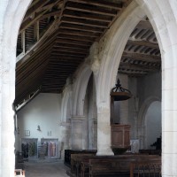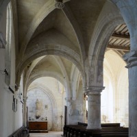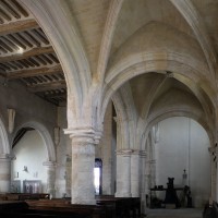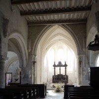 C’est à l’époque d’Henri II, comme en témoigne une clef de voûte avec écusson armorié dans le bas-côté nord, que l’édifice acquiert le visage qu’il présente aujourd’hui. La nef est alors largement reprise en sous-oeuvre – la belle corniche du 12ème siècle est toujours visible depuis le bas-côté sud – et une grosse tour est construite sur la première travée du bas-côté nord. L’ensemble, de style Renaissance avec ses chapiteaux à décor dorique ou ionique, n’a pas été achevé puisque ni la nef ni le bas-côté sud n’ont été voûtés et le clocher paraît trop trapu. C’est peu avant qu’étaient intervenues d’importantes réparations aux parties orientales : croisée du transept, croisillon sud, revoûtement de l’abside (1997, modifié 2019).