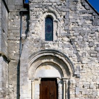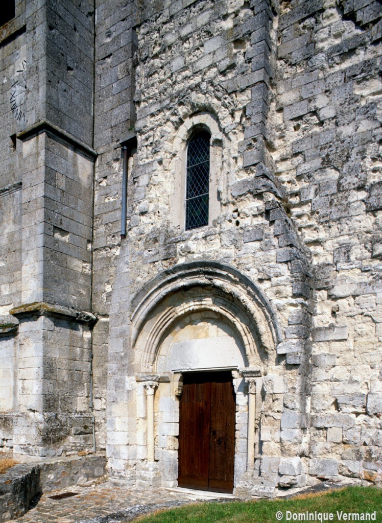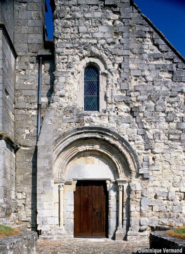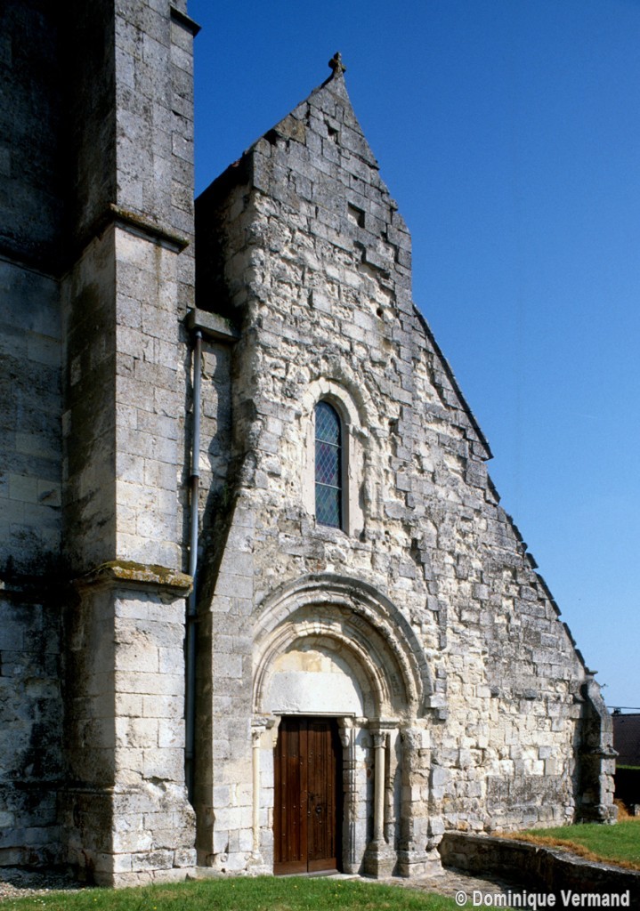 Assise sur le rebord du plateau qu’entame le rû d’Autheuil, affluent de l’Ourcq, Saint-Martin est un édifice composite à la silhouette tourmentée et pittoresque qui intrigue par la curieuse disposition de sa façade, vestige d’une nef unique du milieu du 12ème siècle. Sa partie centrale forme en effet une saillie dont la largeur, d’abord dictée par le portail qu’elle inscrit, se rétrécit ensuite pour se prolonger jusqu’au pignon qu’elle devait certainement dépasser à l’origine. C’est, du moins, ce que l’on peut déduire de la présence de deux puissants contreforts au revers de la façade, qui suggèrent l’existence initiale d’une petite tour ou d’un clocher arcade. Une minuscule voûte d’ogives, difficile à dater avec certitude, s’inscrit entre les deux contreforts, au-dessus de la fenêtre. Restauré avec soin et respect des éléments anciens, le portail en plein cintre doté de fines colonnettes en délit reste admirable par la très belle qualité de son décor sculpté.
