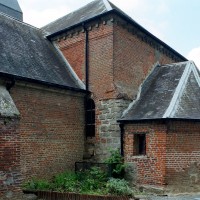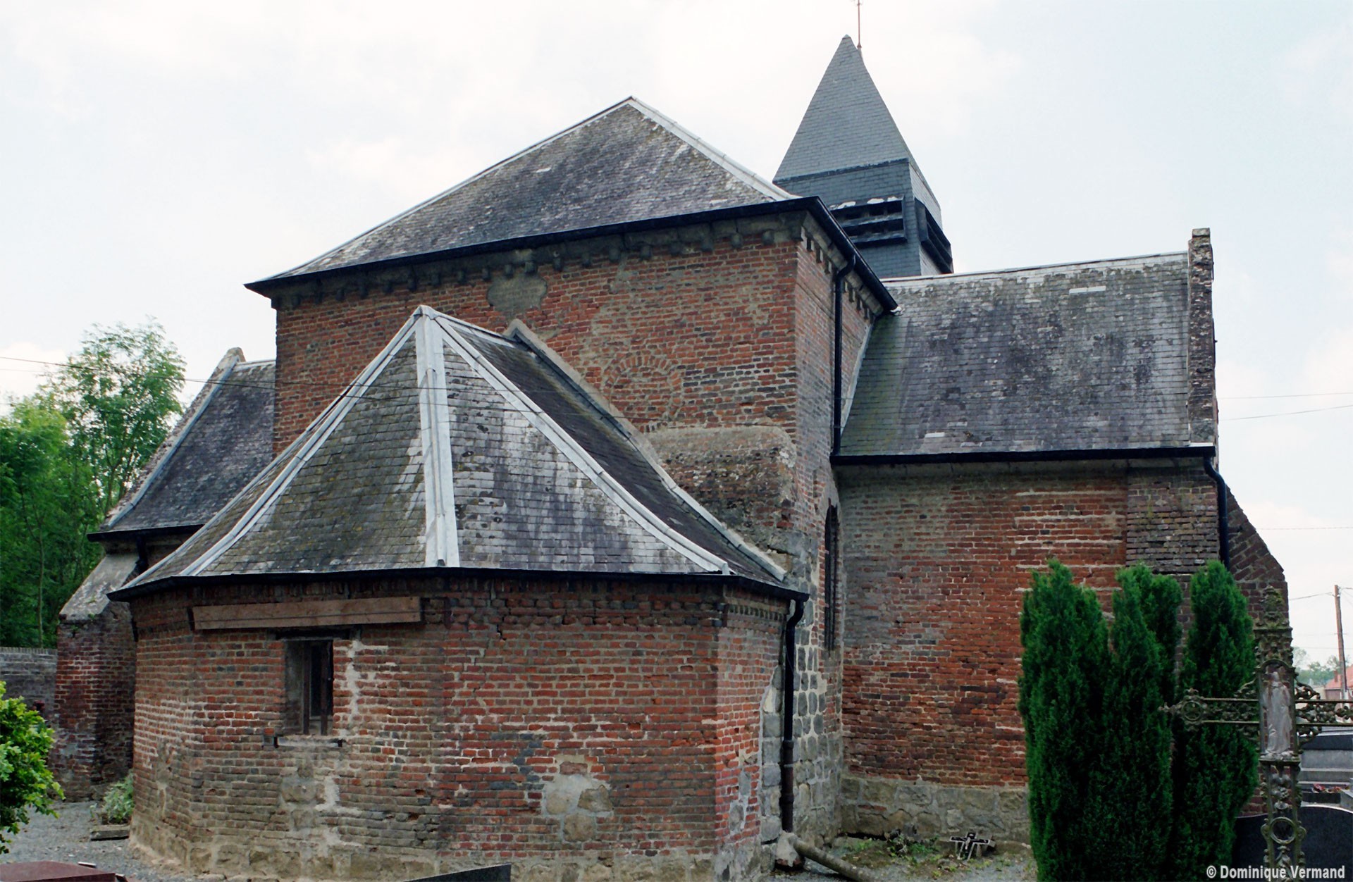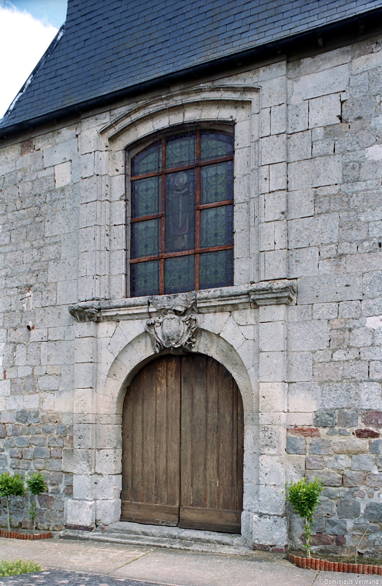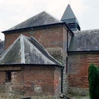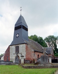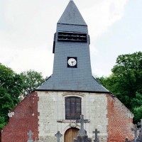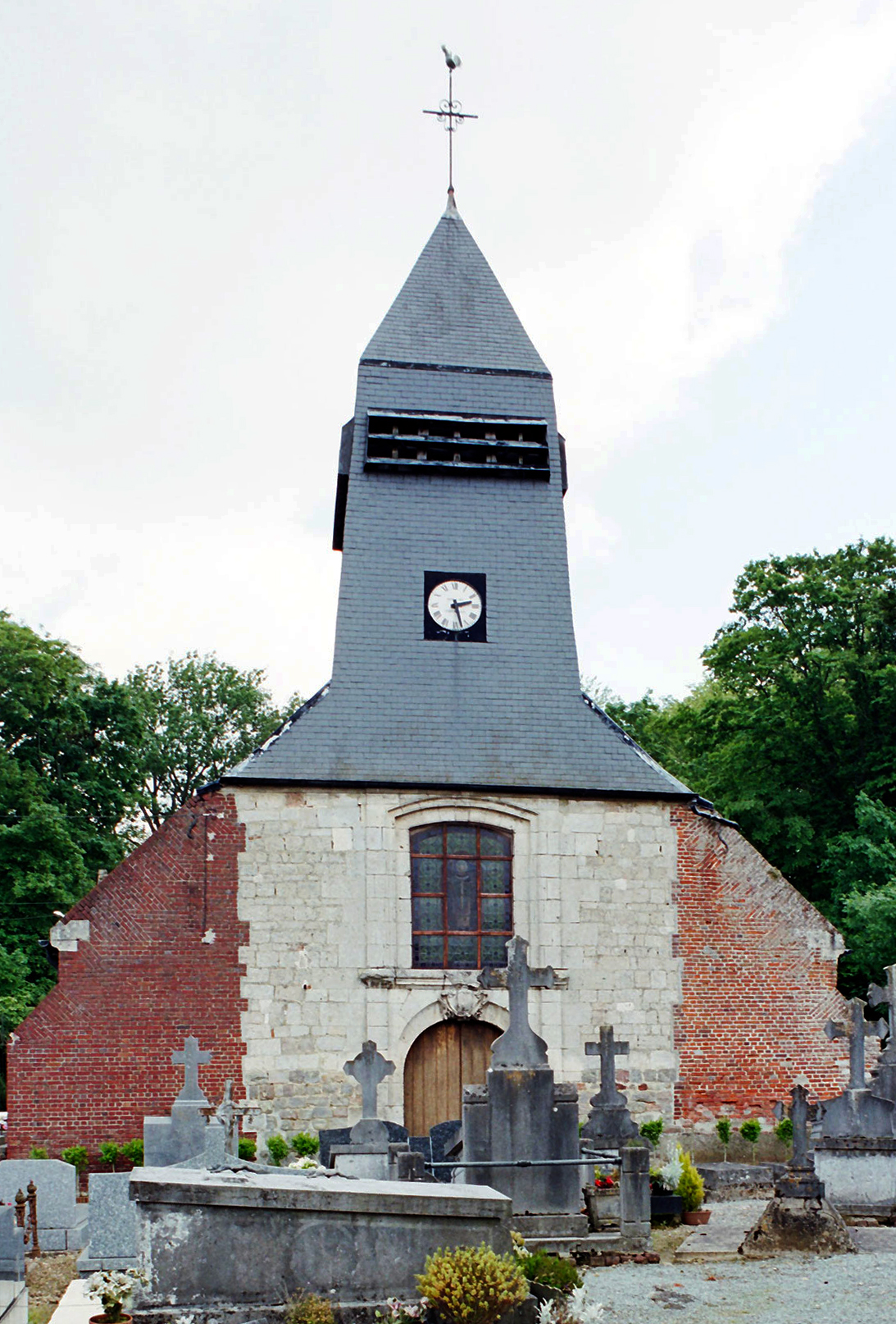 Il est difficile de savoir si la nef, avec ses courtes arcades en plein cintre, est d’origine romane en raison du badigeon qui la recouvre. Une plaque encastrée dans le mur du chevet porte la mention « bâti en 1610 réparé sur ordre de M. le Comte de Louvencourt 1625 », des dates qui peuvent s’appliquer effectivement au reste de l’édifice, excepté à la partie centrale de la façade. Construite avec soin en pierres de taille alors que le reste de l’édifice est en briques, cette dernière superpose un portail en plein cintre et une fenêtre rectangulaire. L’accent est mis sur la clef du portail, dont la décoration raffinée permet d’attribuer cette partie à la première moitié du 18ème siècle.