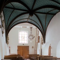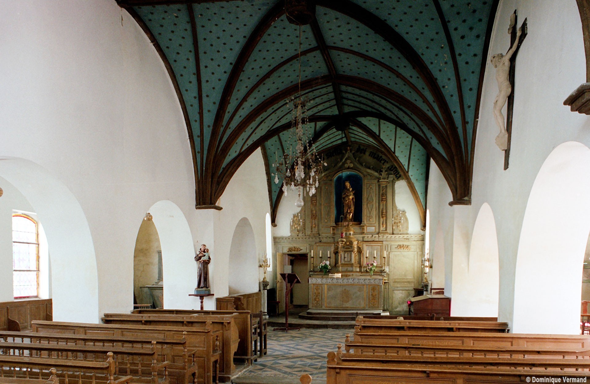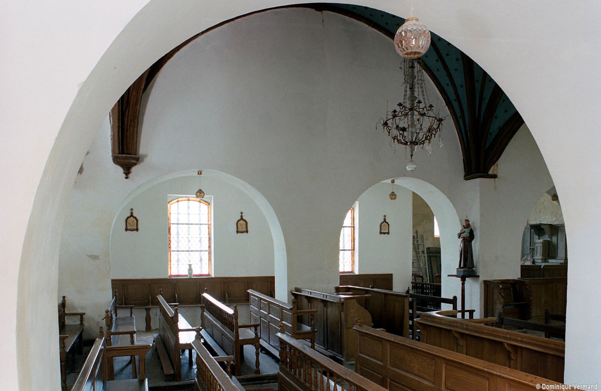 Deux belles voûtes d’ogives en bois, à huit compartiments, coiffent la nef et le choeur, sans doute depuis une restauration effectuée en 1825 (2008).