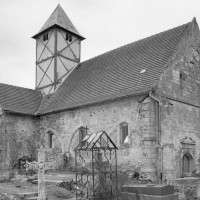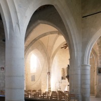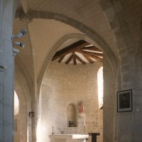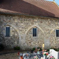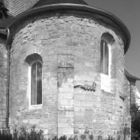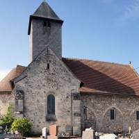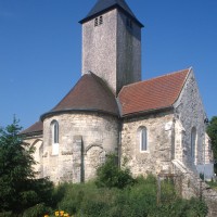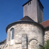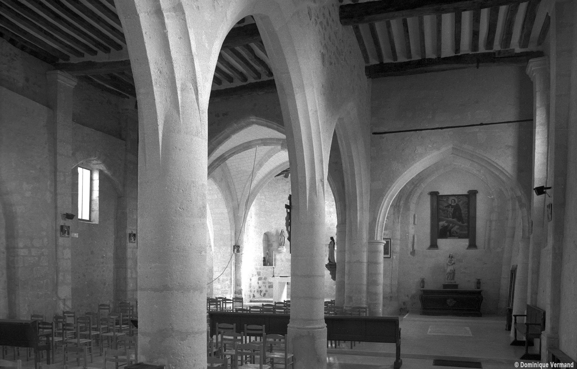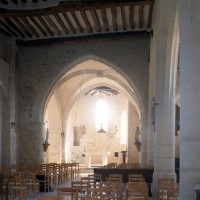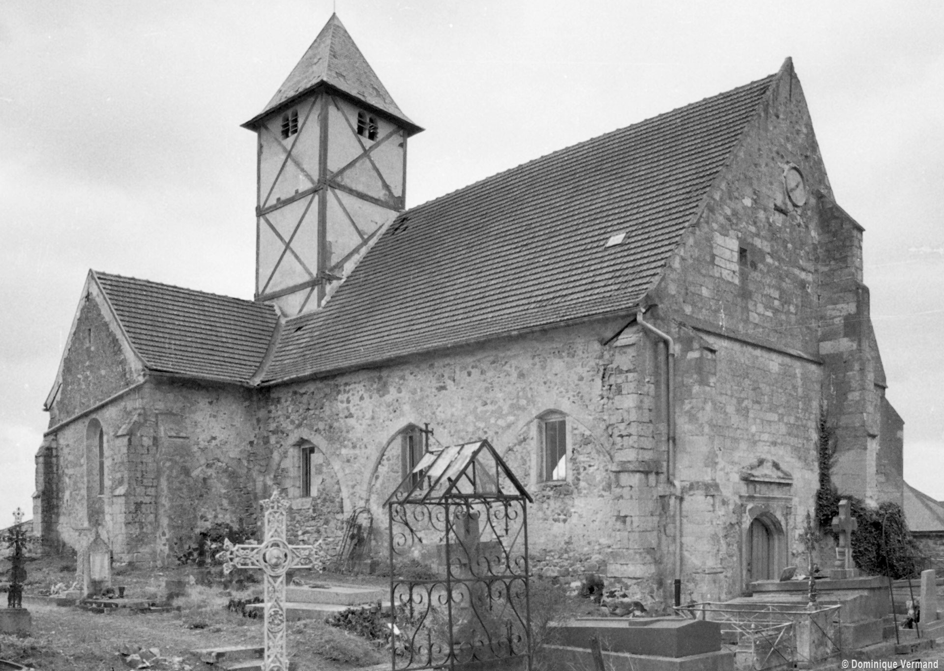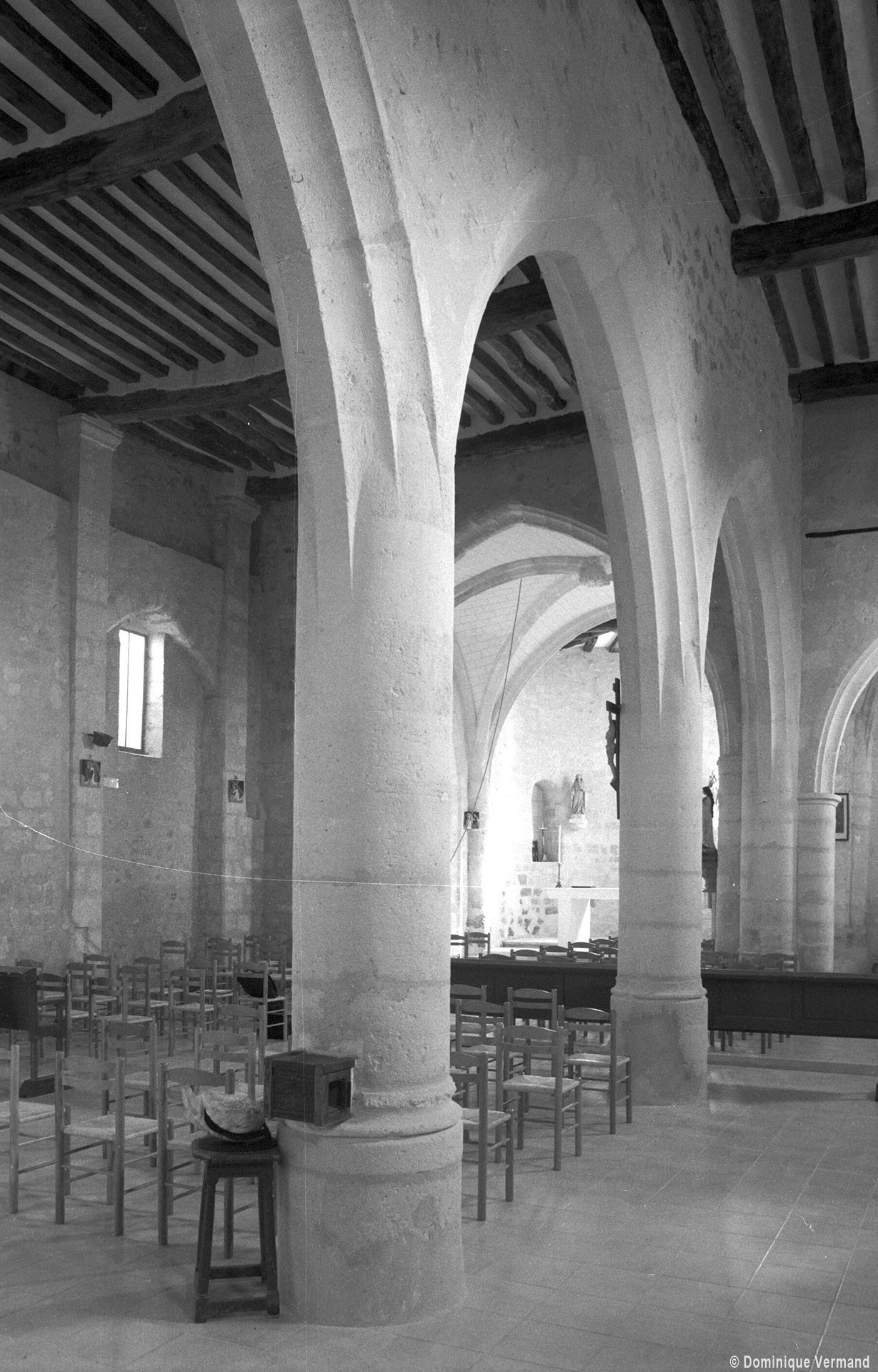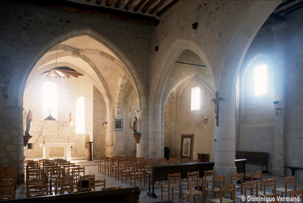 C’est un édifice maintes fois remanié, dont la partie la plus ancienne est l’abside en hémicycle qu’une fenêtre avec décor de billettes et deux contreforts plats permettent de dater de la fin du 11ème siècle. Un cul-de-four aujourd’hui disparu la couvrait selon toute vraisemblance à l’origine. Une simple nef sans bas-côtés lui était certainement associée mais des travaux importants intervinrent peu après le milieu du 12ème siècle avec la construction d’un petit transept et d’une nouvelle nef de trois travées avec bas-côtés. Il en reste le croisillon nord ainsi que le mur gouttereau attenant, avec ses trois arcades brisées, aujourd’hui bouchées par suite de la démolition du bas-côté. C’est à la même époque que l’abside fut surélevée et que deux de ses trois fenêtres primitives furent allongées.