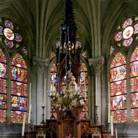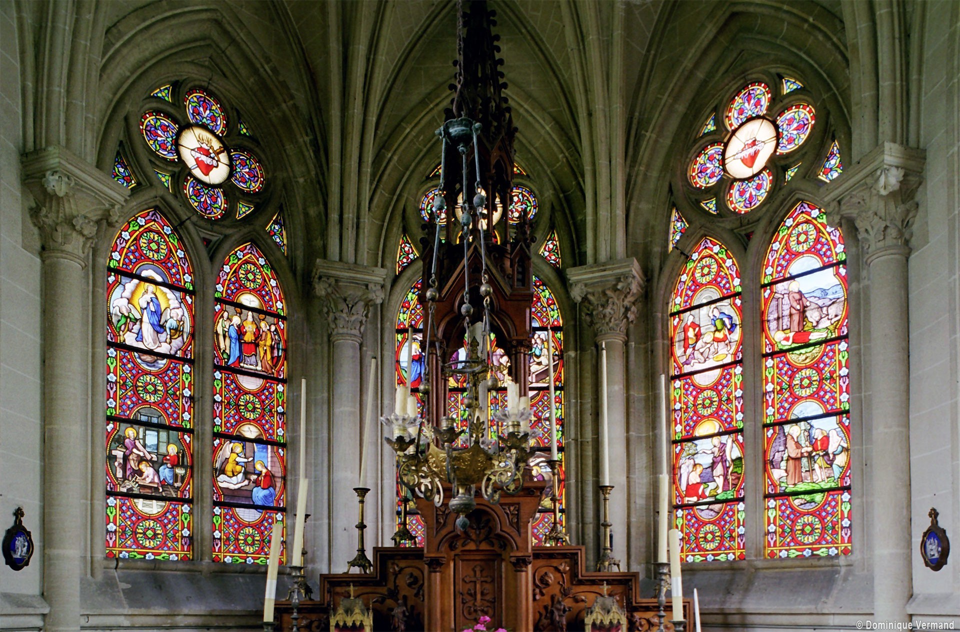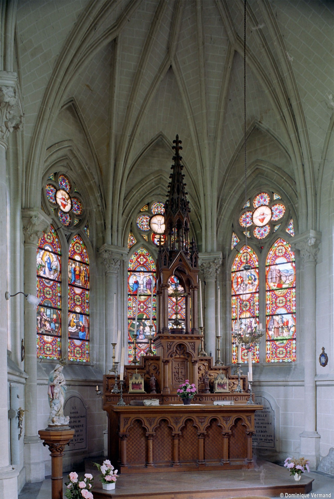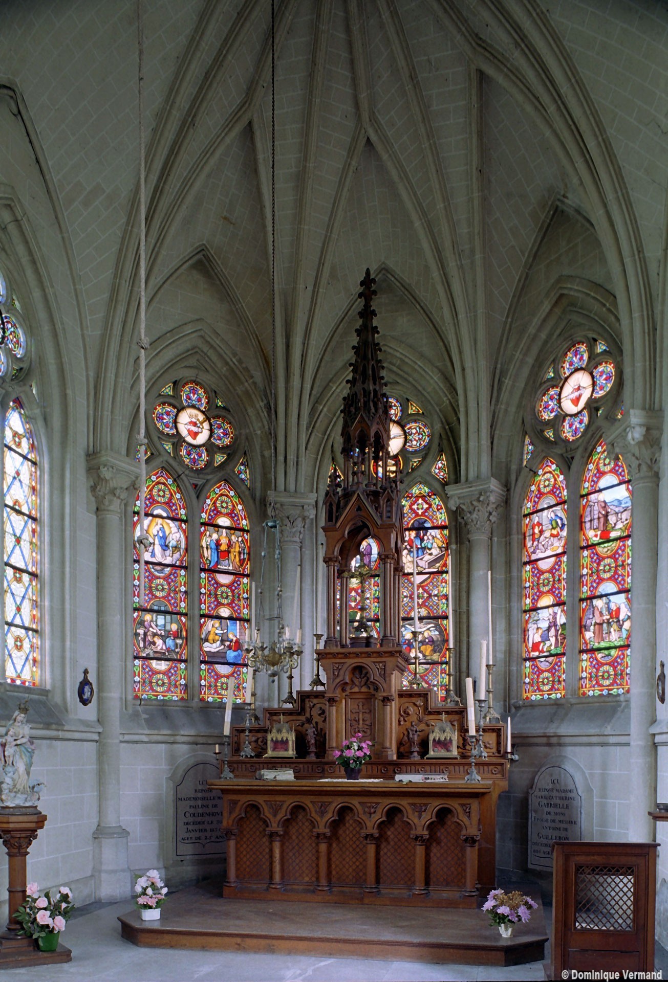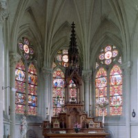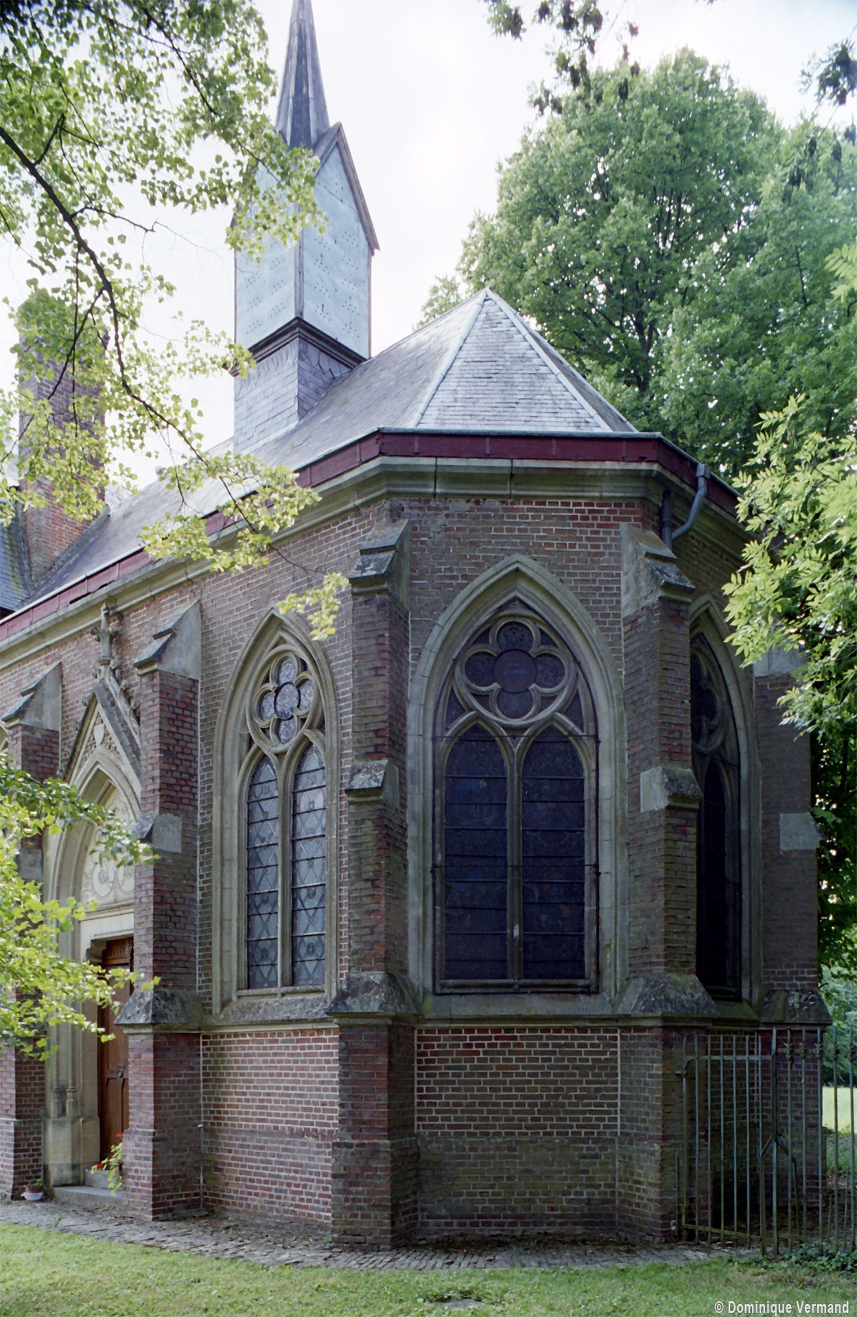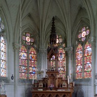 De construction soignée, c’est un bon exemple d’architecture privée, de style néo-gothique. Une abside à trois pans la termine au nord-est. De construction plus élaborée que l’église paroissiale, elle comporte un intéressant ensemble de vitraux de Bazin (1869), dont l’atelier était implanté au Mesnil-Saint-Firmin (2005, modifié 2024).