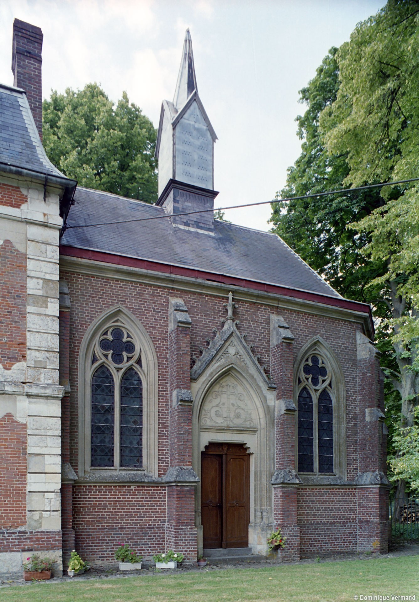 Oeuvre, comme l’église paroissiale, de l’architecte amiénois Paul Delafortie, la chapelle prolonge vers le nord-est le château bâti vers 1760 par la famille de Guillebon. Elle a fort heureusement échappé à l’incendie qui a ravagé le corps central de ce dernier dans la nuit du 23 au 24 avril 2015.