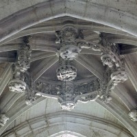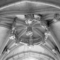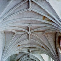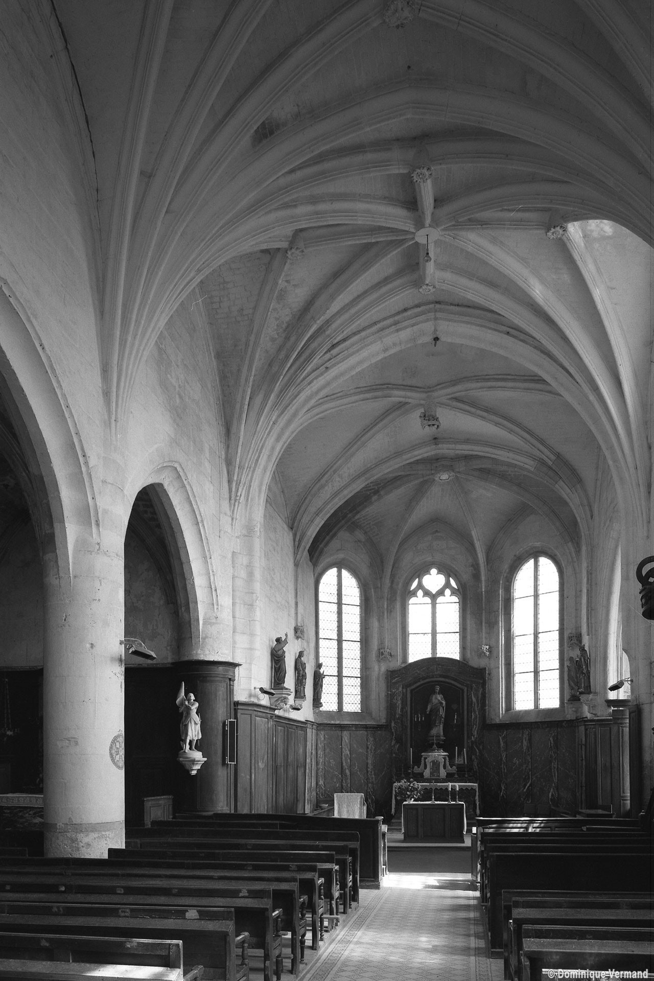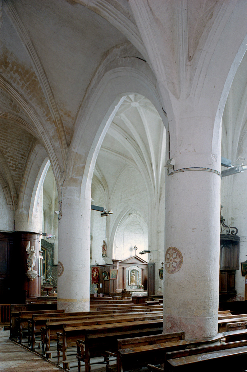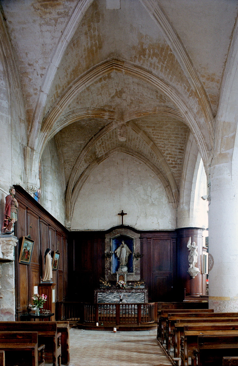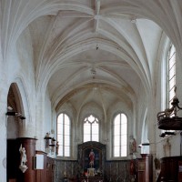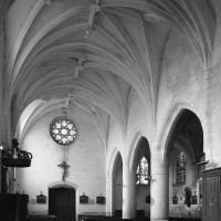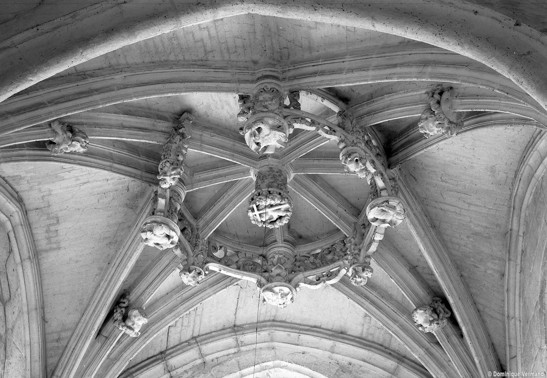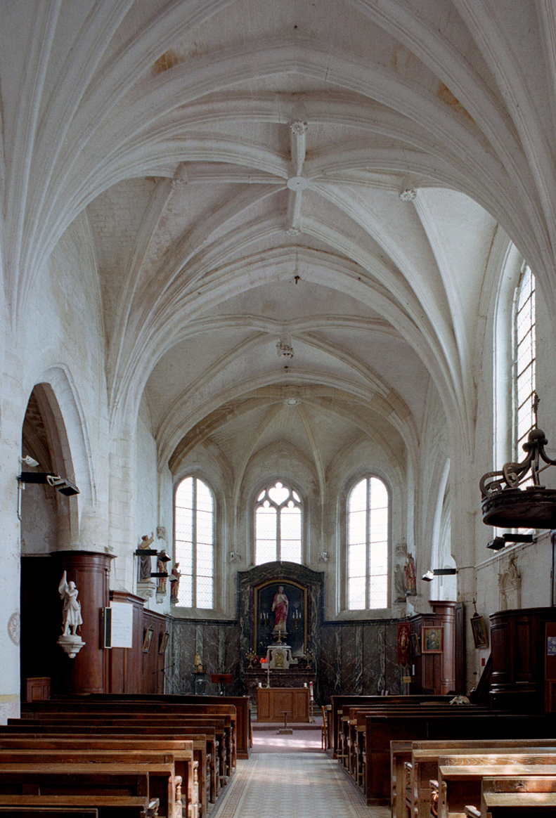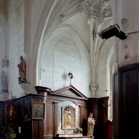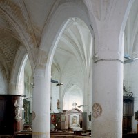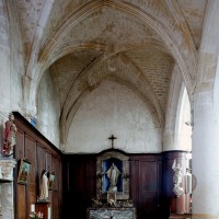 La nef est couverte de voûtes avec liernes et tiercerons tandis que le bas-côté et la travée droite du chœur reçoivent de simples voûtes quadripartites. Mais l’élément le plus remarquable est sans conteste l’exceptionnelle voûte de la chapelle seigneuriale, dont le réseau en forme d’étoile comporte de nombreuses clefs pendantes très ouvragées, reliées entre elles pour former une couronne.