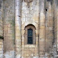 Aujourd’hui en mauvais état mais d’une très grande qualité, celui-ci consiste en une travée droite voûtée en berceau plein cintre reçu sur un bandeau qu’interrompt une fenêtre avec colonnettes et chapiteaux. Quatre arcatures aveugles animent la partie basse. L’extérieur n’est pas moins remarquable avec ses curieux contreforts colonnes encadrant la fenêtre, flanquée de colonnettes avec chapiteaux comme à l’intérieur. Trois arcatures aveugles décoraient la base. L’abside, en hémicycle à l’intérieur et polygonale à l’extérieur, est une reconstruction tardive.