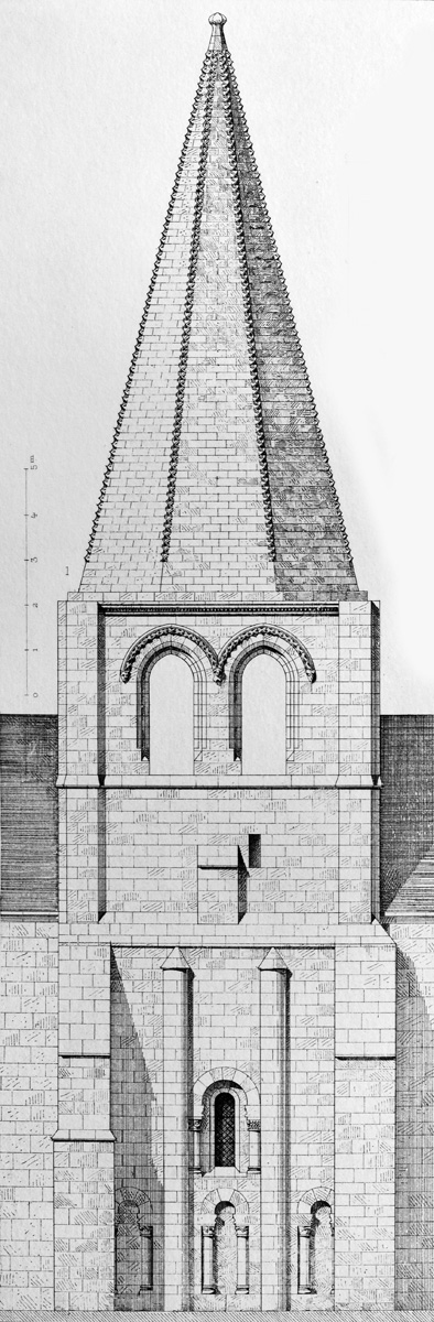 - Extrait de Eugène LEFEVRE-PONTALIS, L’Architecture religieuse dans l’ancien diocèse de Soissons au XIe et au XIIe siècle, tome II, Paris, 1897 (dessin de Léon Guellier).