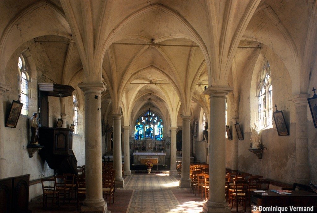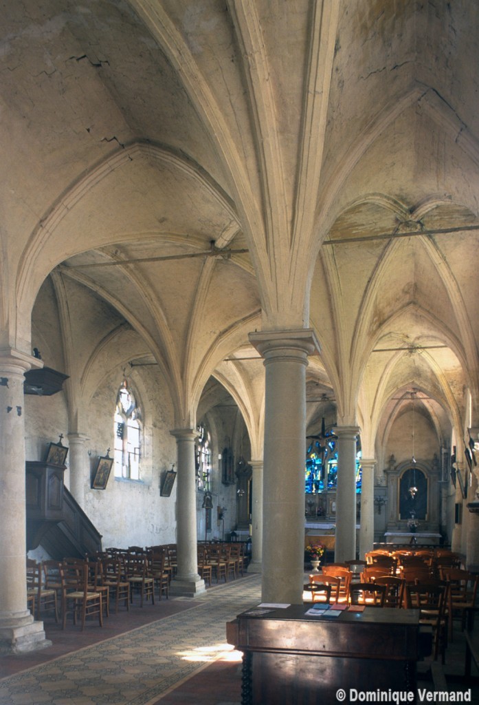 Si l’on excepte le petit clocher bâti en hors œuvre à l’angle sud-ouest en 1781, Notre-Dame est un petit édifice homogène dont la construction remonte au milieu du 16e siècle. Sa silhouette extérieure, compacte et presque austère, est trompeuse : l’intérieur apparaît en effet comme un délicieux morceau d’architecture. Deux files de colonnes d’une extrême minceur partagent l’édifice en quatre travées et trois vaisseaux d’égale hauteur, celui du centre étant plus large que les latéraux. L’ensemble n’est pas sans rappeler les dispositions de certaines cryptes gothiques.