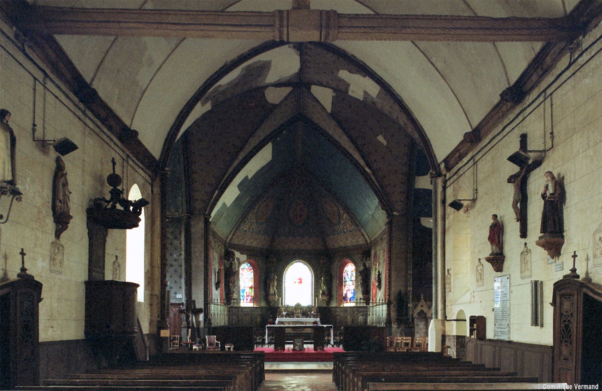L’église possède un mobilier intéressant : cuve baptismale du 12ème siècle, statues d’art populaire dont un Saint-Martin du 17ème siècle, petit orgue du 19ème, série de douze vitraux de la Vie de Jésus, par Houille (1934)… (2007).
