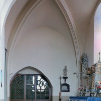 Le mobilier est riche de nombreuses statues intéressantes et d’un charmant maître-autel baroque du début du 18ème siècle (2003, modifié 2015).