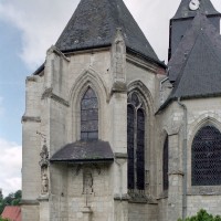 Bâti en dernier (un cartouche en haut du contrefort sud-ouest porte la date 1553), le chœur paroissial, dédié à Notre-Dame, est beaucoup plus vaste. Composé de deux travées et d’une abside à cinq pans, il comporte des magnifiques clefs pendantes – dont une est sculptée d’un exceptionnel Couronnement de la Vierge – et communique avec son voisin par deux minces piliers qui concentrent toutes les retombées des voûtes. S’il se réclame encore du style gothique flamboyant, il n’en est plus de même du croisillon qui le prolonge au sud, daté 1570, et qui appartient pleinement à la Renaissance, tant par le dessin de la rosace que par le délicat décor des parties supérieures où des petits pilastres cannelés encadrent des niches surmontées de coquilles Saint-Jacques.