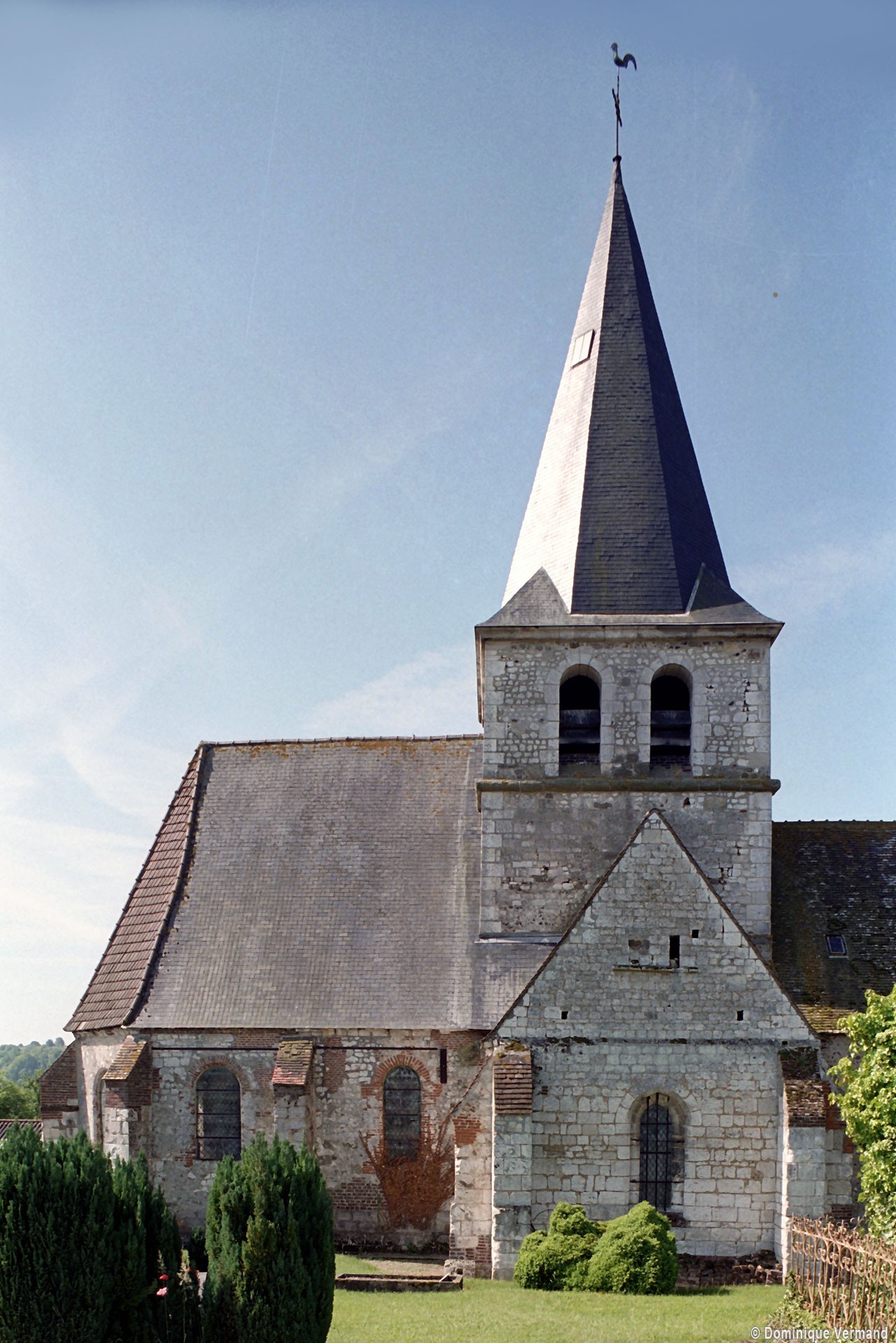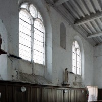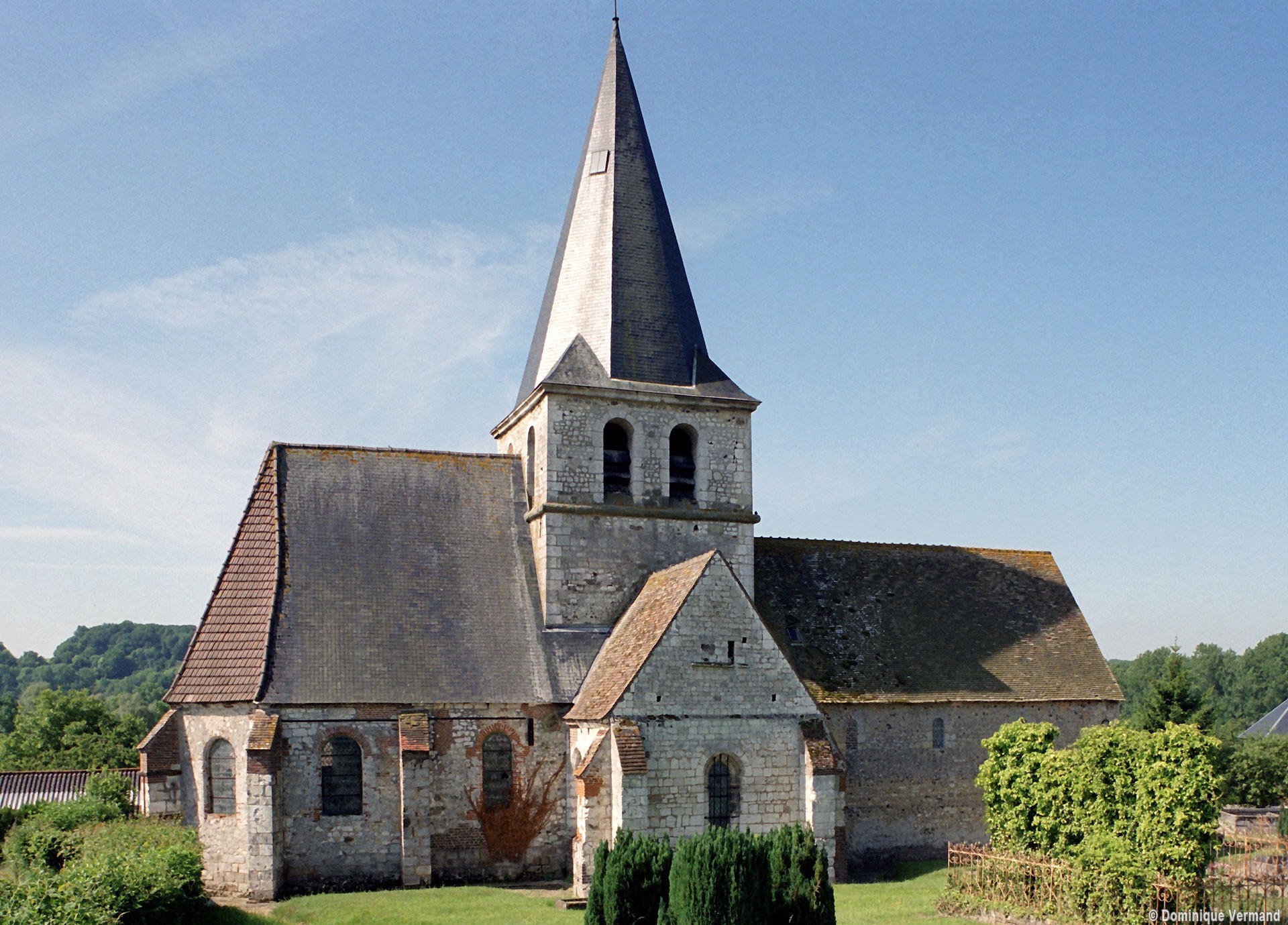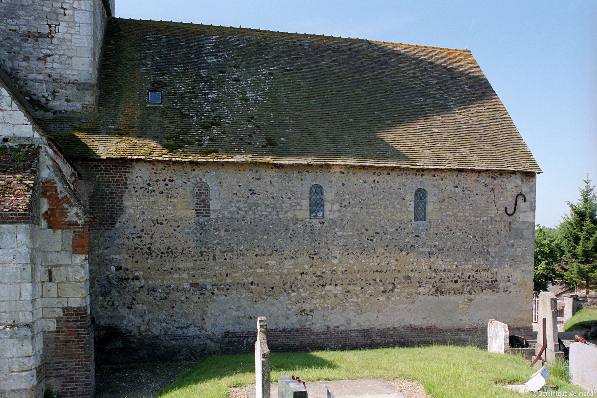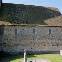 Agréablement campée sur le versant nord de la vallée du Thérain, l’église Saint-Martin appartient aux 11ème, 13ème et 17ème siècles. Partie la plus ancienne, la nef unique est un bon exemple de construction rurale à l’époque romane. Très bien conservé, le mur nord montre une maçonnerie mélangeant des petits moellons de pierre et des silex disposés en assises plus ou moins régulières. Il n’y a pas de contreforts et les trois fenêtres en plein cintre ne sont ébrasées que vers l’intérieur. Une croix antéfixe inspirée de celle de la Basse-Oeuvre de Beauvais se voit en façade, où la pente moins marquée du pignon primitif subsiste encore. A l’origine, cette nef devait être suivie d’un simple choeur plus étroit, à chevet plat, comme on le voit encore à Herchies.