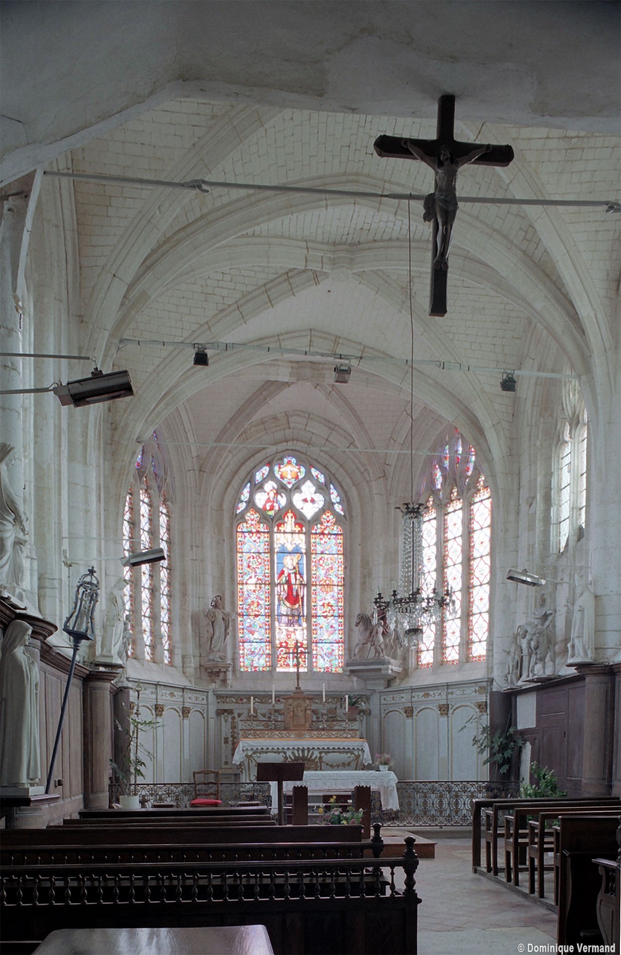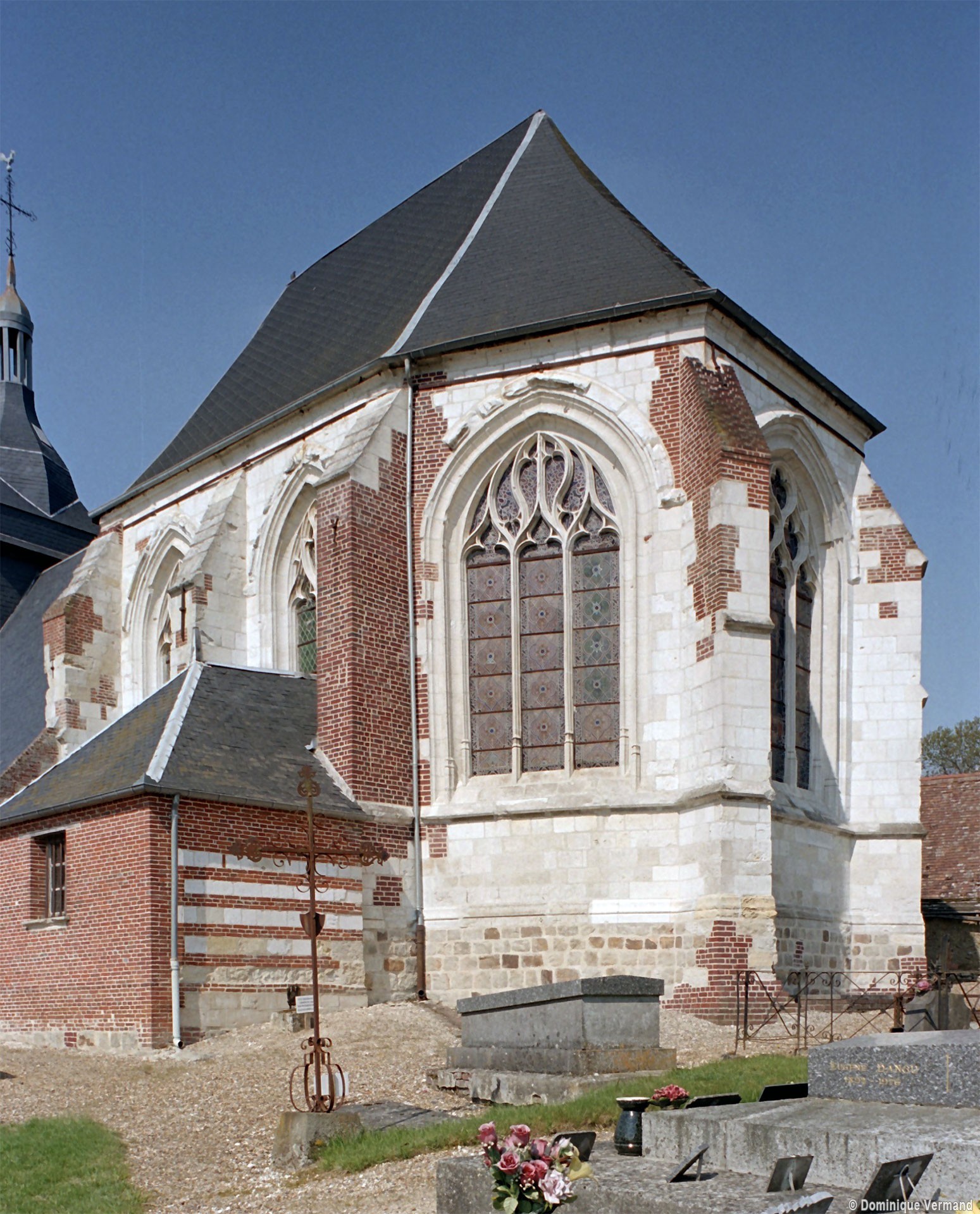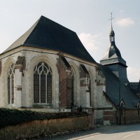 Partie la plus intéressante, le chœur est un bon exemple de style gothique tardif comme le montrent ses grandes fenêtres à réseau flamboyant et ses voûtes dont les ogives à profil prismatique retombent par pénétration directe (c’est-à-dire sans l’intermédiaire de chapiteaux) dans les murs. Une clef de voûte porte les écussons d’un abbé de Notre-Dame de Breteuil, la plus riche abbaye de la région, à qui revenait en totalité la dîme perçue sur l’église.