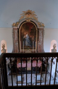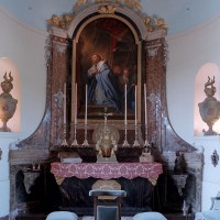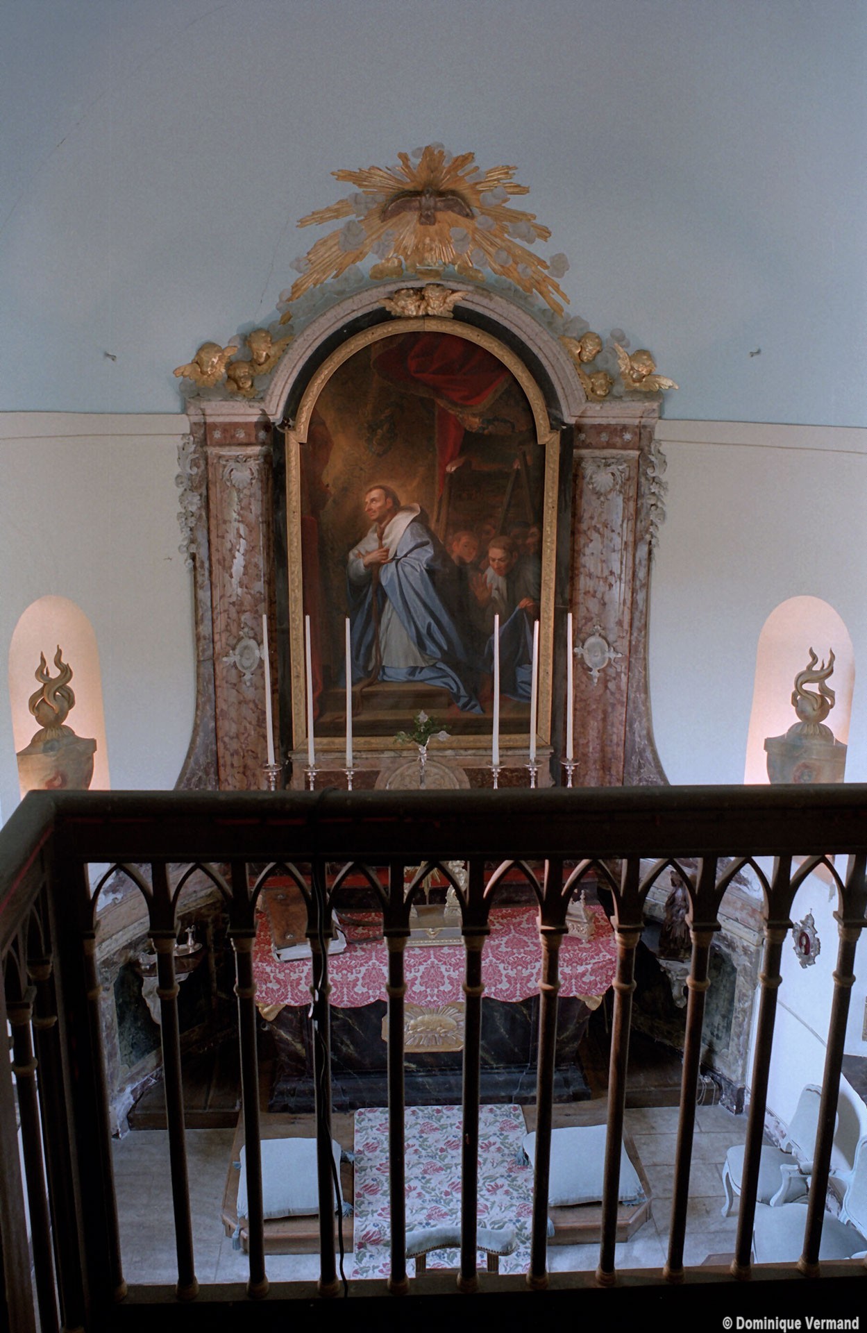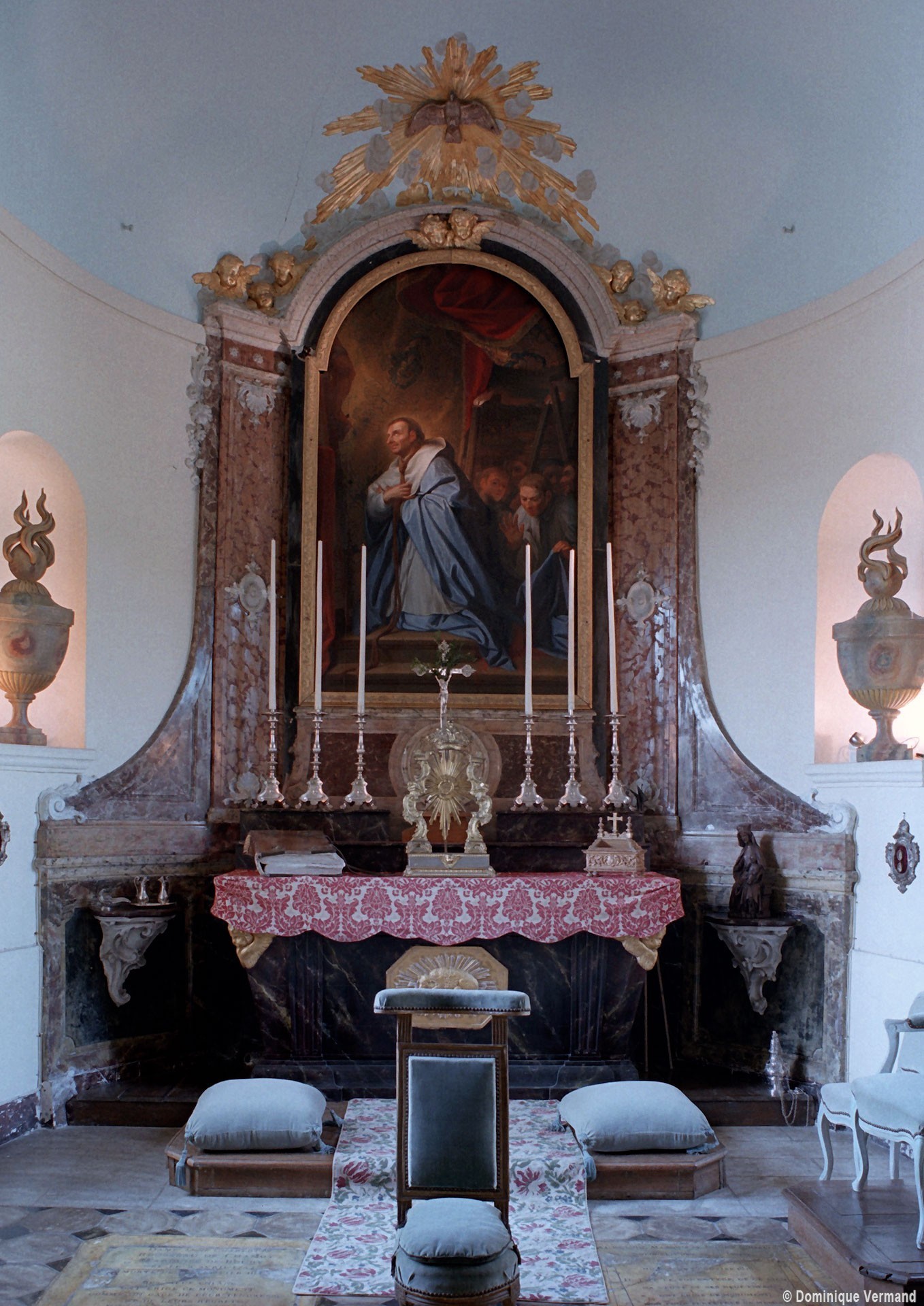 Faisant excroissance sur la façade nord et ajoutée peu après, la chapelle se compose simplement d’une courte travée droite et d’une abside en hémicycle. Elle est précédée d’une petite sacristie communiquant avec l’ancien logement du desservant, situé à l’étage. L’abside est occupée presque toute entière par un très beau retable de style classique (2003).
