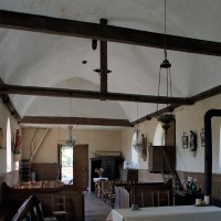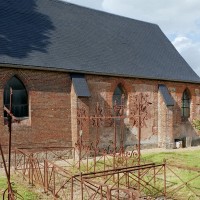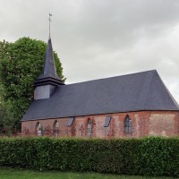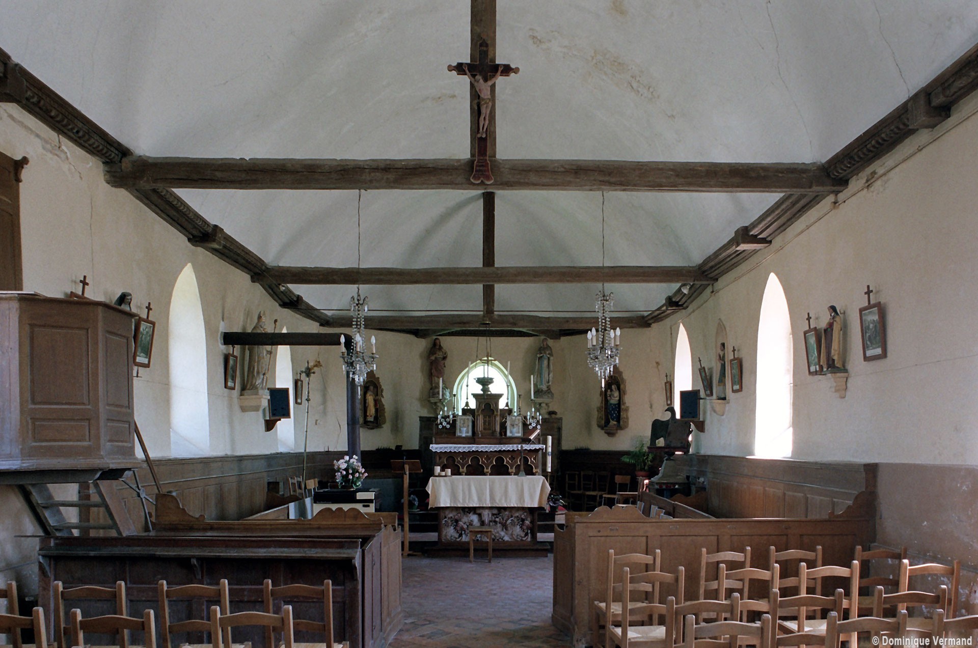 Le matériau utilisé est la brique, seule pour la moitié ouest, associée à du silex – sans doute par souci d’économie – pour l’autre partie. Toutes les fenêtres ont un tracé brisé, qui n’a jamais cessé d’être utilisé même après le gothique. L’intérieur est couvert d’une intéressante charpente en carène surbaissée, de la même époque.