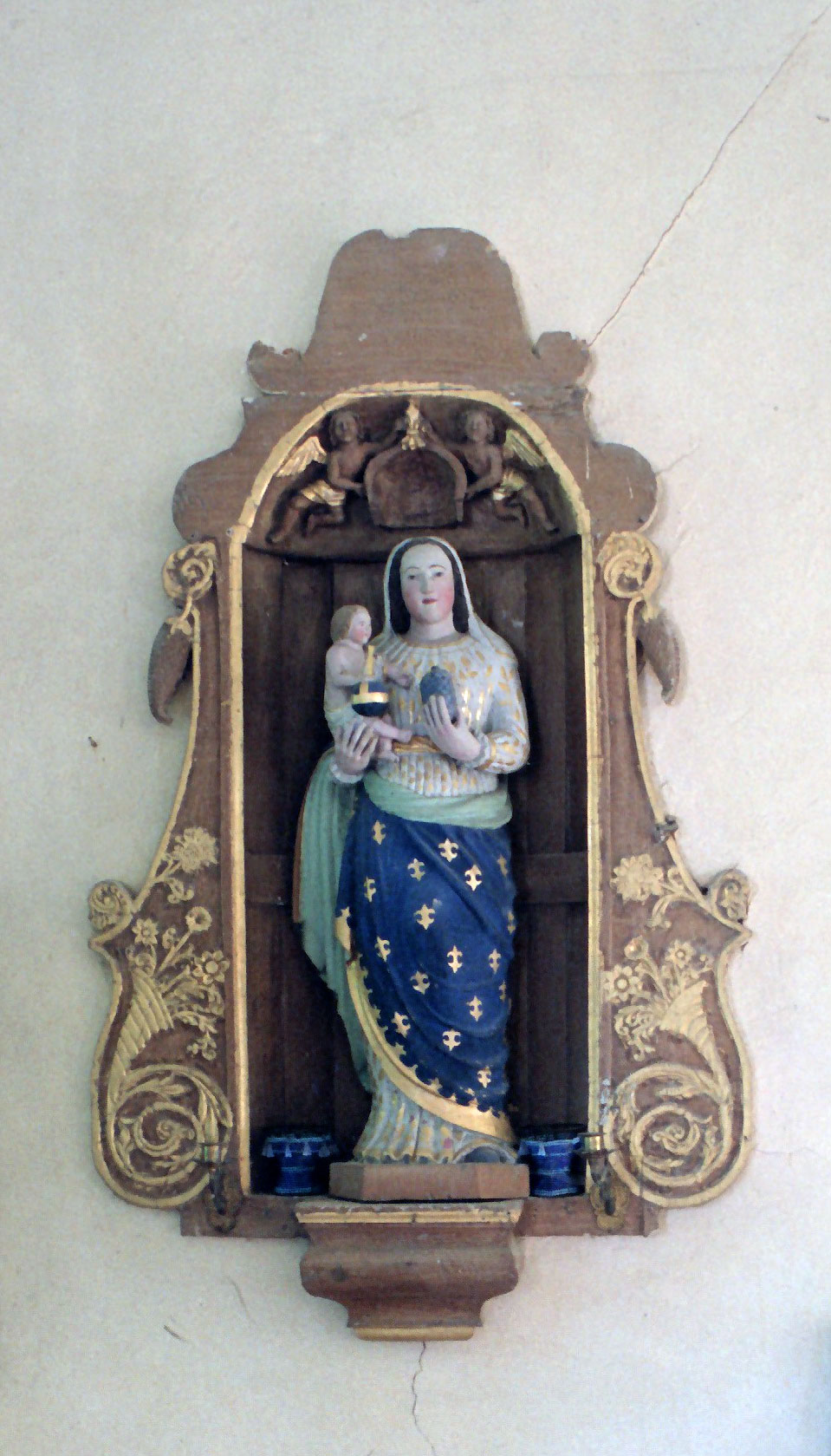 Deux part et d’autre de la fenêtre du chevet se remarquent deux charmantes niches en bois, à décor baroque, hébergeant un Saint-Vincent et une Vierge à l’Enfant. L’aigle-lutrin leur est contemporain (2007).