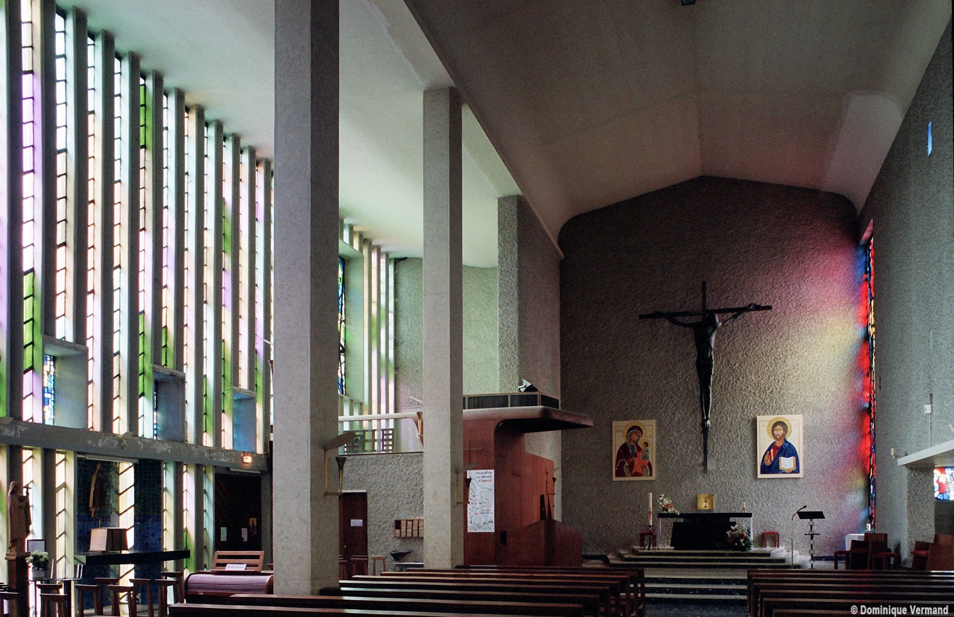 L’église actuelle, œuvre des architectes Louis Arretche et Louis Marty, a été construite entre 1955 et 1959. C’est une œuvre originale dans laquelle la distribution de la lumière joue un rôle essentiel. En effet, celle-ci provient presque en totalité de l’unique bas-côté, au sud, tandis que le reste de l’édifice n’est éclairé que ponctuellement. Au-dessus de l’autel trône un magnifique Christ en bronze réalisé par Michel Saint-Olive. L’orgue mérite également d’être remarqué par l’arrangement original des tuyaux qui le compose. Les vitraux sont dus à Nicolas Untersteller, un artiste renommé.