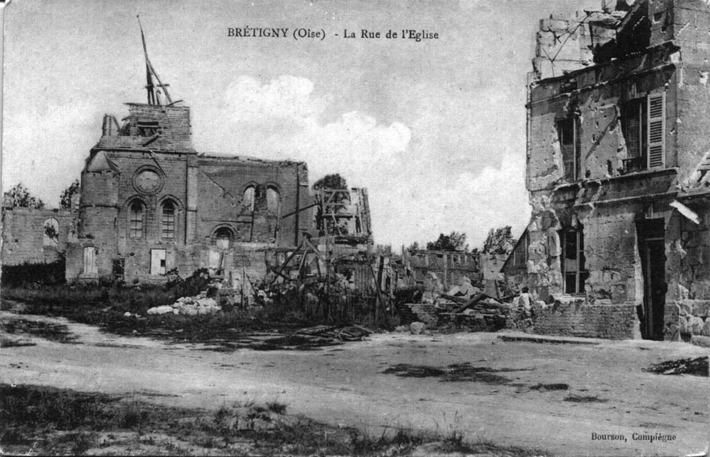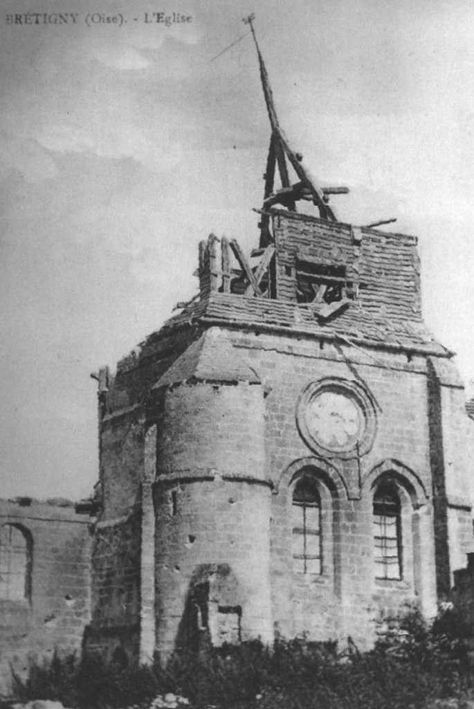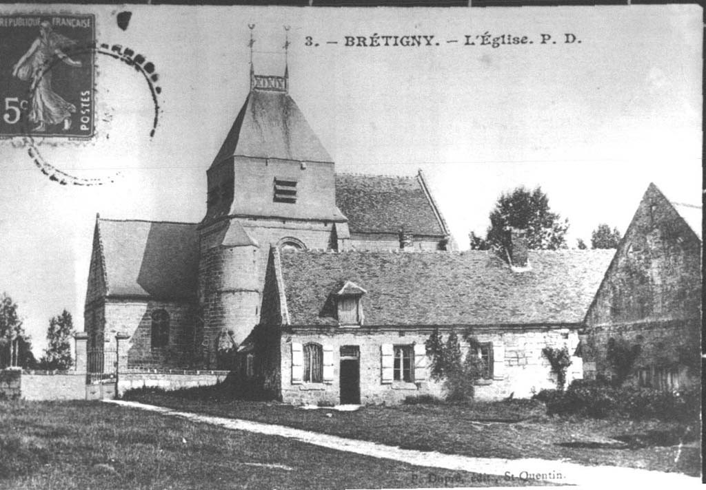 Très endommagée en 1918, l’église Saint-Pierre et Saint-Hubert a bénéficié d’une restauration exemplaire due à l’architecte A. Collin, qui lui permet de continuer à revendiquer une place de premier ordre dans l’architecture du début du 13ème siècle dans la région. L’histoire de Brétigny est inséparable de celle de Quierzy, dont la maison royale compta parmi les lieux de pouvoir les plus importants aux époques mérovingiennes et carolingiennes. Détruit lors des invasions normandes, le monastère de Brétigny fut ensuite transformé en simple prieuré. Les reliques de saint Hubert – neveu du grand saint Hubert des Ardennes – conservées à l’église et la pierre du même nom, près de celle-ci, sont toujours l’objet d’un pèlerinage.