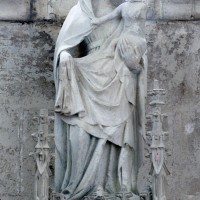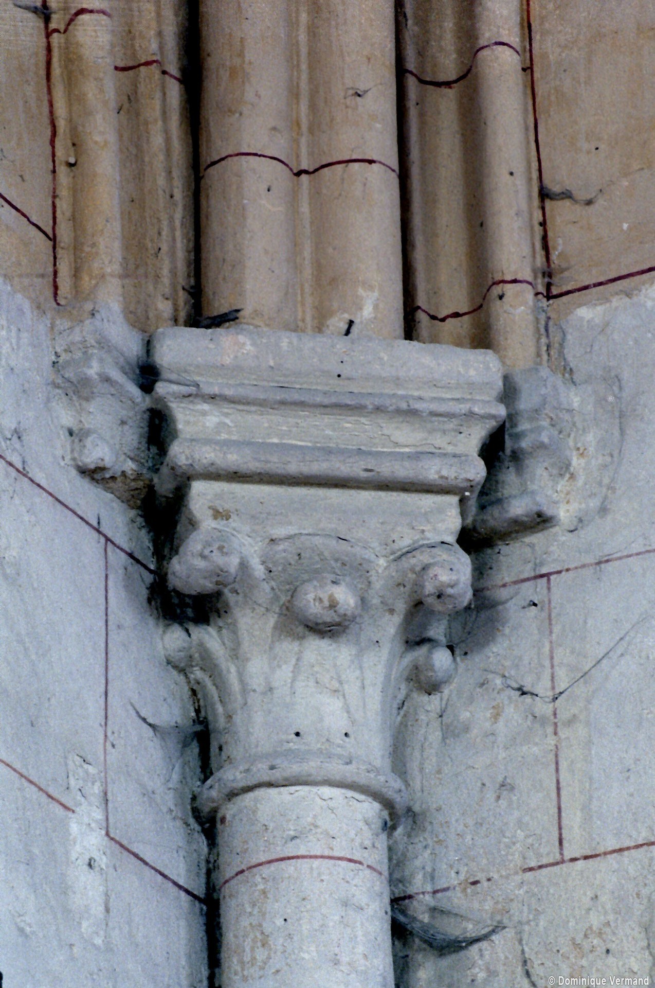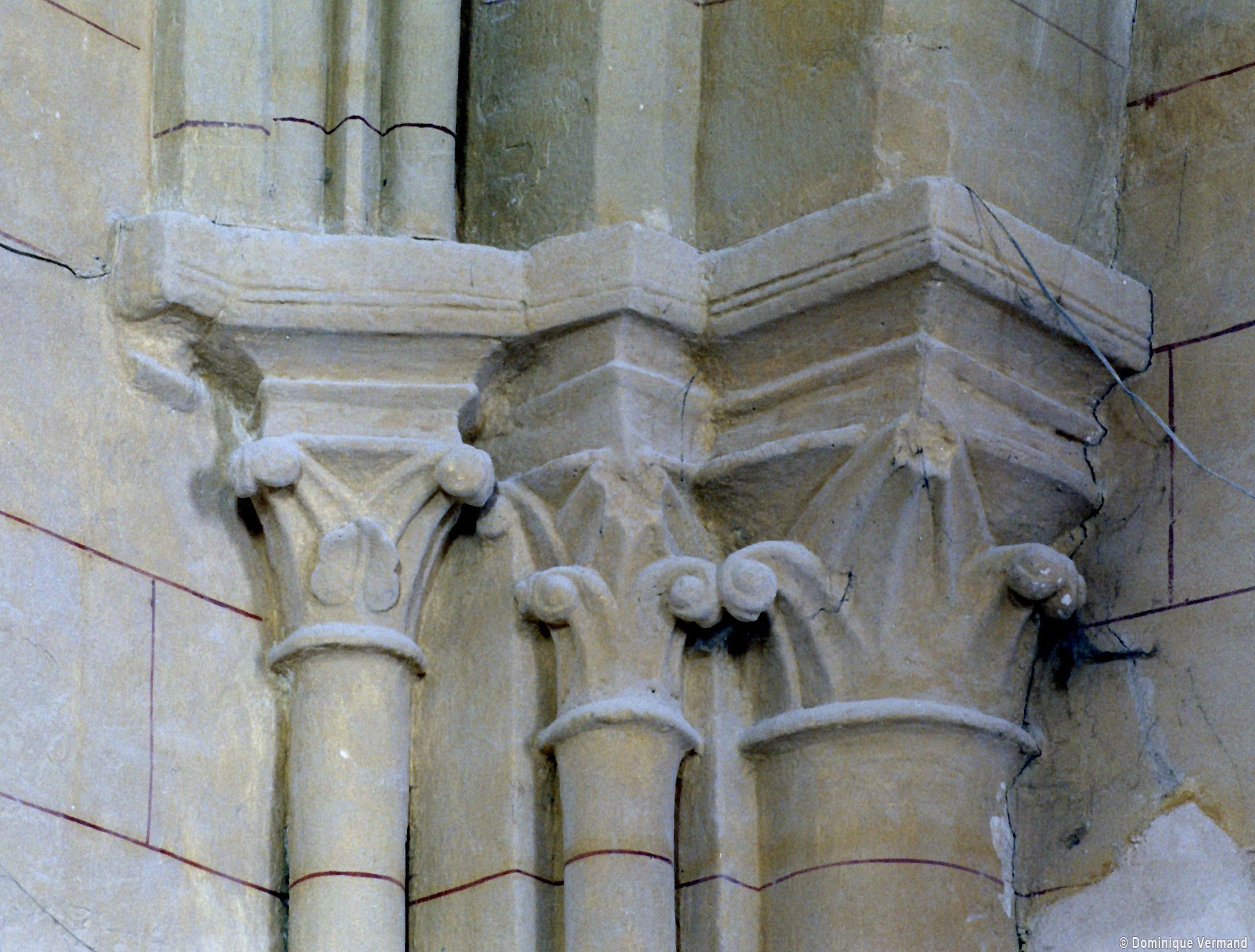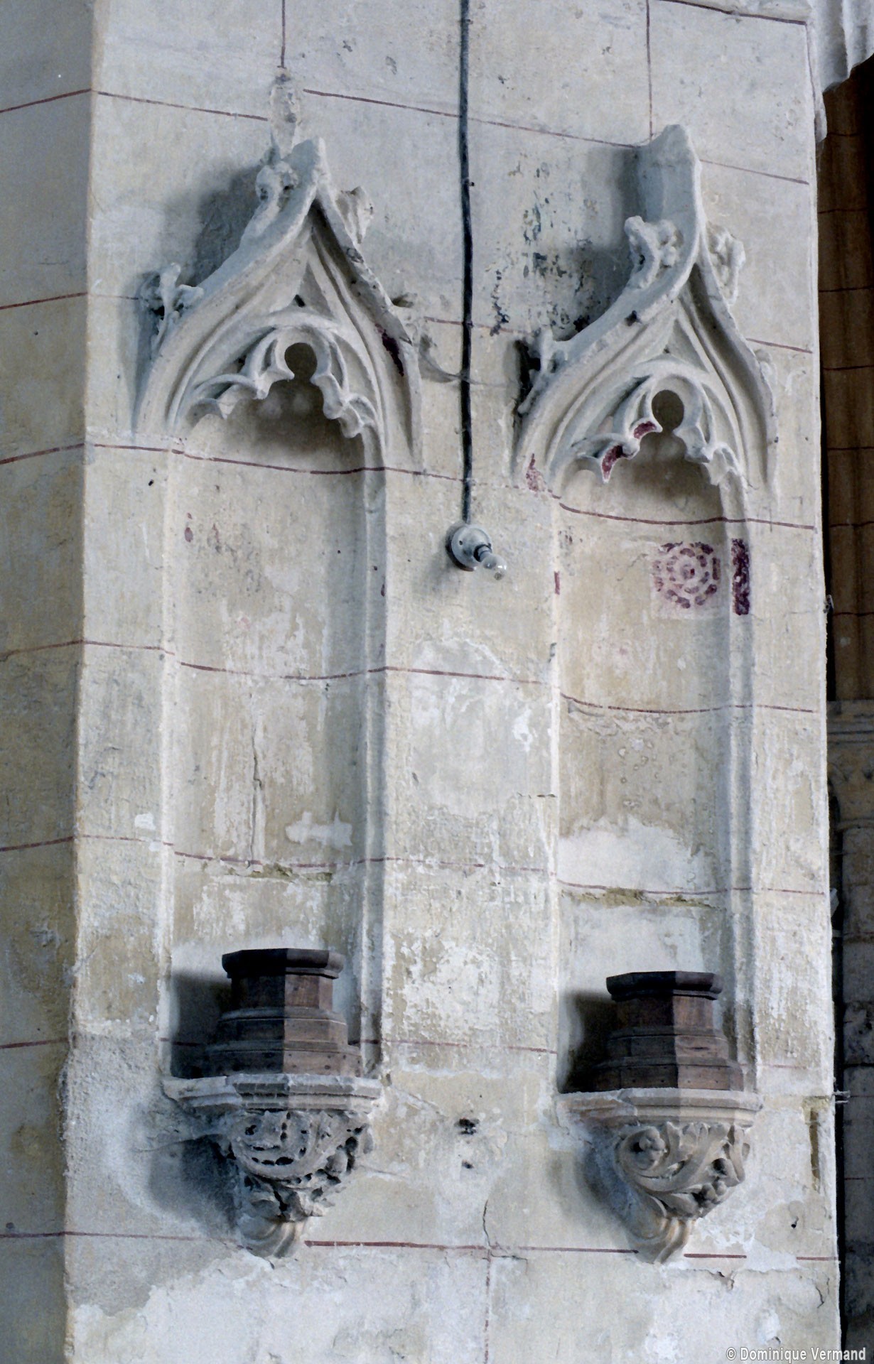 La chronologie appelle ensuite la construction, peu après, de la base du clocher et du bras nord du transept. Si la première – dont la voûte est portée très haut – trouve naturellement sa place immédiatement à l’ouest du chœur, l’alignement du bras nord du transept sur celle-ci a déterminé un raccourcissement de la chapelle nord qui apparaît notamment dans sa voûte tronquée. Le profil des ogives est légèrement différent et les chapiteaux y affirment davantage le crochet terminé par des boules. Le clocher appartient à cette campagne de travaux mais le renforcement des piles de la croisée, devenues de gros massifs carrés, est à placer aux 15ème/16ème siècles. Les deux piles orientales, à l’entrée de l’ancien chœur et tournées vers l’ouest afin d’être aperçues depuis l’ancienne nef, comportent des doubles niches richement décorées, de style gothique flamboyant, dont les statues ont depuis longtemps disparues.