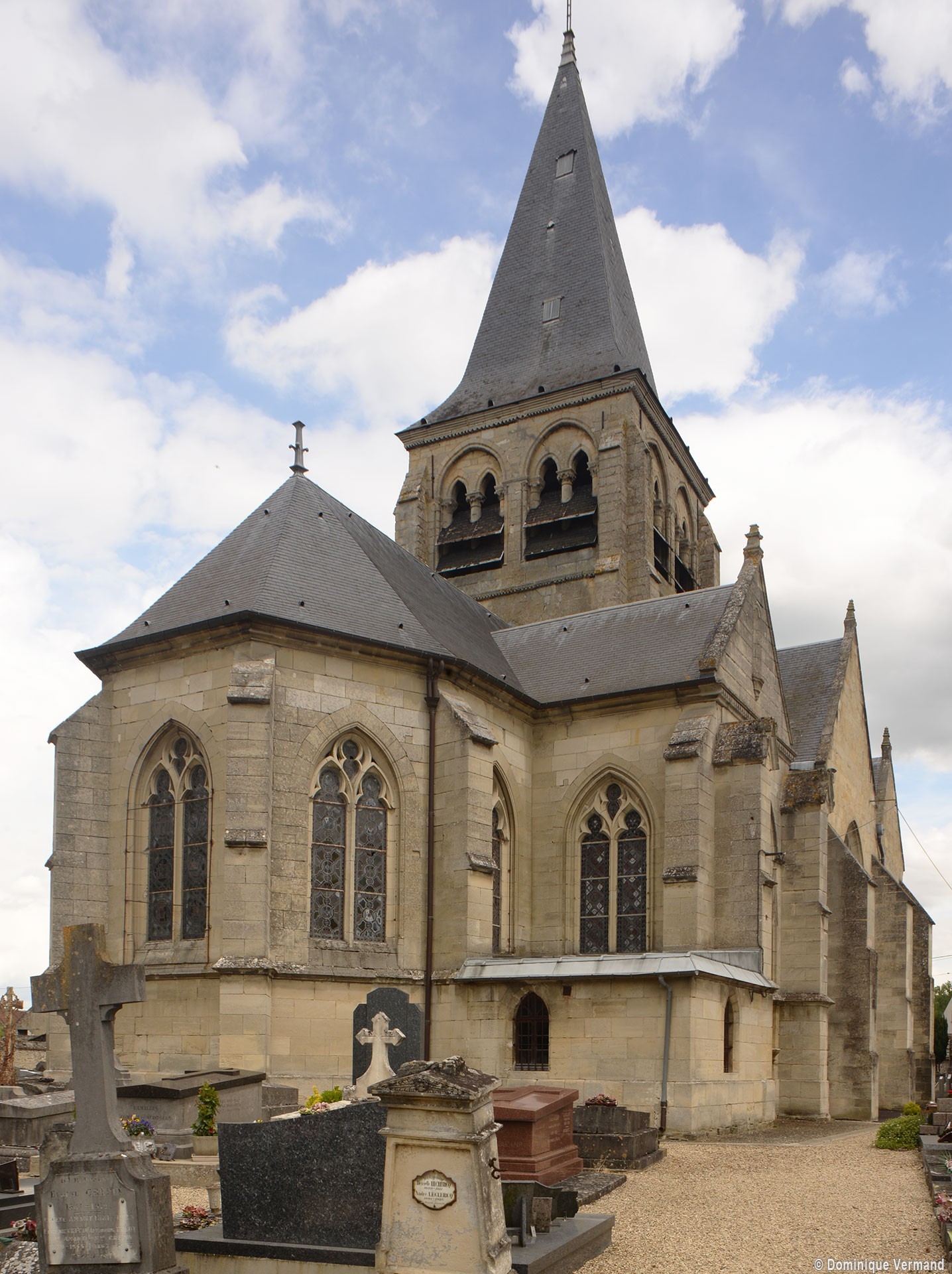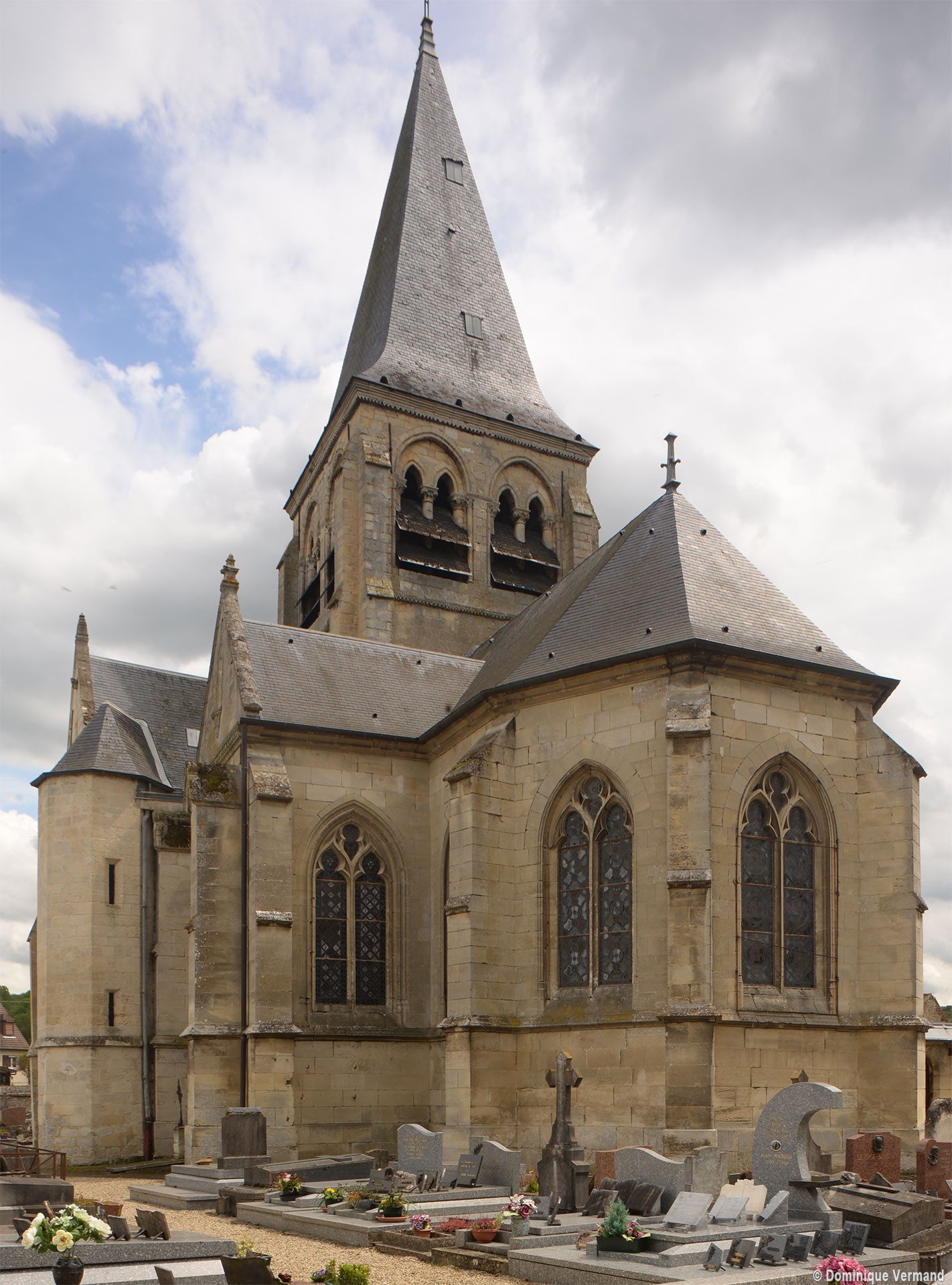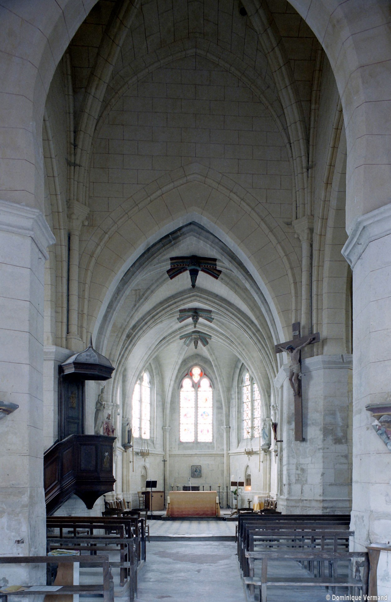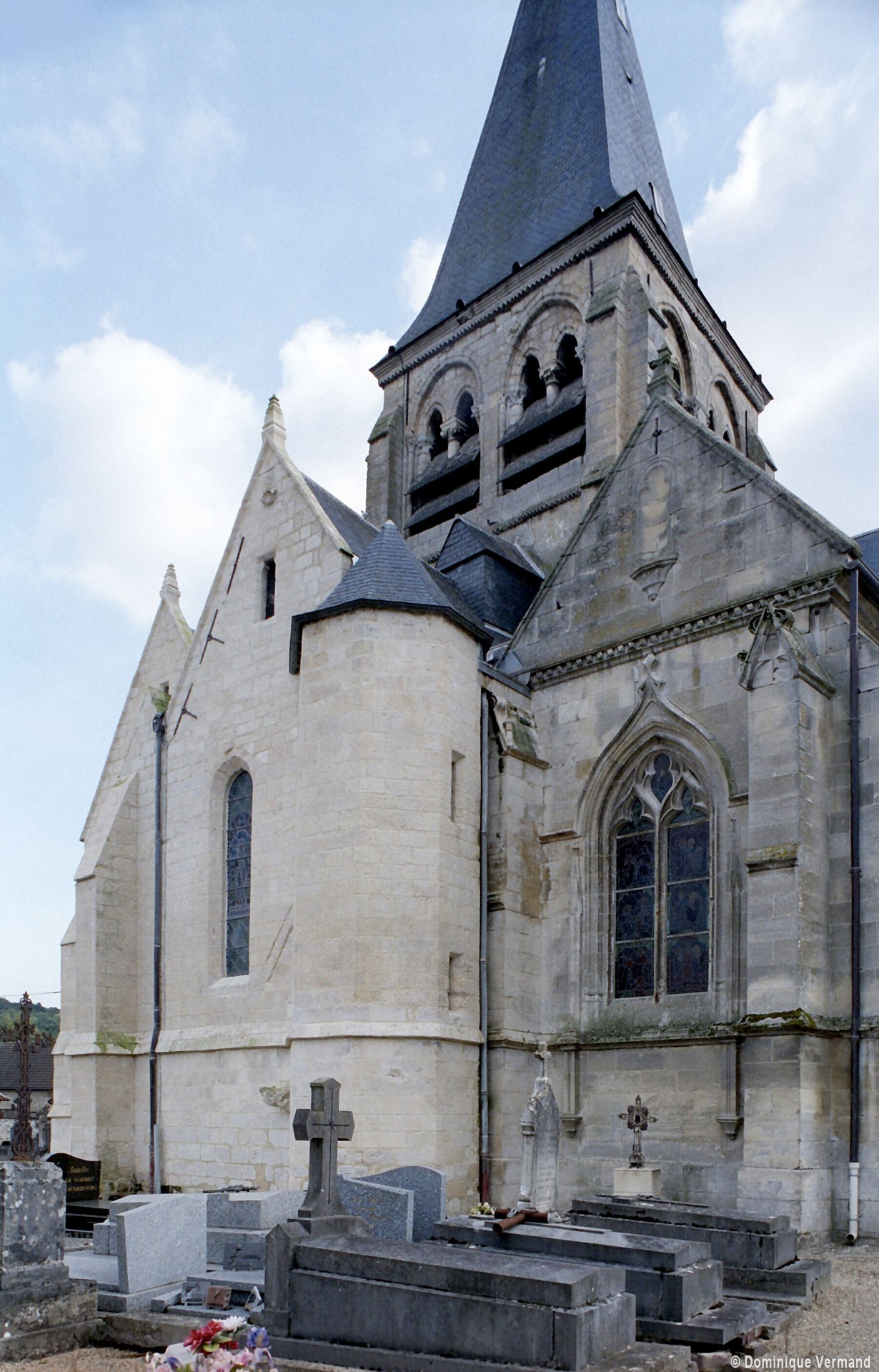 Dernier construit entre 1850 et 1856 pour remplacer la nef ruinée, le chœur comporte deux travées – la première flanquée de bas côtés – terminées par une abside à trois pans. Bâti et décoré avec soin, il constitue un bon exemple de style gothique flamboyant, sans grande originalité mais fidèle à ses modèles du 16ème siècle.