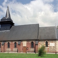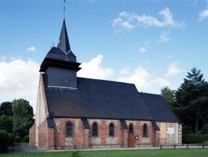 Selon un usage fréquent dans la région, la brique, le silex et la pierre ont été ici utilisés conjointement, le silex étant réservé aux murs proprement dits tandis que la pierre et la brique servent pour les éléments de structure (chaînages) ou les fenêtres. Pour répondre à l’usage qui se répand dès la fin du 16ème siècle d’installer des autels accompagnés de hauts retables, le pan de mur axial de l’abside n’a jamais reçu d’ouverture. Malgré ses fenêtres au tracé brisé, la nef doit être sensiblement plus jeune. Le silex et la brique s’y retrouvent, celle-ci étant utilisée notamment pour les contreforts, qui faisaient défaut dans le choeur.