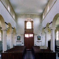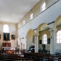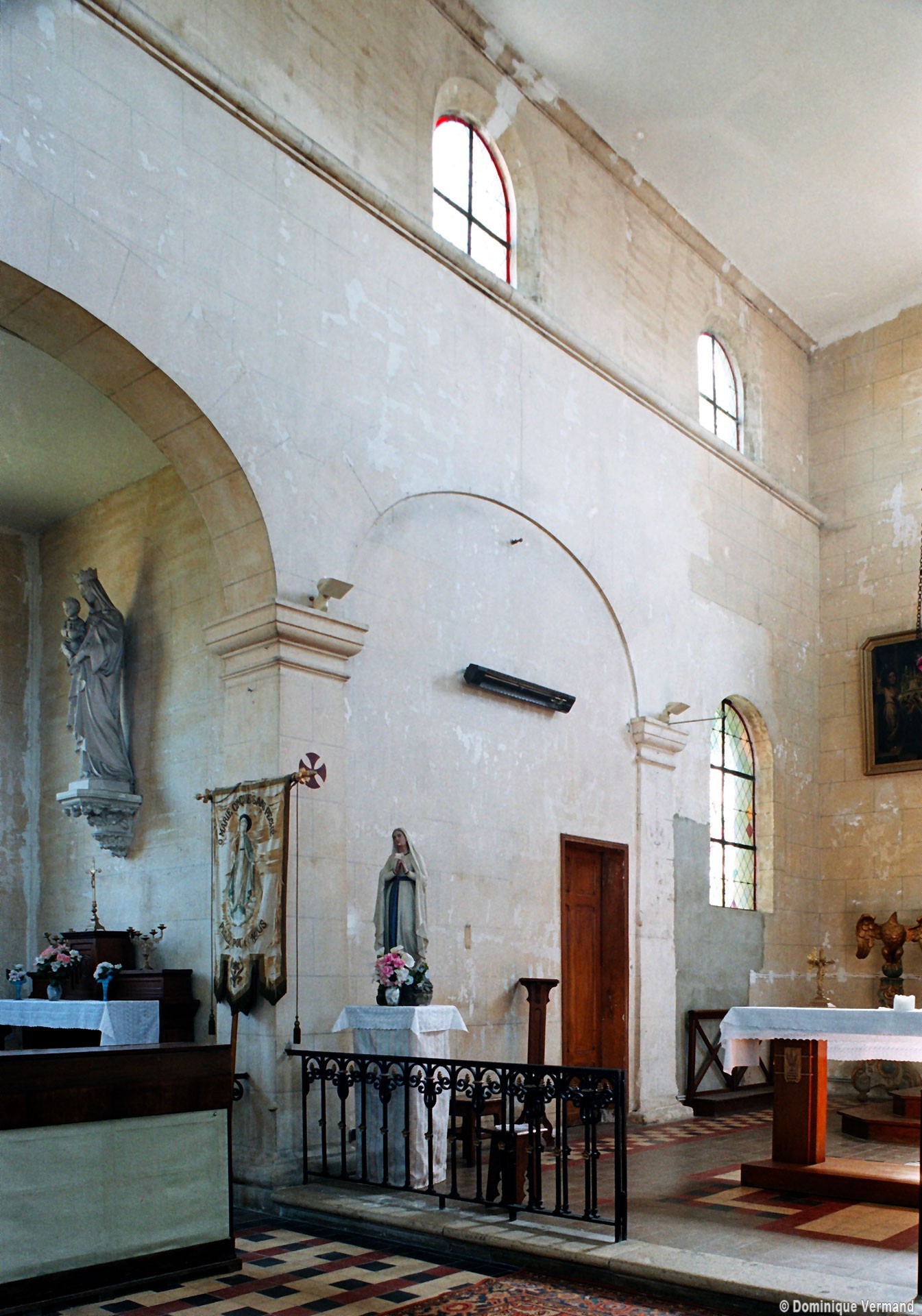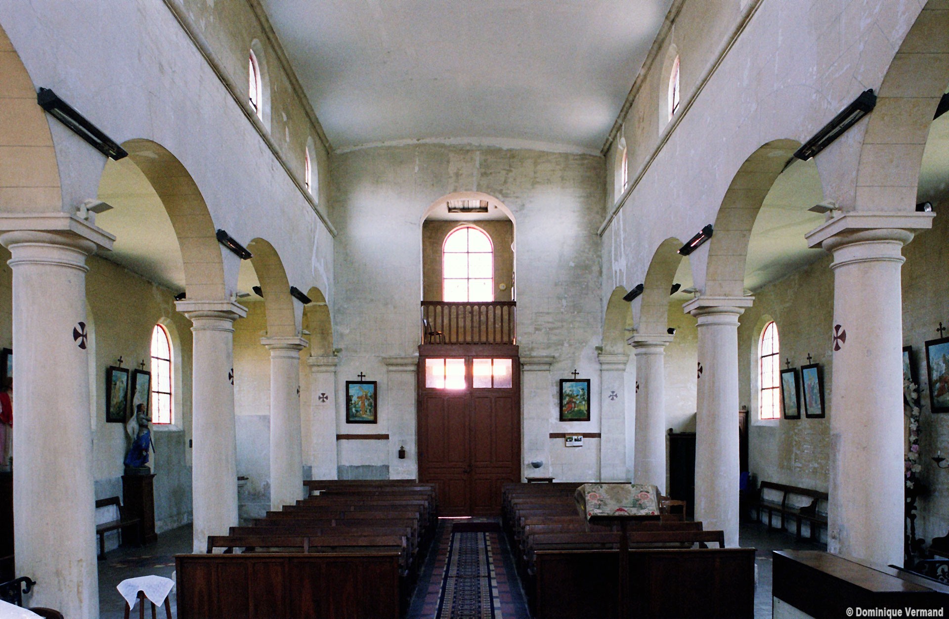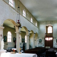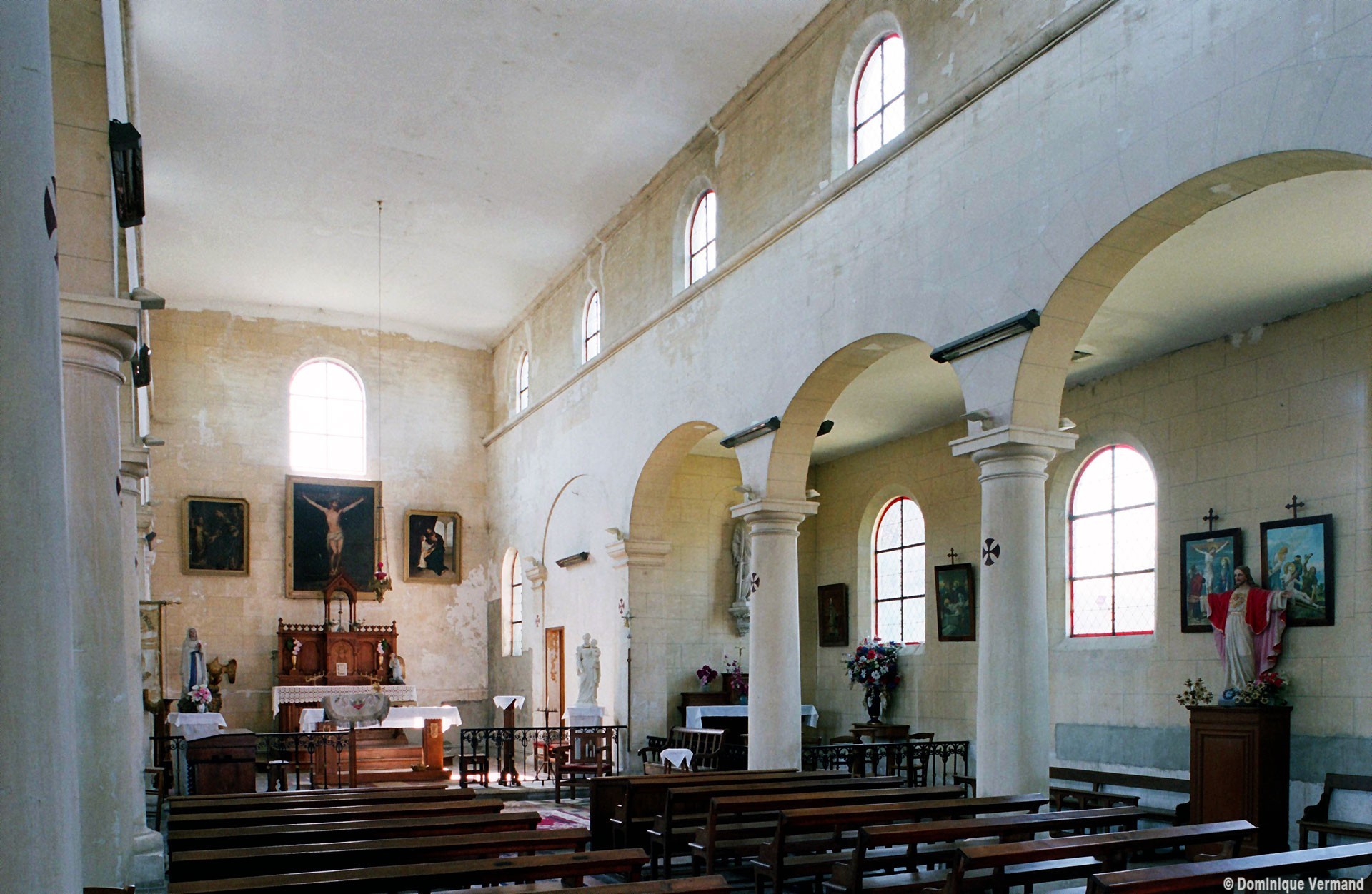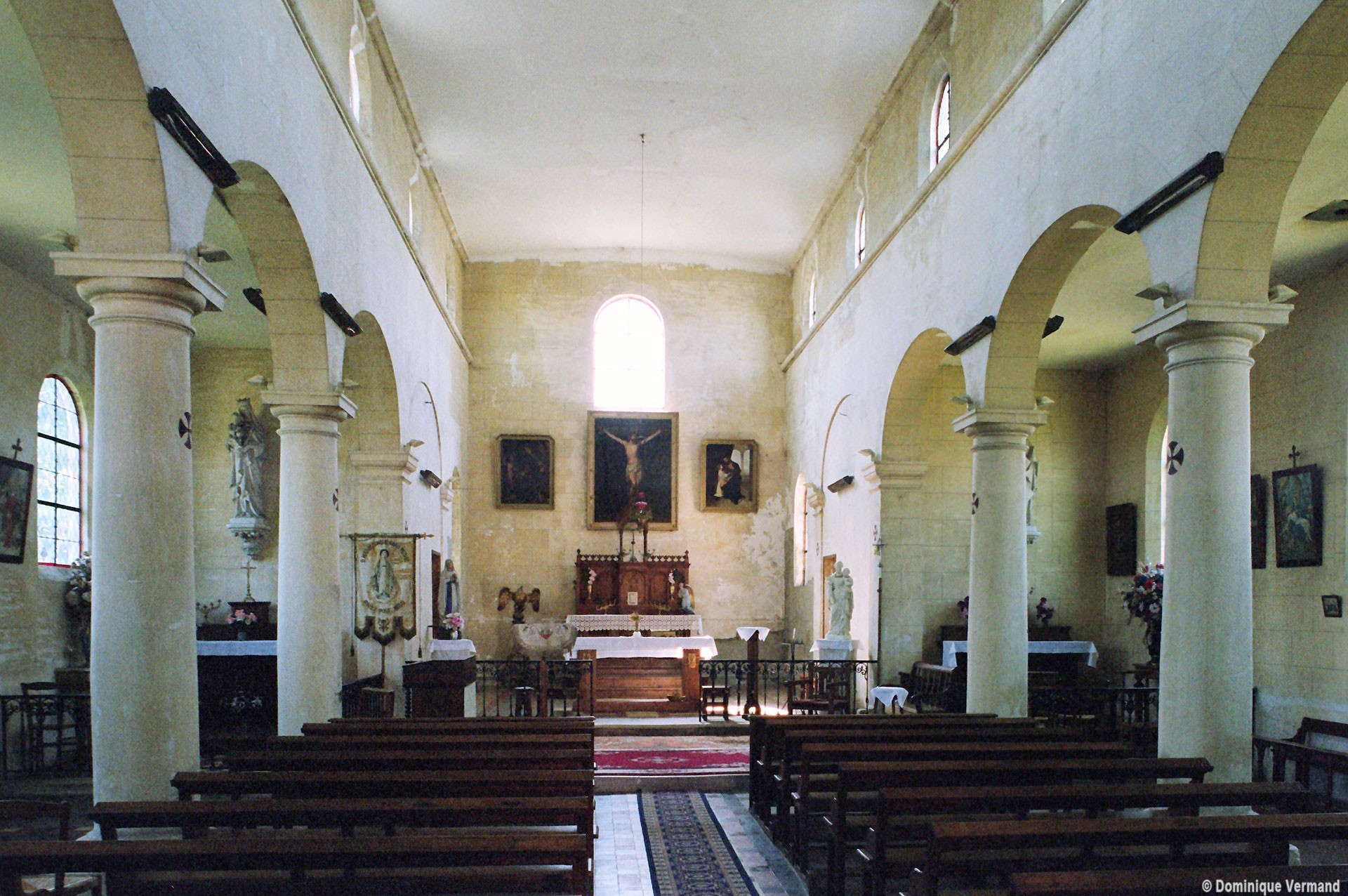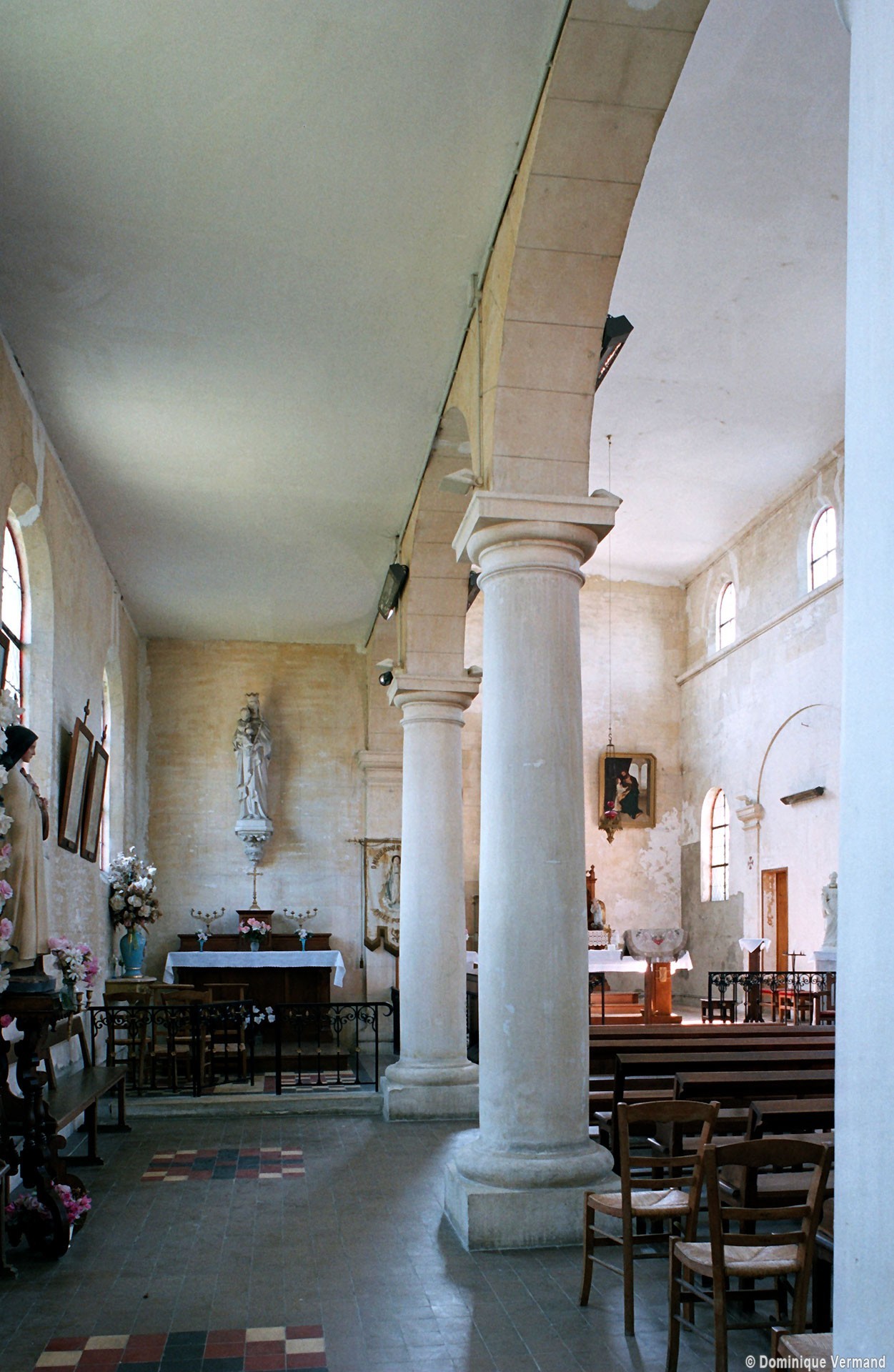 L’intérieur est remarquable par son volume très ouvert, les grandes arcades occupant près des deux tiers de la hauteur totale. En cintre surbaissé, elles retombent sur des piles circulaires légèrement galbées par l’intermédiaire de chapiteaux doriques et sont comparables aux arcades des nefs de Berlancourt et de Golancourt, qui sont du 18ème siècle. Au-dessus d’une surface nue, un bandeau sert d’appui aux courtes fenêtres en plein cintre.