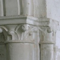 Cette église au plan très simple devait connaître une première extension peu après avec la construction de deux chapelles de part et d’autre du choeur. Refaites au 16ème siècle, ces chapelles comportent, en effet, quelques rares éléments – chapiteaux, colonnettes – qui le laissent à penser.