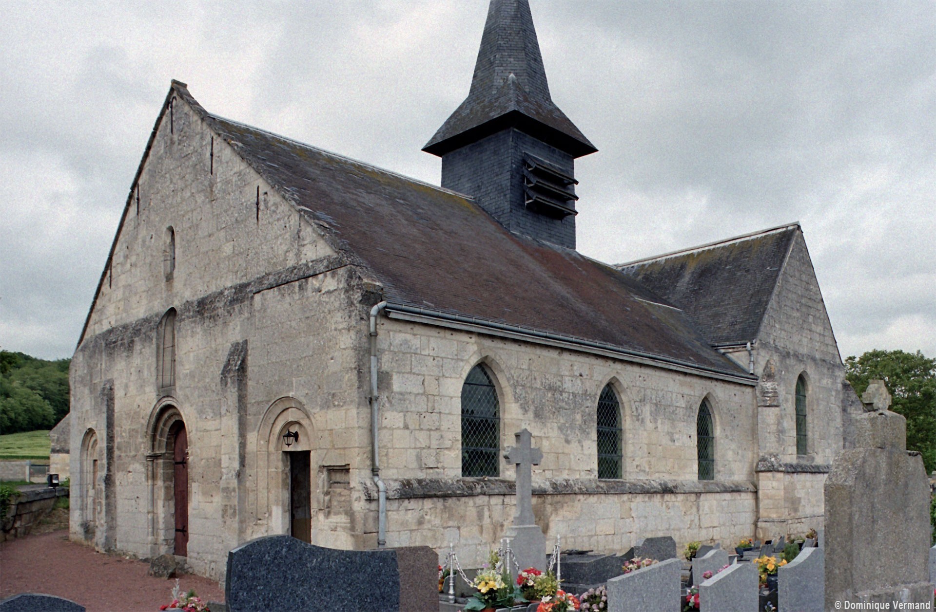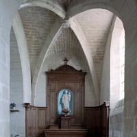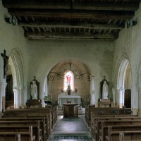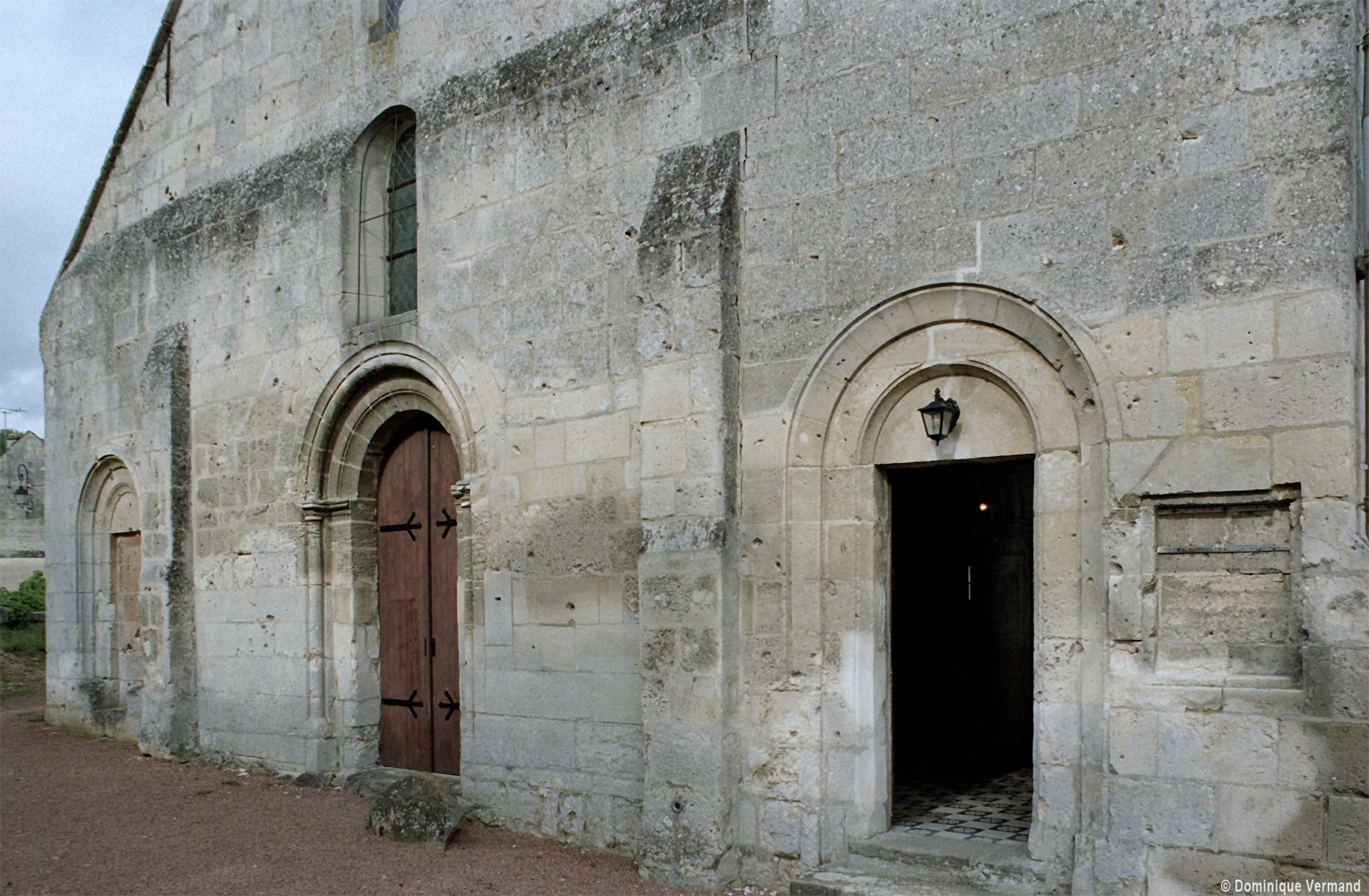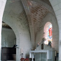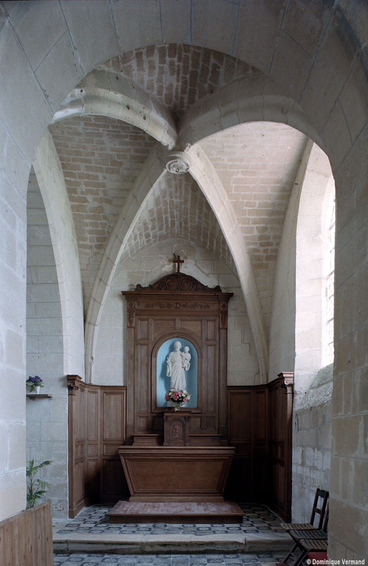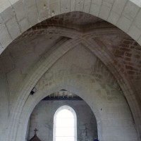 D’une première construction reste la nef du 11ème siècle. Son existence en tant que nef unique, modifiée par la suite pour lui adjoindre des bas-côtés, est attestée notamment par trois petites fenêtres bouchées visibles en partie haute des murs gouttereaux et par deux contreforts plats en façade. Un nouveau choeur d’une seule travée lui est adjoint vers les années 1120, à moins qu’il ne soit simplement modifié à cette époque. Relativement bien conservé, ce dernier se caractérise en effet par la présence d’une voûte d’ogives dont les caractéristiques – ogives épaisses à trois tores identiques, voûtains fortement inclinés, absence d’arcs formerets – l’inscrivent parmi la première génération de ce type de voûtement. Les chapiteaux ont malheureusement disparu ou ont été refaits.