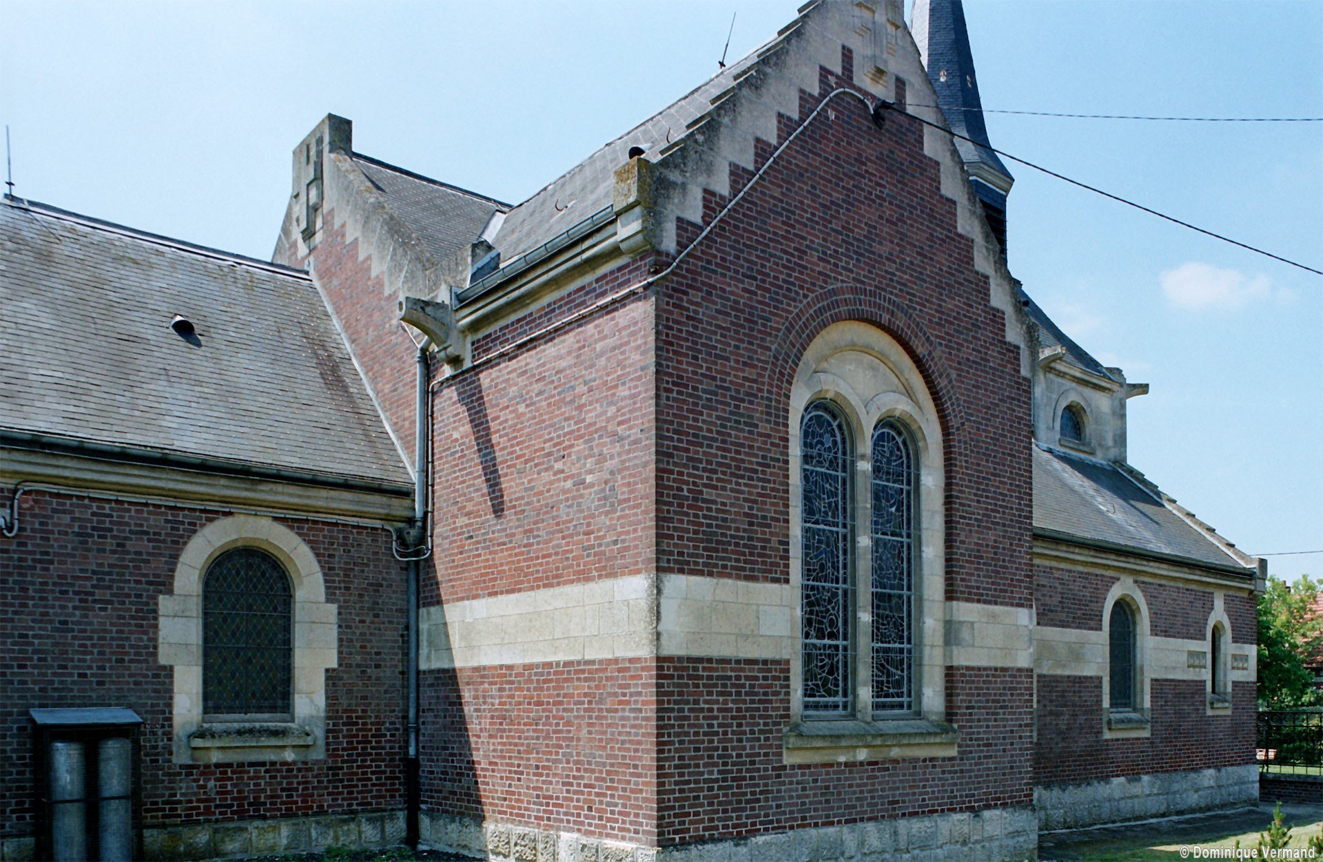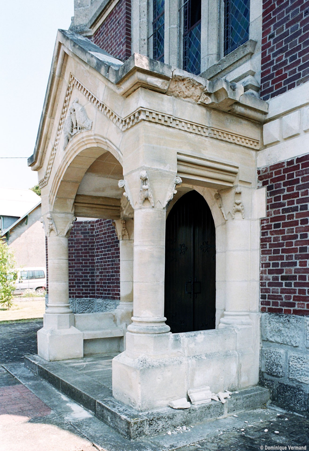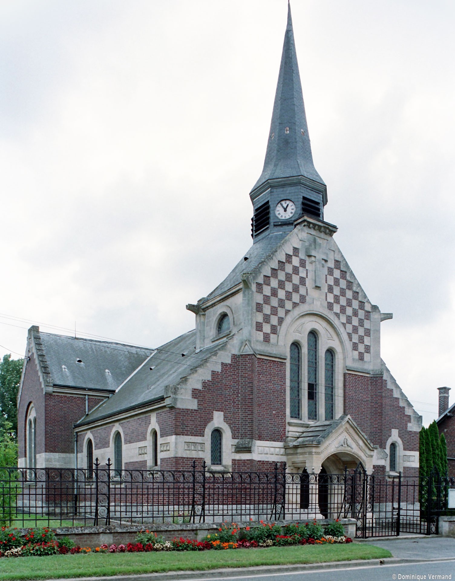 Reconstruite en 1926 à un emplacement différent de celle qui fut détruite durant la Guerre 14-18 et qui se trouvait près des sources du Matz, l’église actuelle est l’oeuvre de l’architecte A. Montant, à qui l’on doit également celle de Crapeaumesnil.